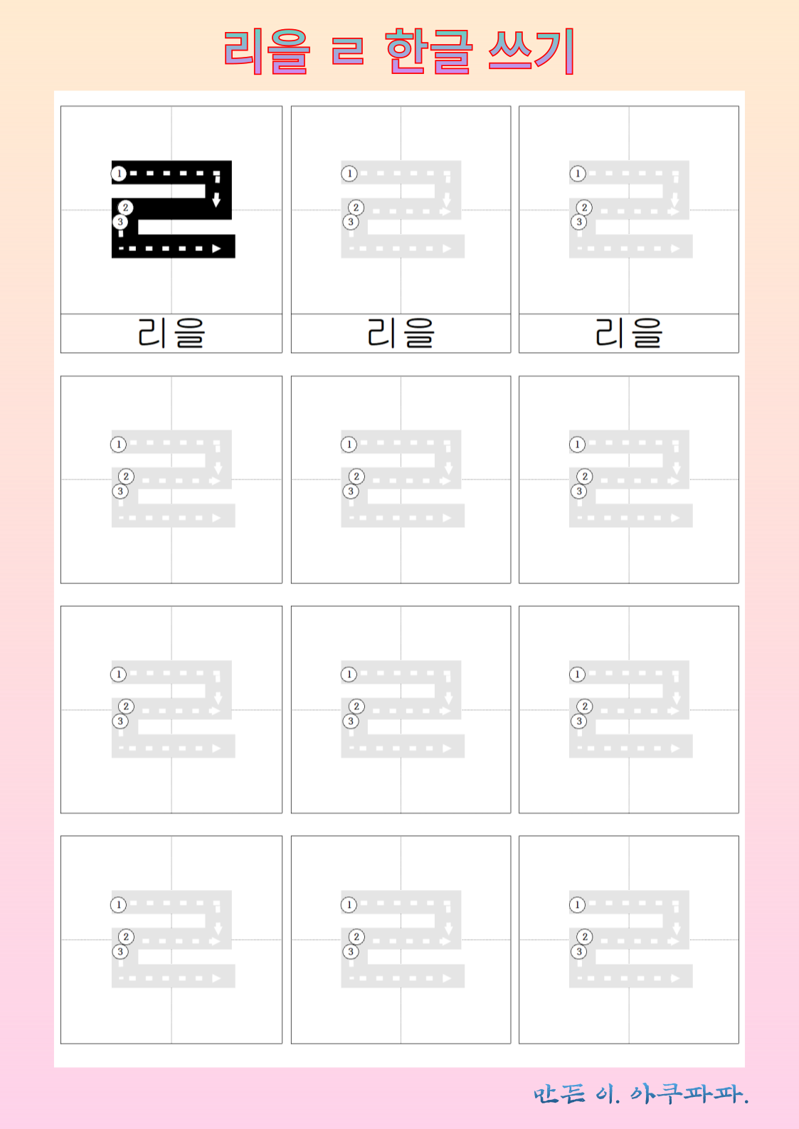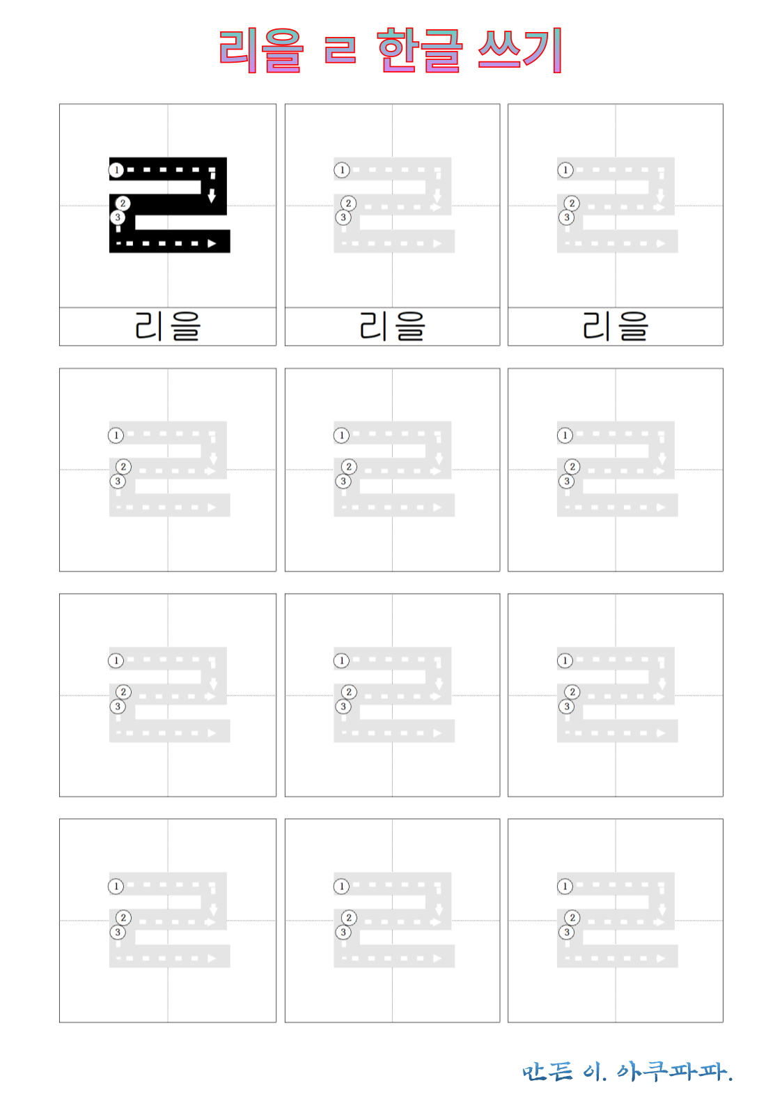 리을 따라 쓰기