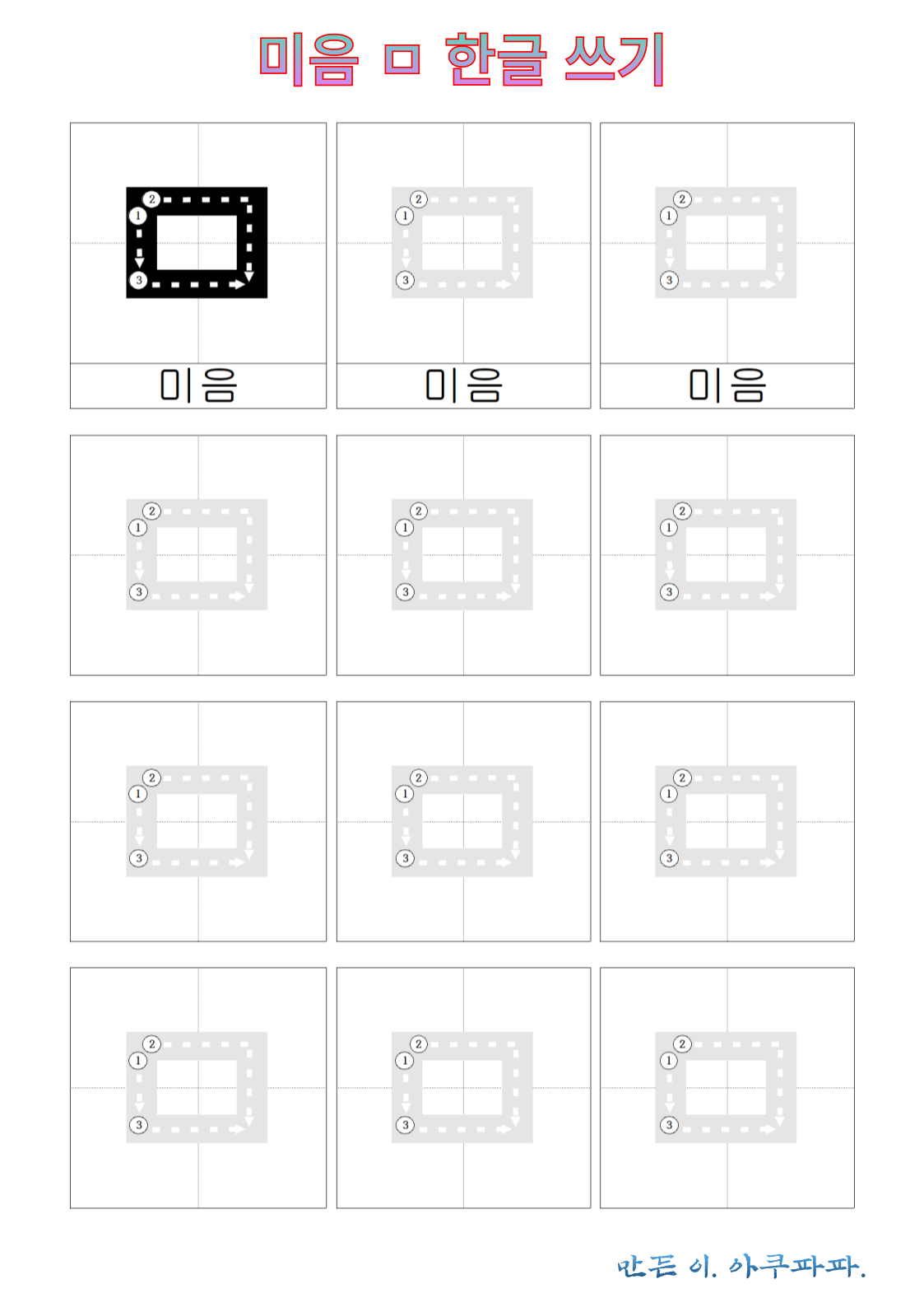 '한글공부(Learning Hangul) > 따라 쓰기(Copy and write)' 카테고리의 다른 글