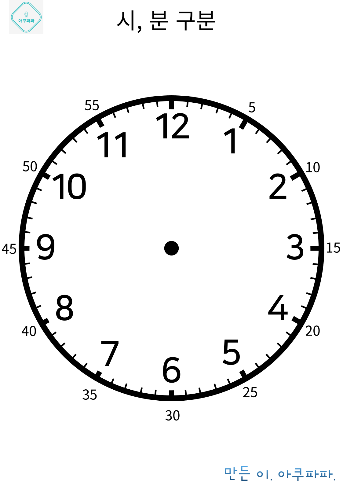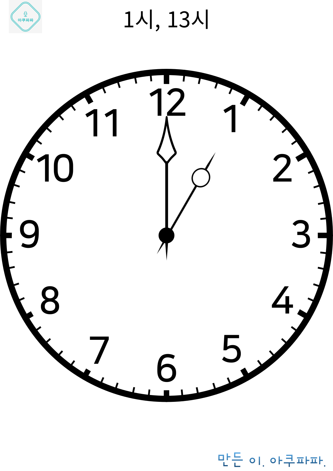 몇 시, 몇 분을 읽기 전에 시계는 어떻게 구성되어있는지 읽는 방법과 1시부터 12시까지를 먼저 배워 볼께요.