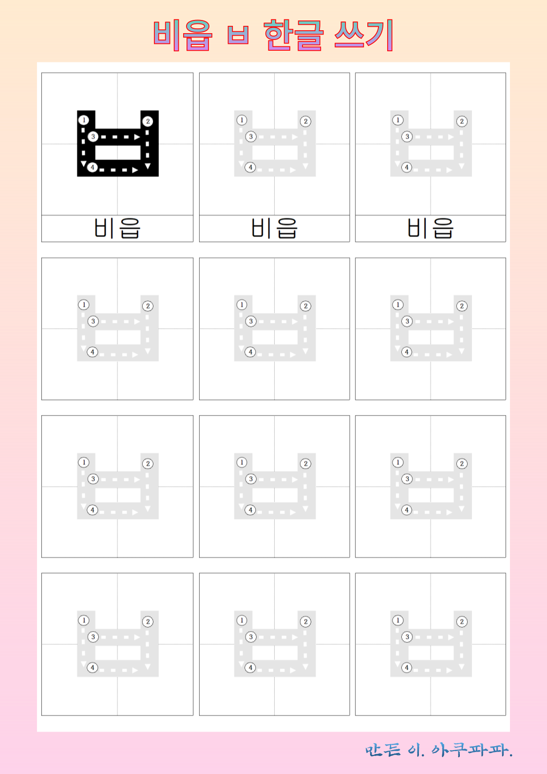 비읍 따라 쓰기