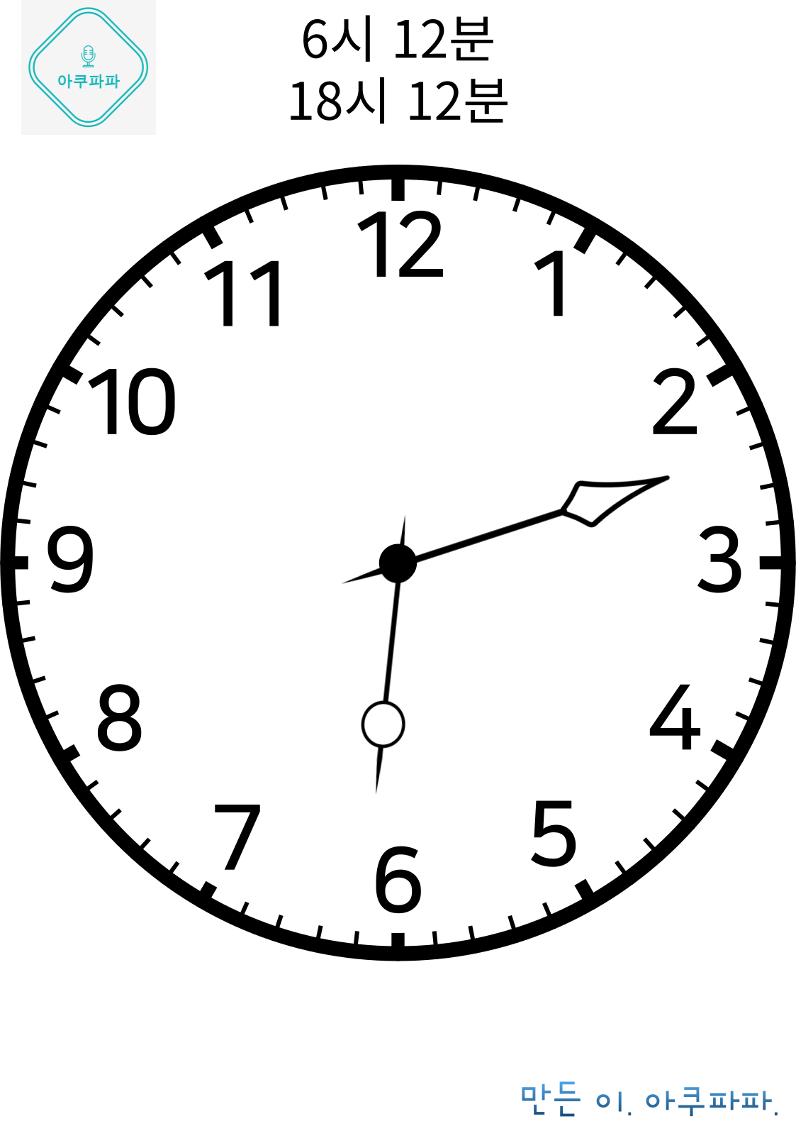 6시 1분일 때, 10분일 때 등등 분침과 시침은 각각 어디를 가리킬까요?