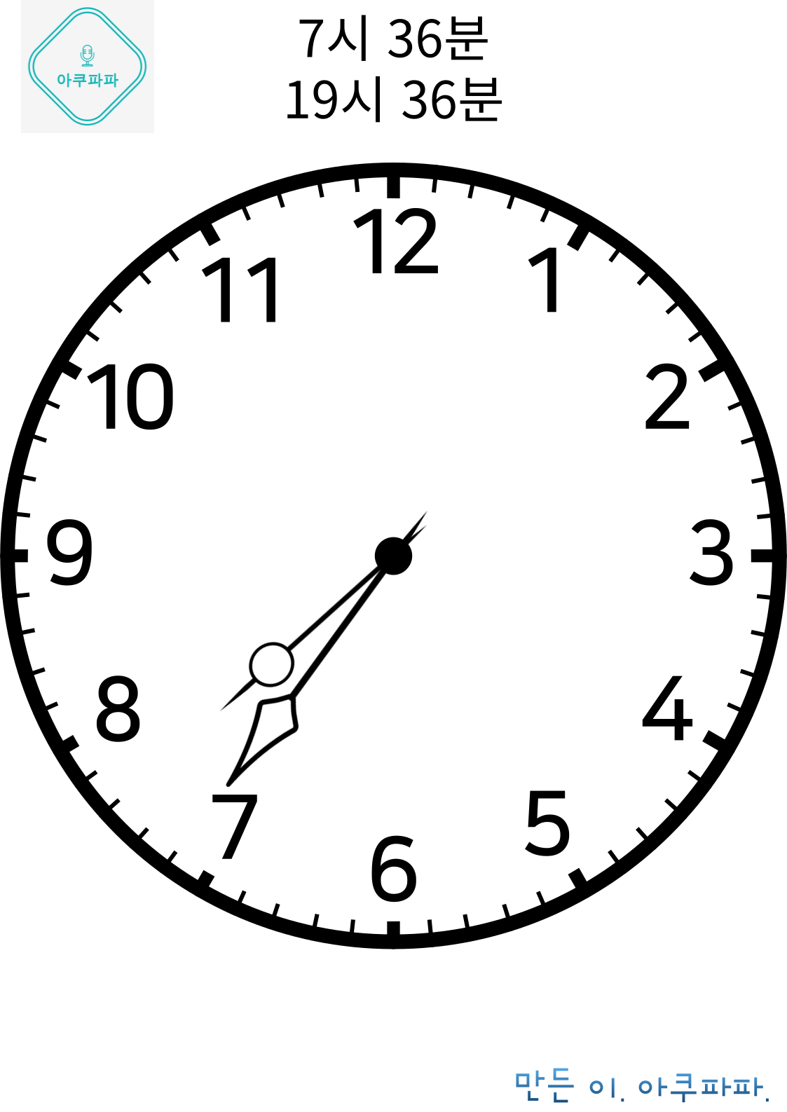 바늘 시계 7시 읽기
