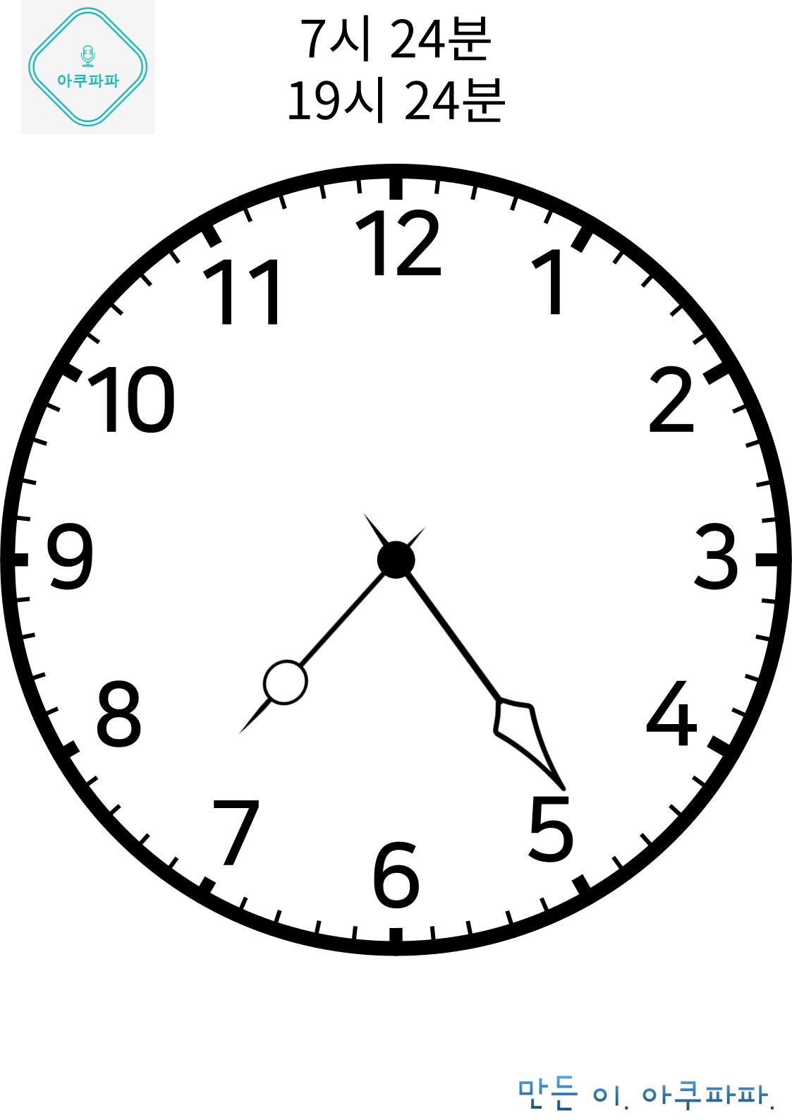 바늘 시계 7시 읽기