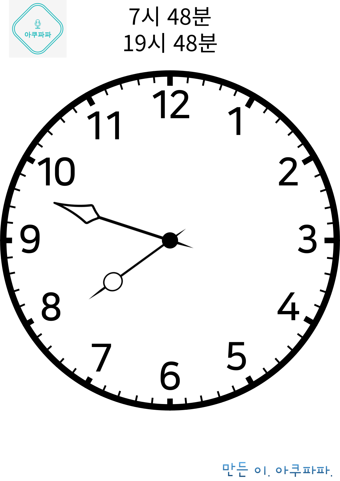 12분, 24분, 36분, 48분 등 읽어보고, 문제를 풀어보면 금방 잘 읽을 수 있을거에요.
