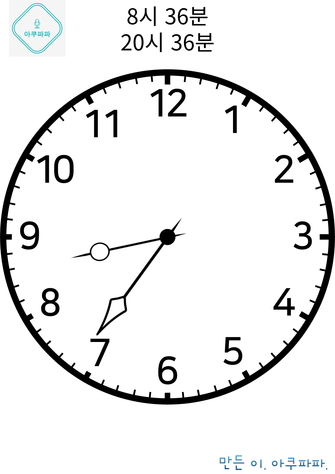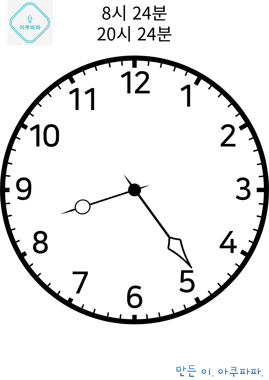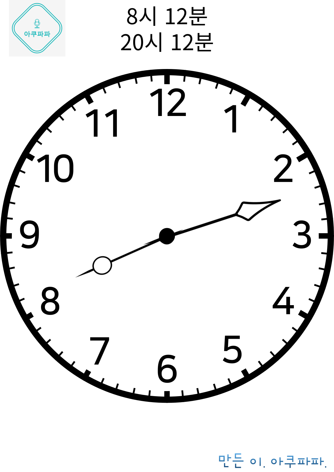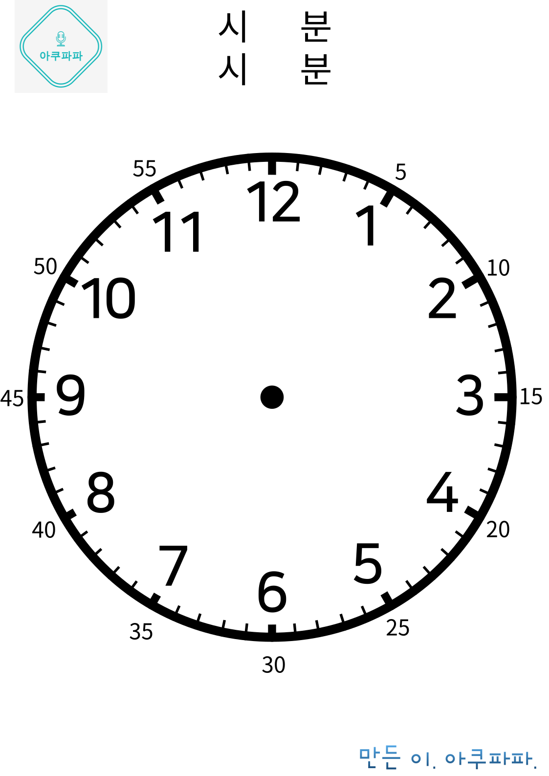 기본적인 시계보는 방법을 배우고, 시침과 분침이 어디로 오는지 한 번 익혀보세요.