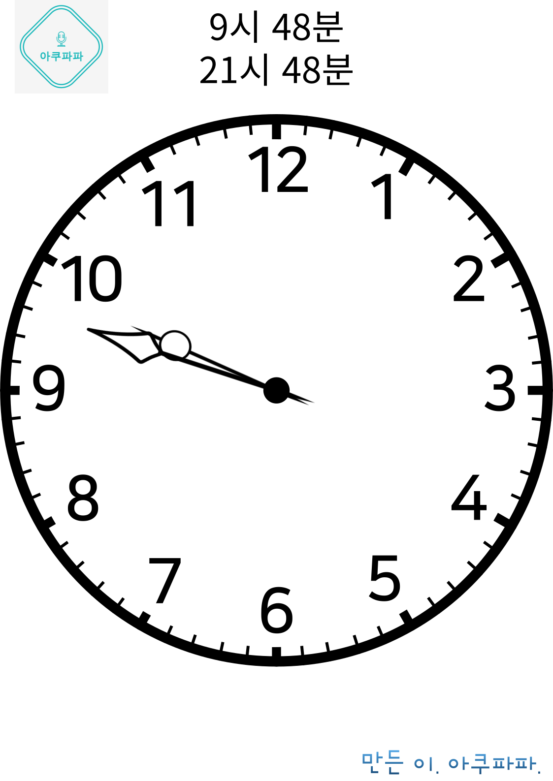 12분, 24분, 36분, 48분 일때를 보며 익히고, 문제를 풀어봅니다.