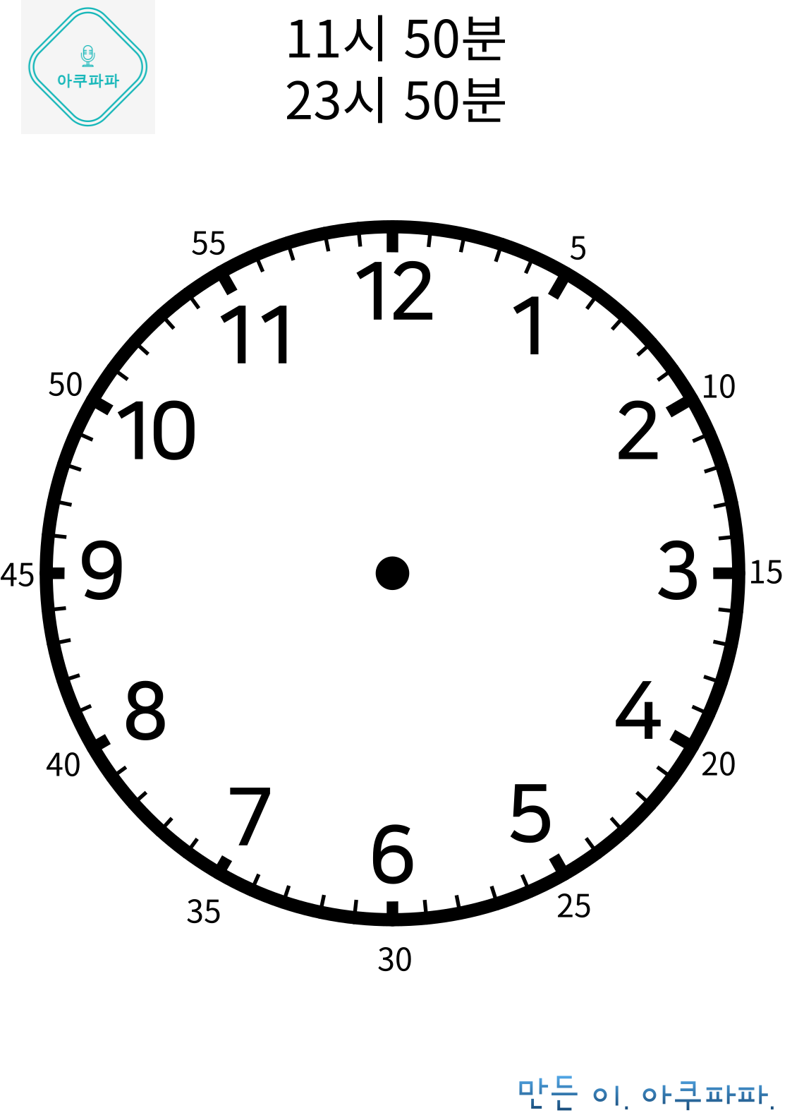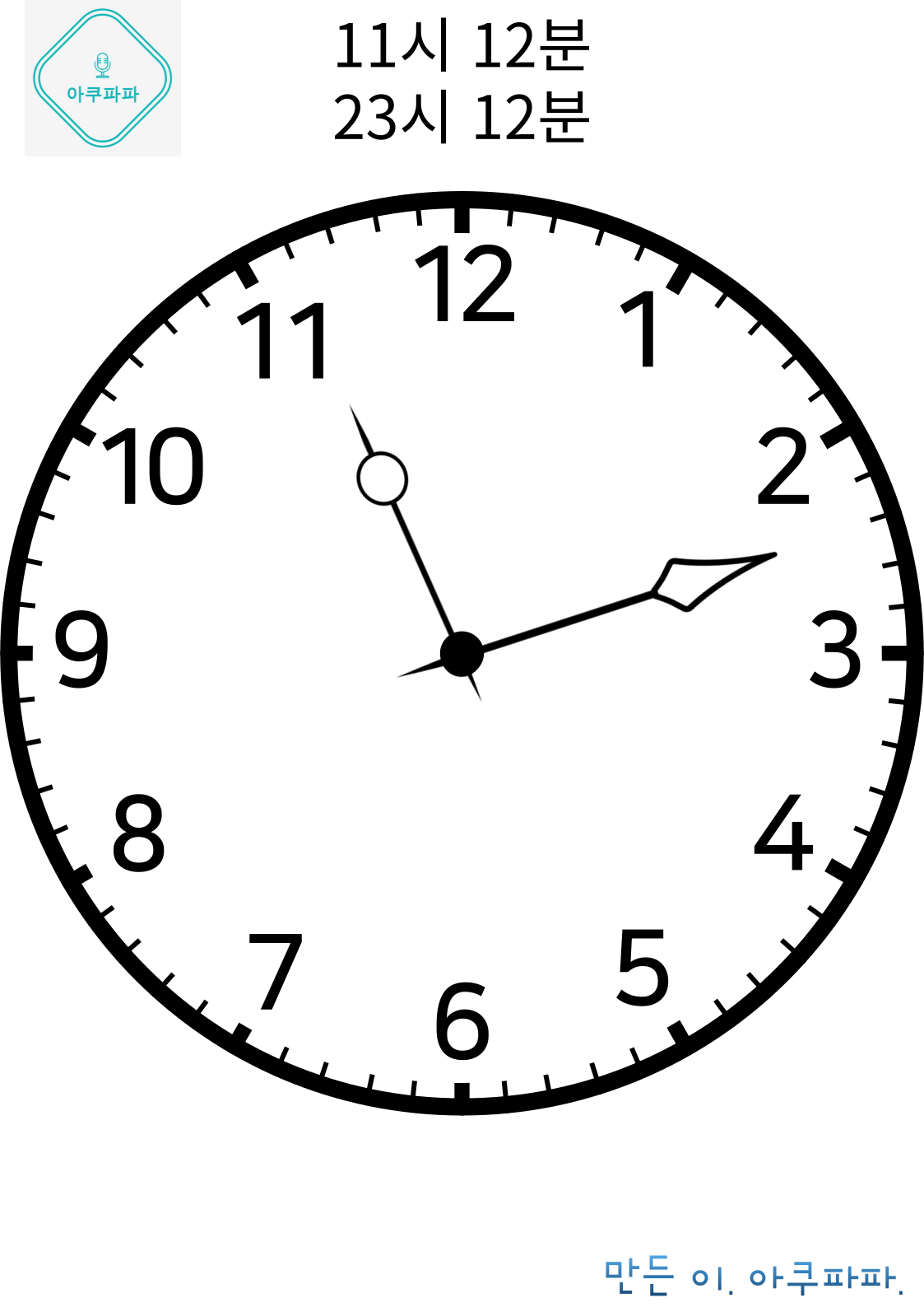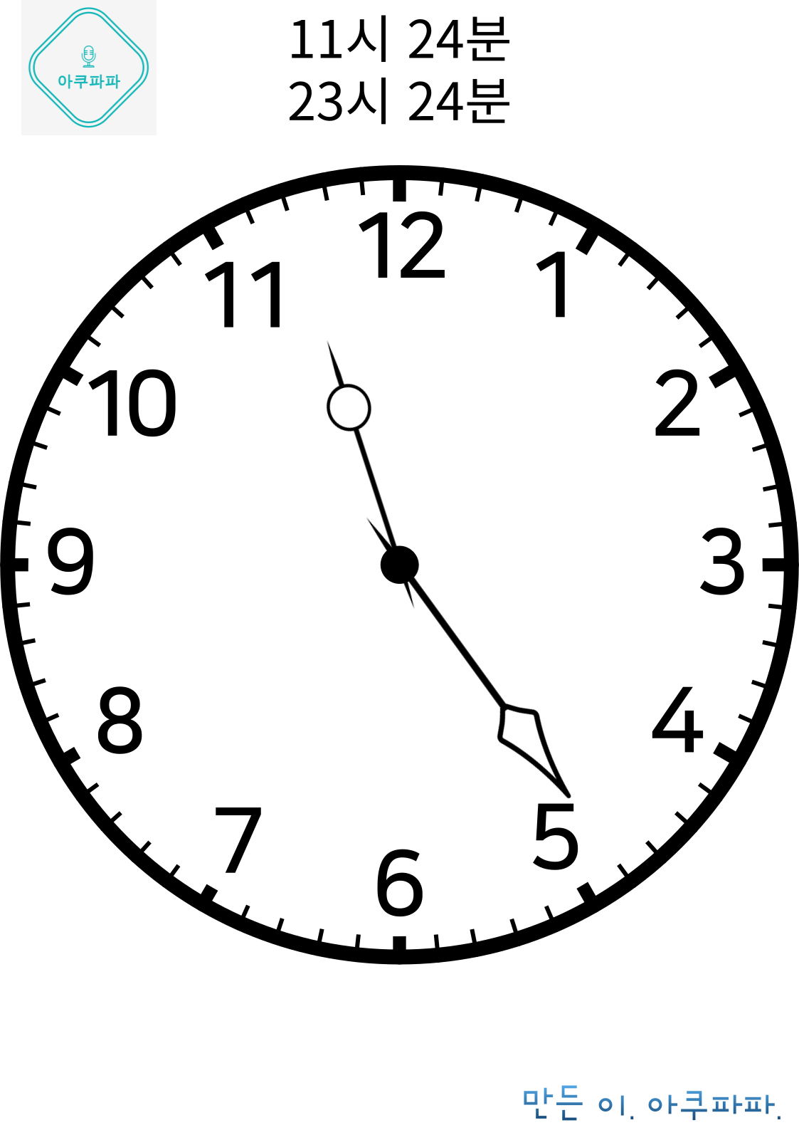 아날로그 시계읽는 방법 마지막 11시 시간 읽기 입니다.