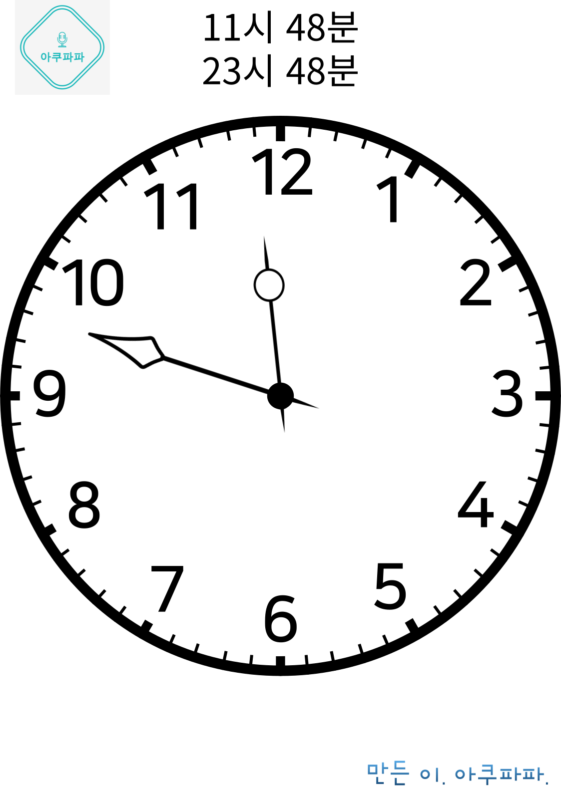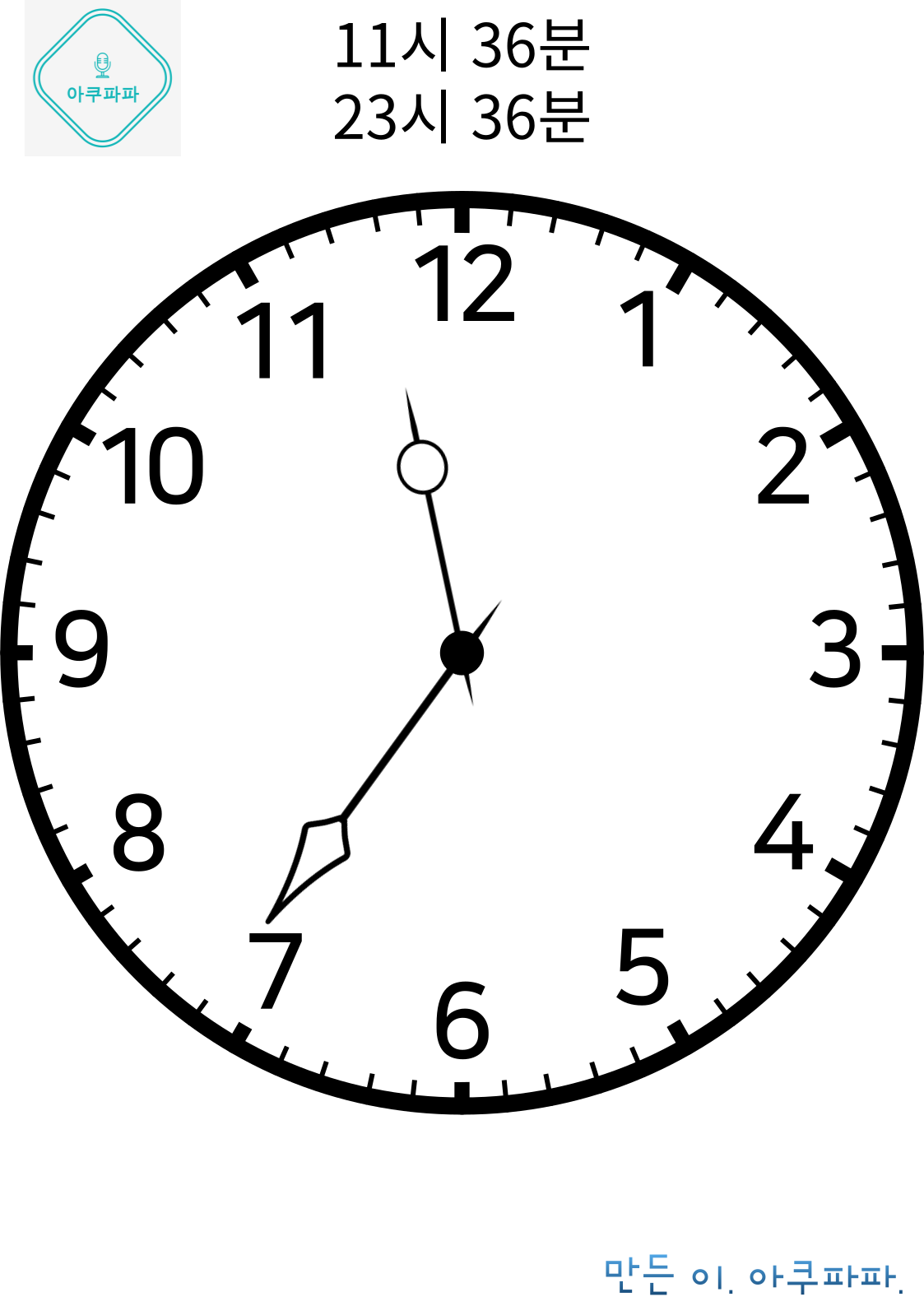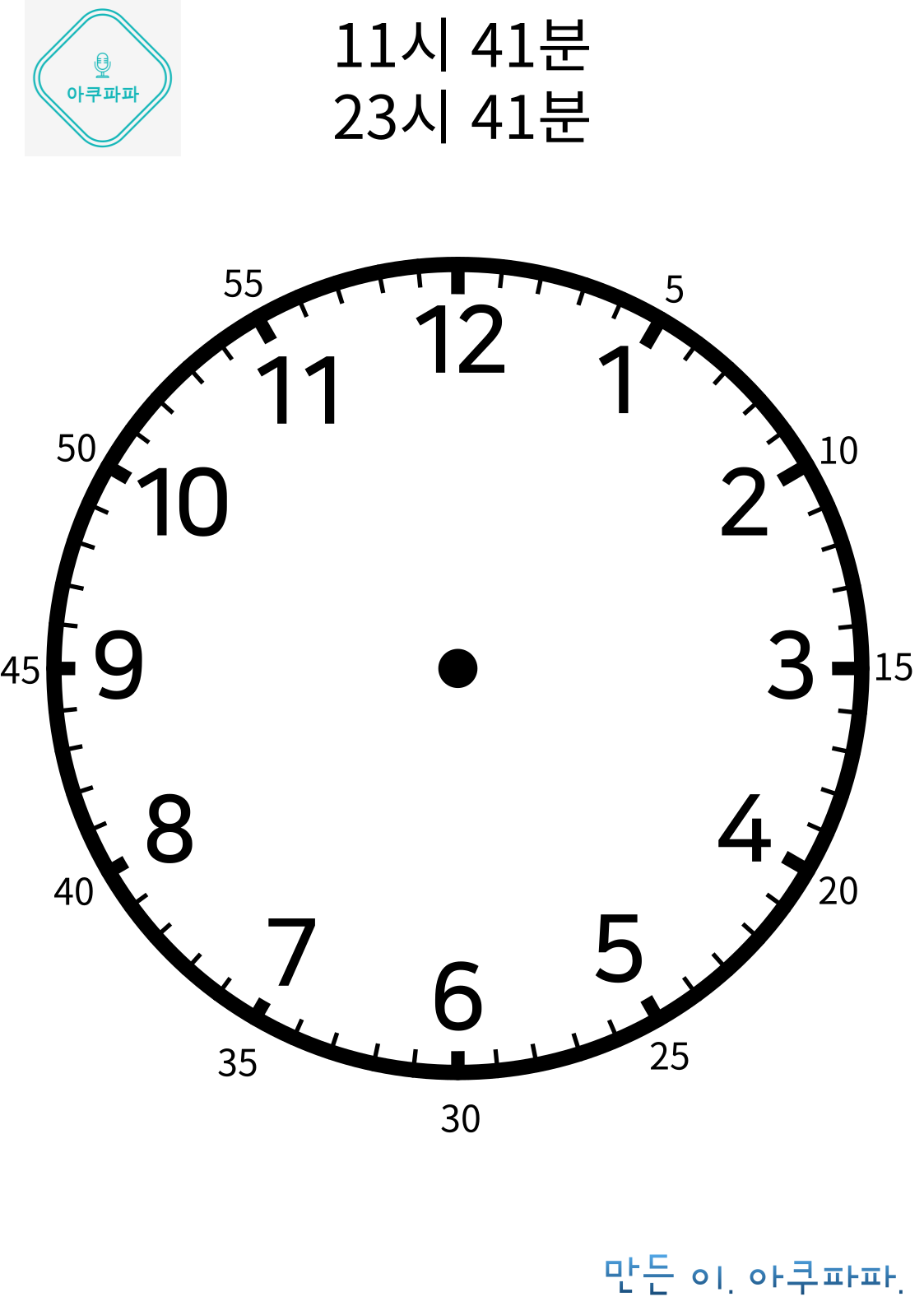아날로그 시계읽는 방법 마지막 11시 시간 읽기 입니다.