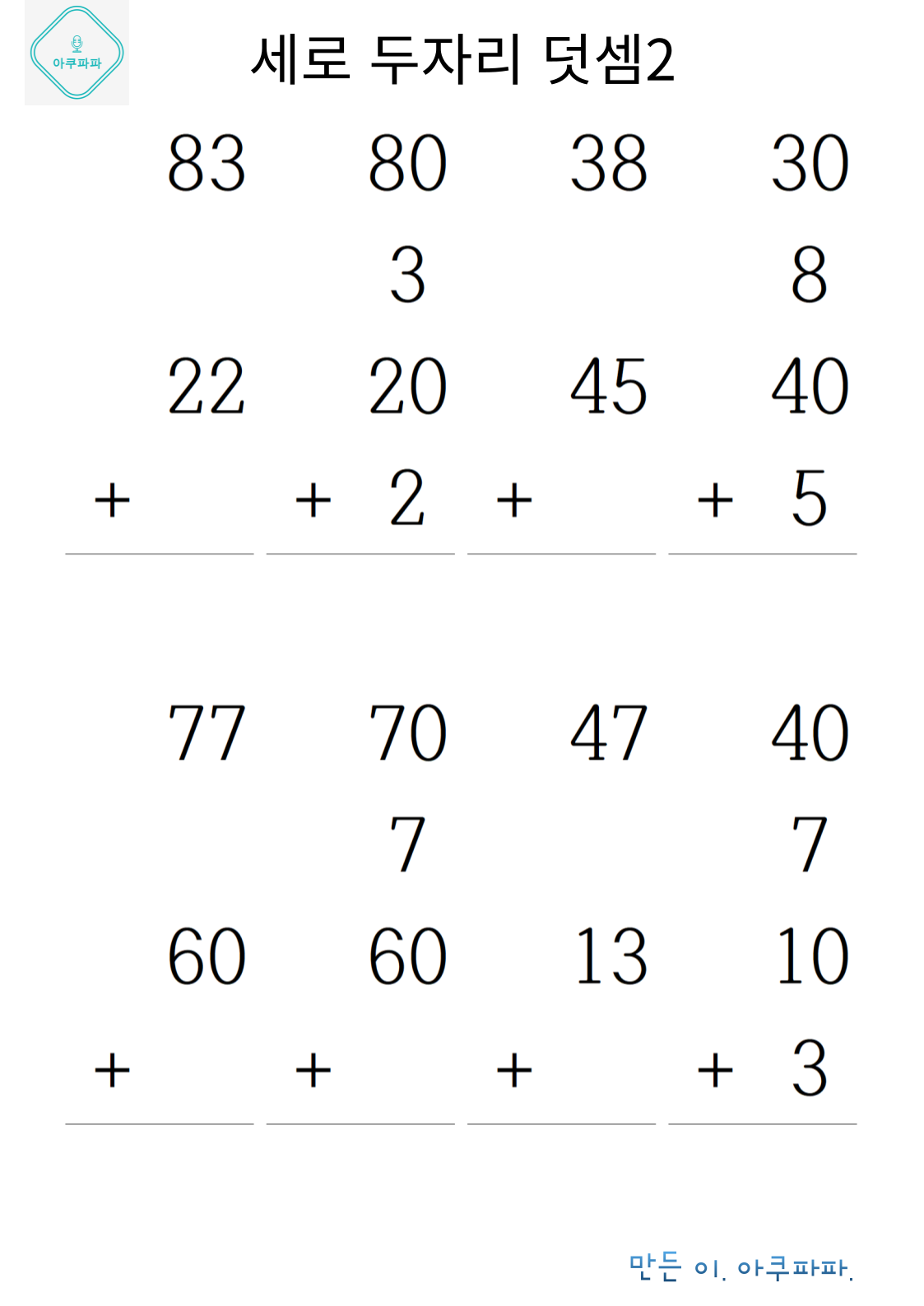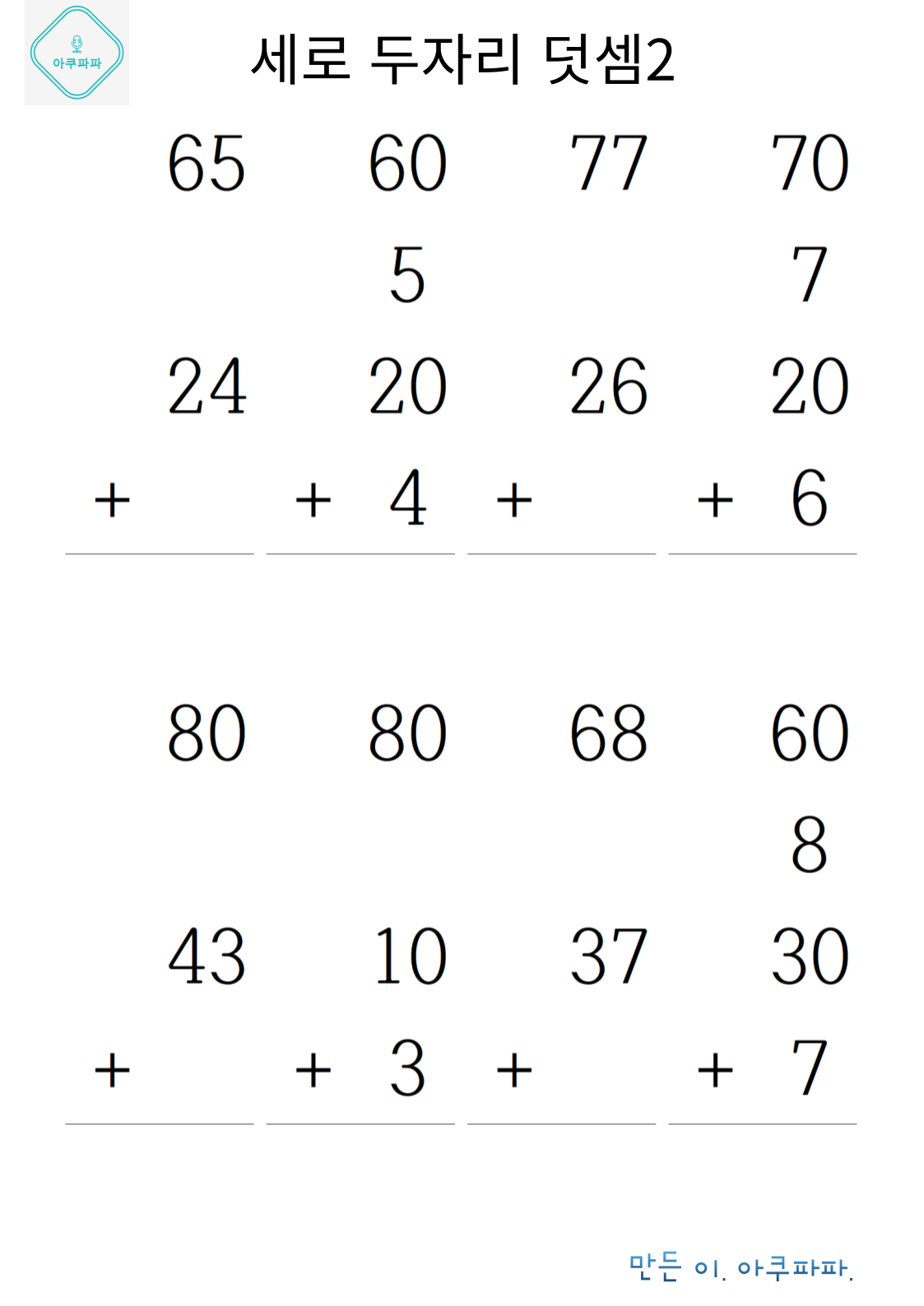 | 두자릿수 덧셈1_세로 (0) | 2024.07.27 |