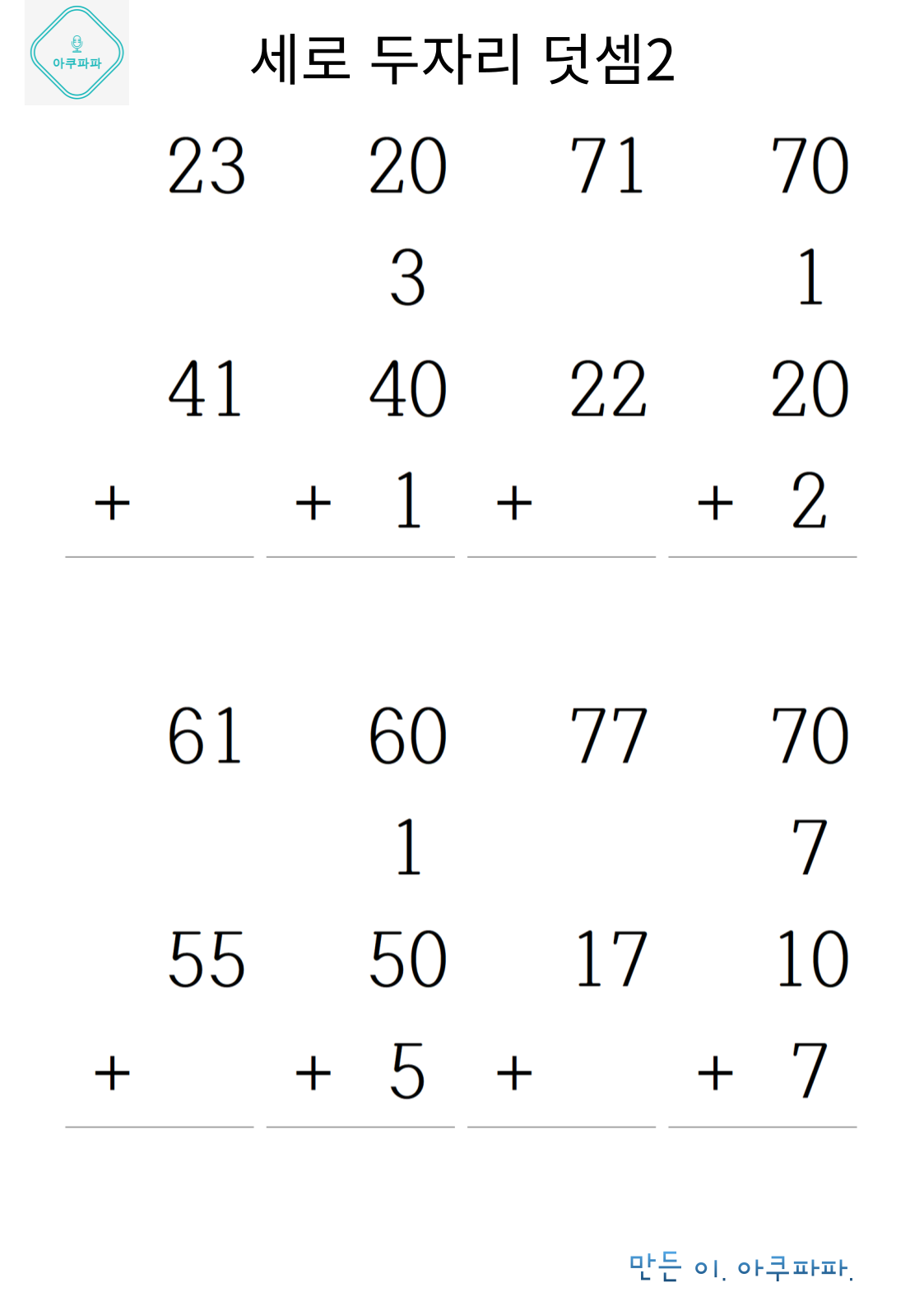 두자릿수 덧셈2_세로