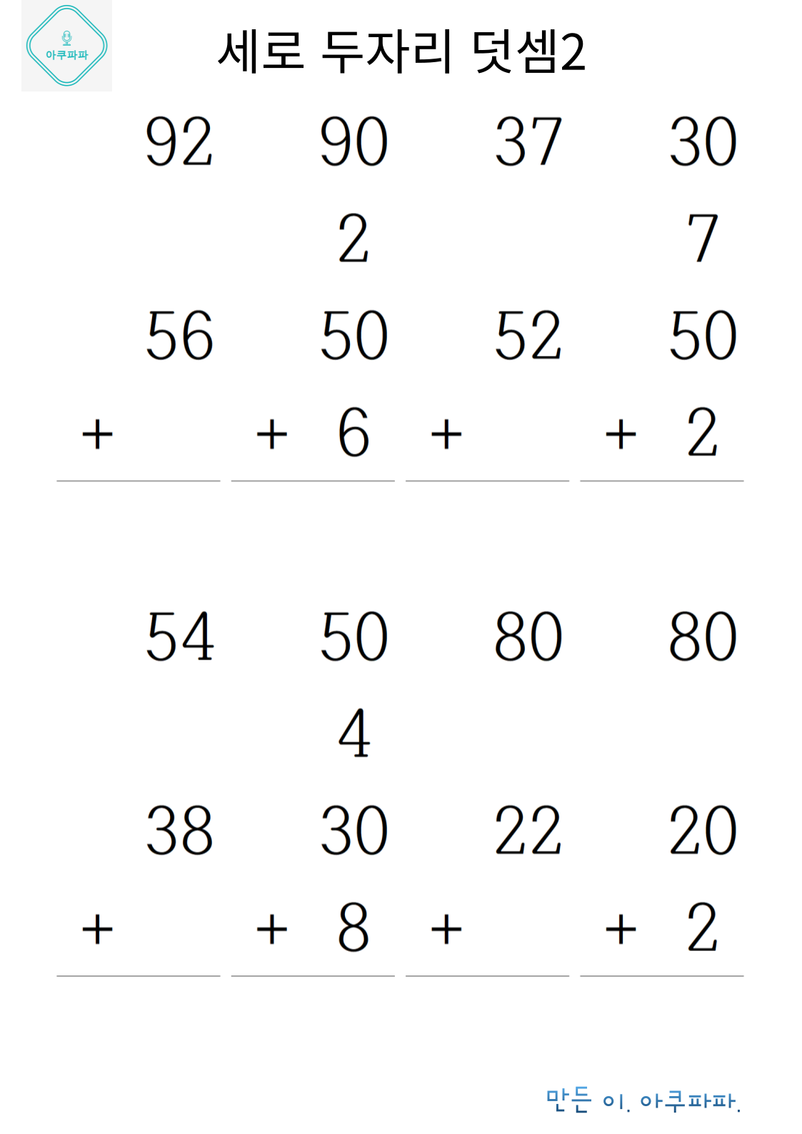 두자릿수 덧셈2_세로