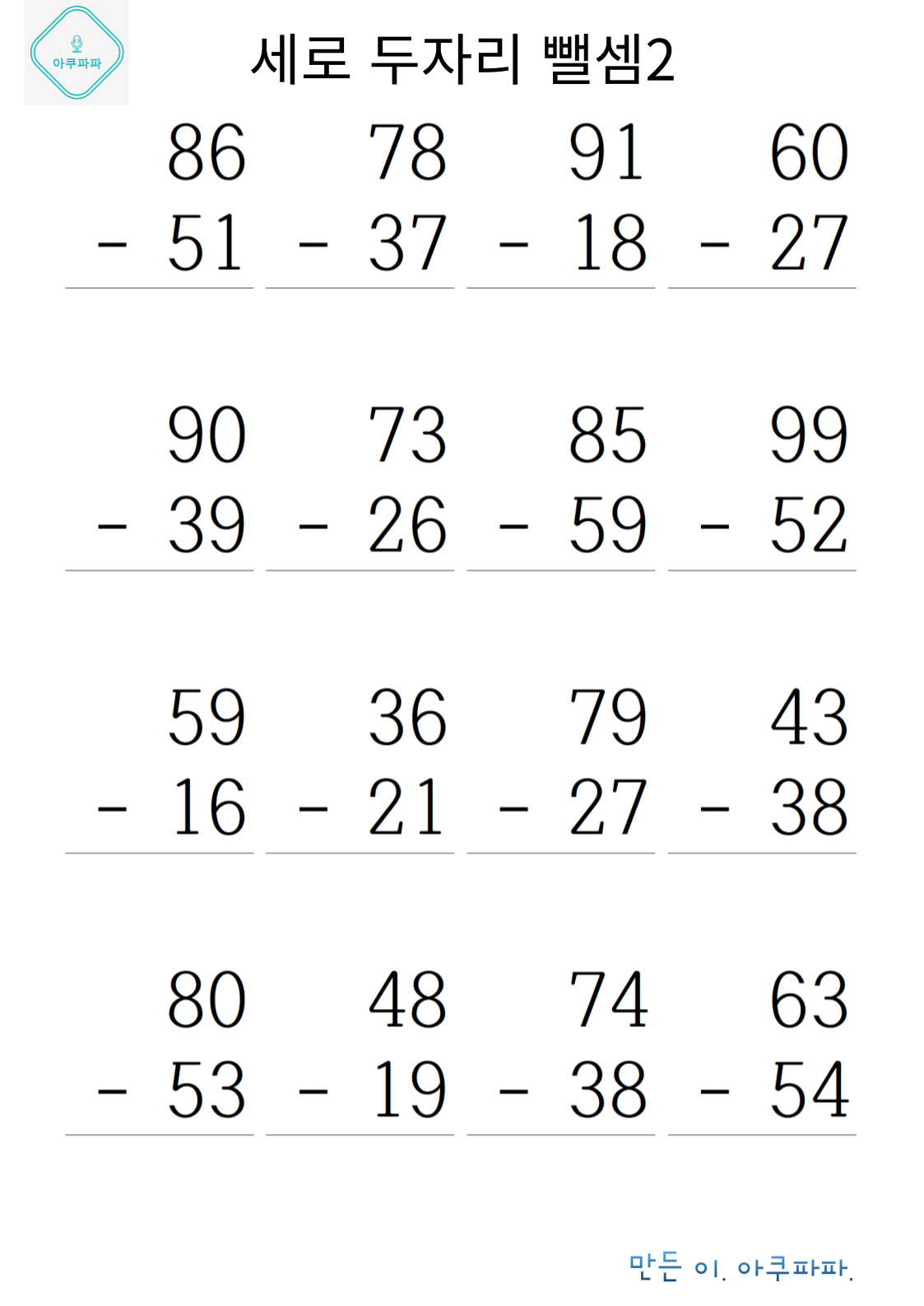 | 두 자릿수 뺄셈 1 (0) | 2024.07.22 |