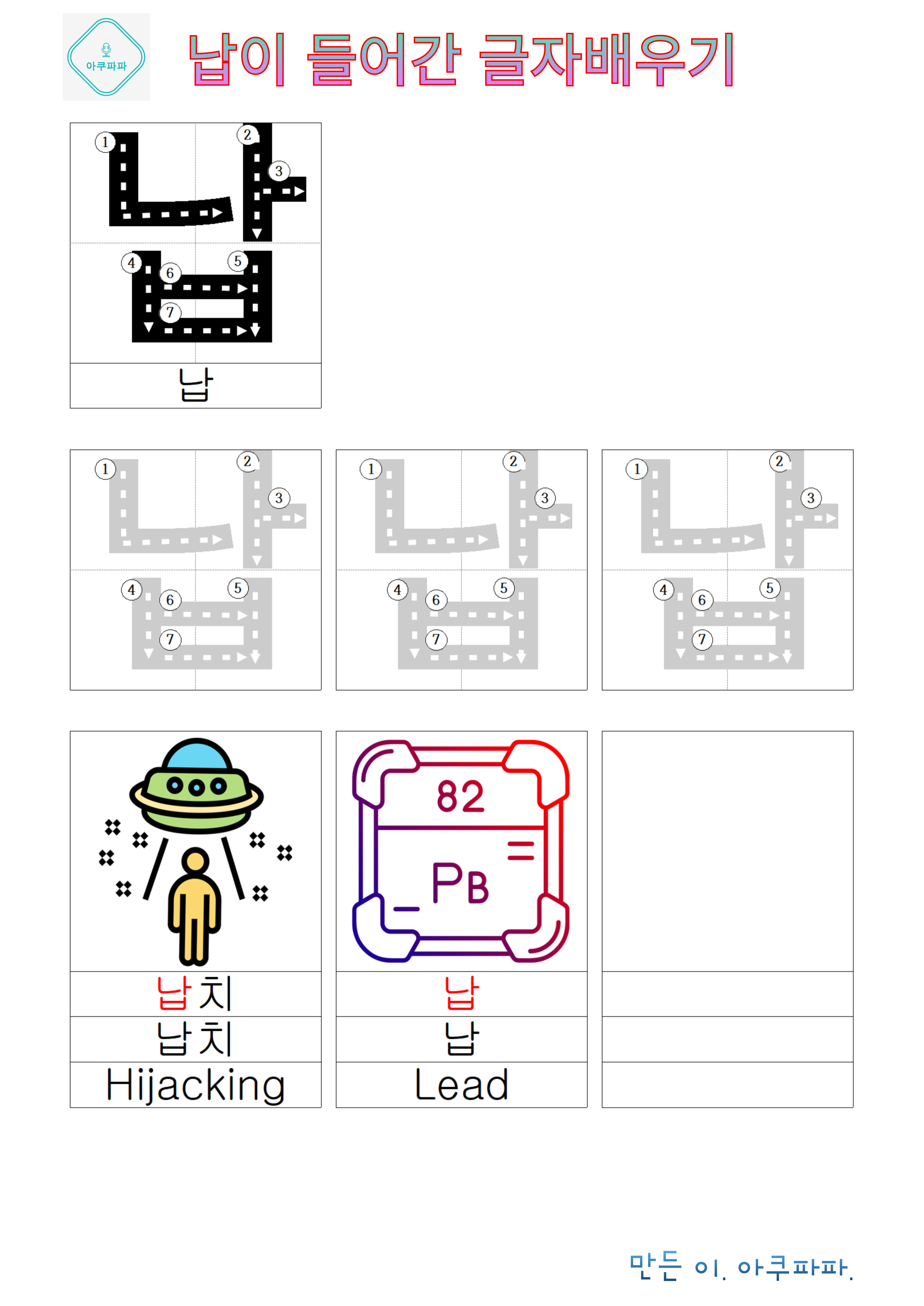 나 로 시작하는 받침 글자 배우기