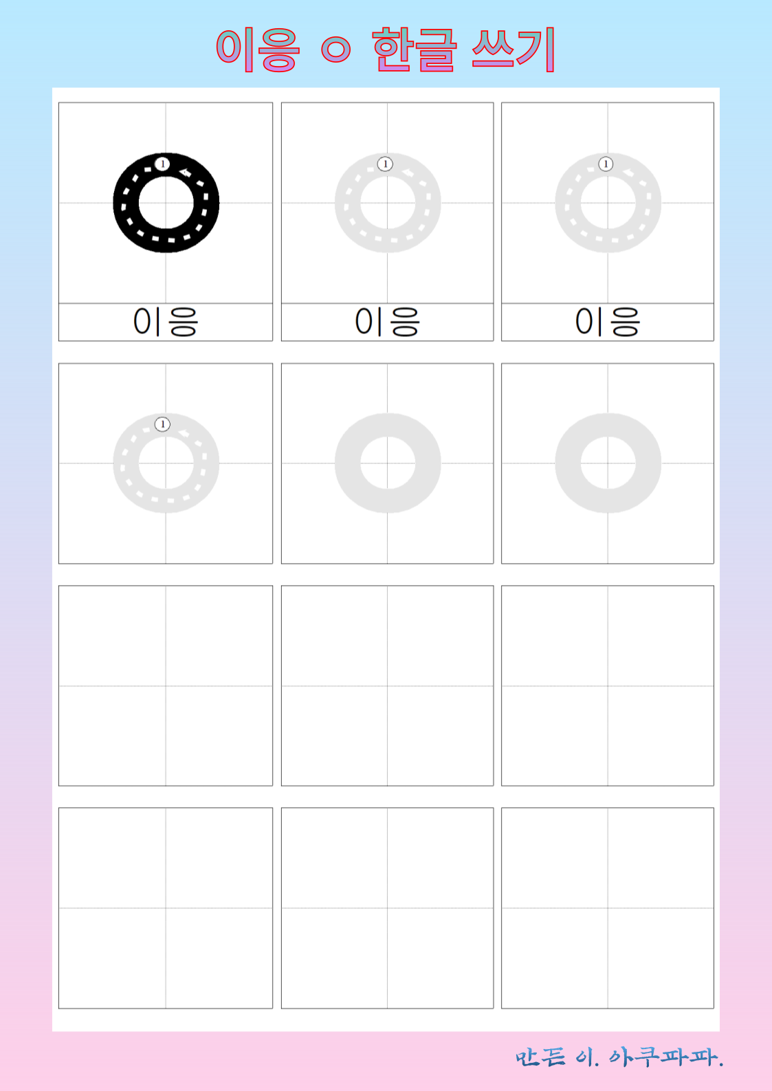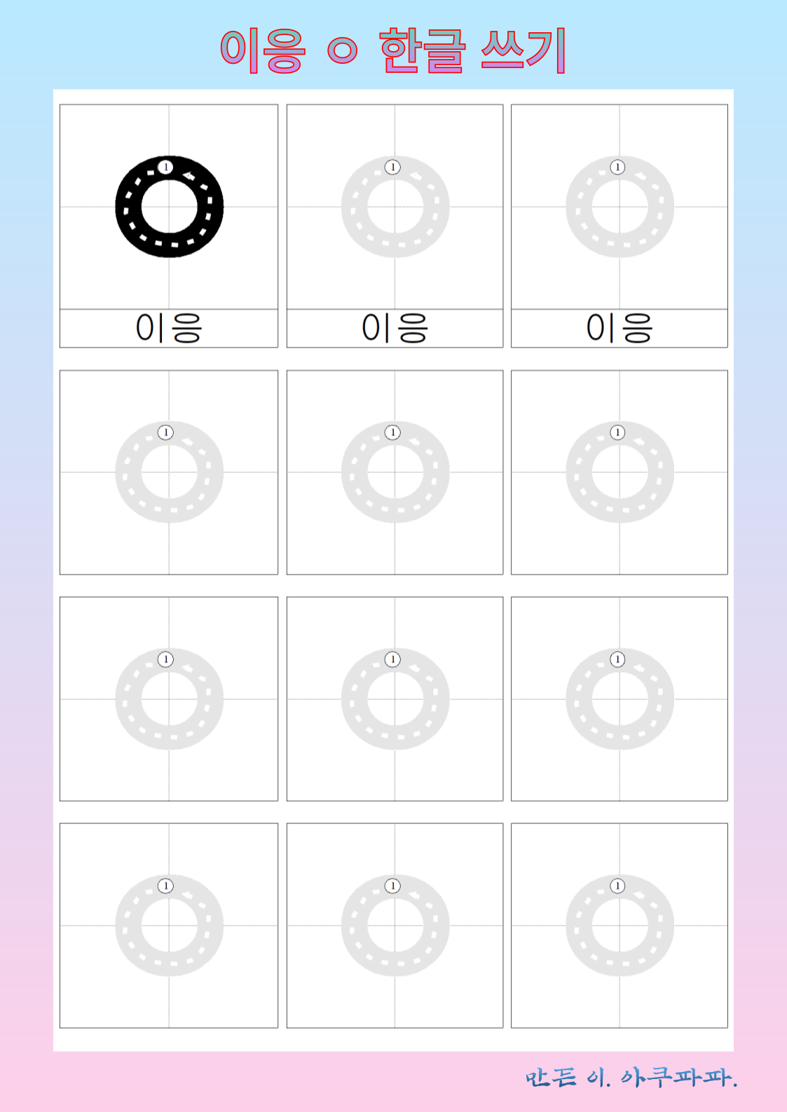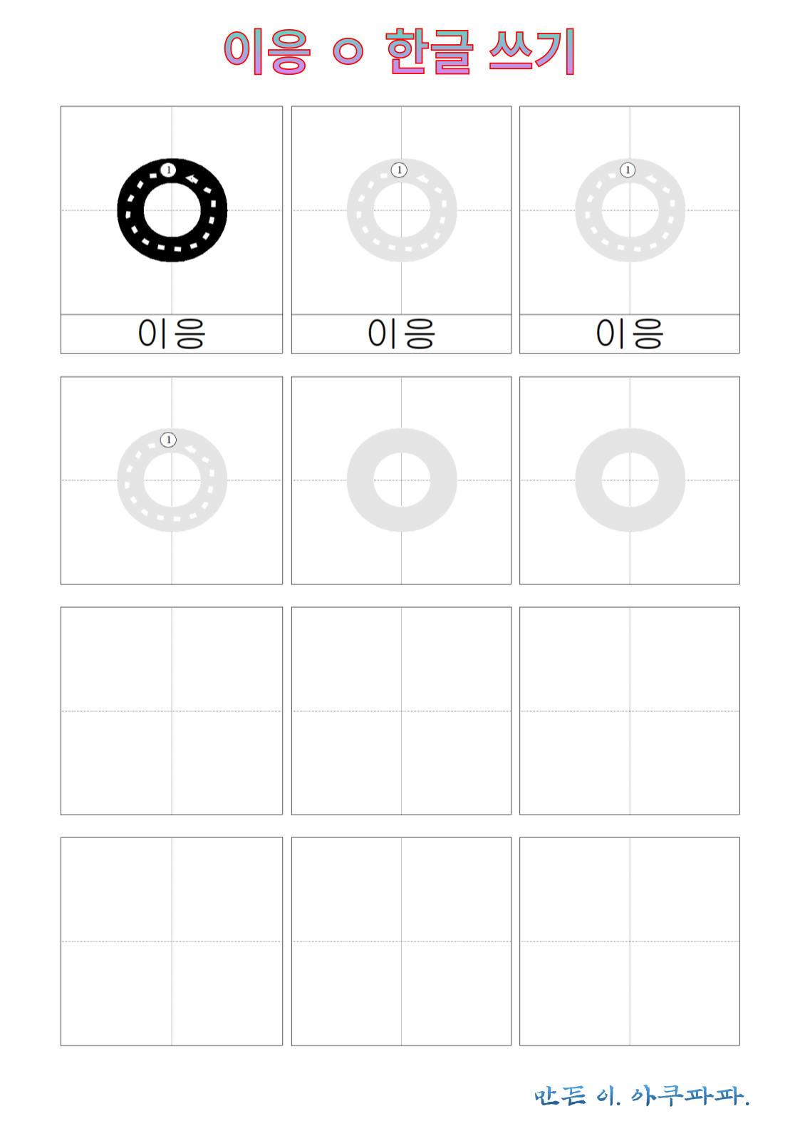 ㅇ 과 모음이 만난 글자 따라 쓰기