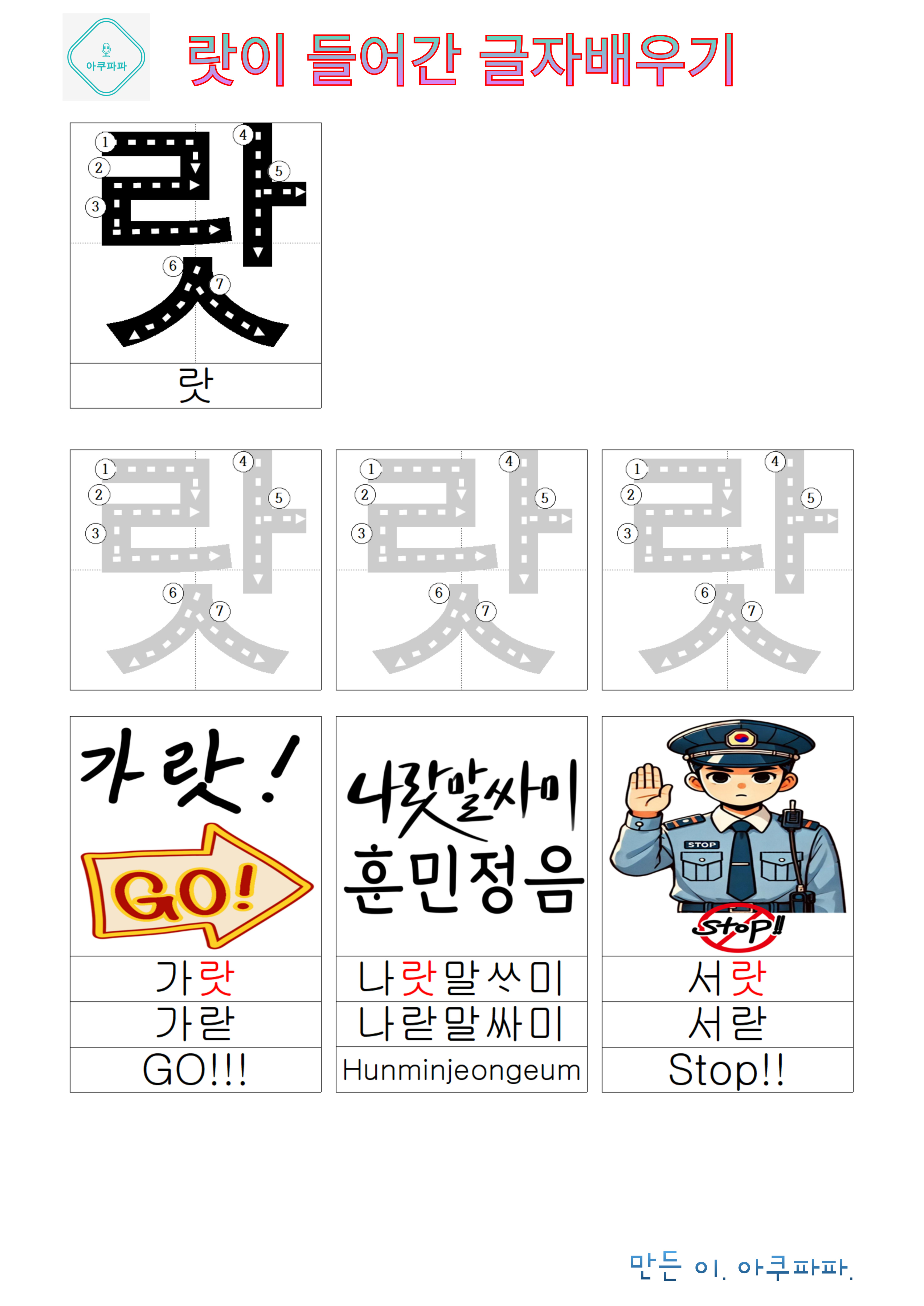 | 가 로 시작하는 받침 글자 배우기 (0) | 2024.09.04 |