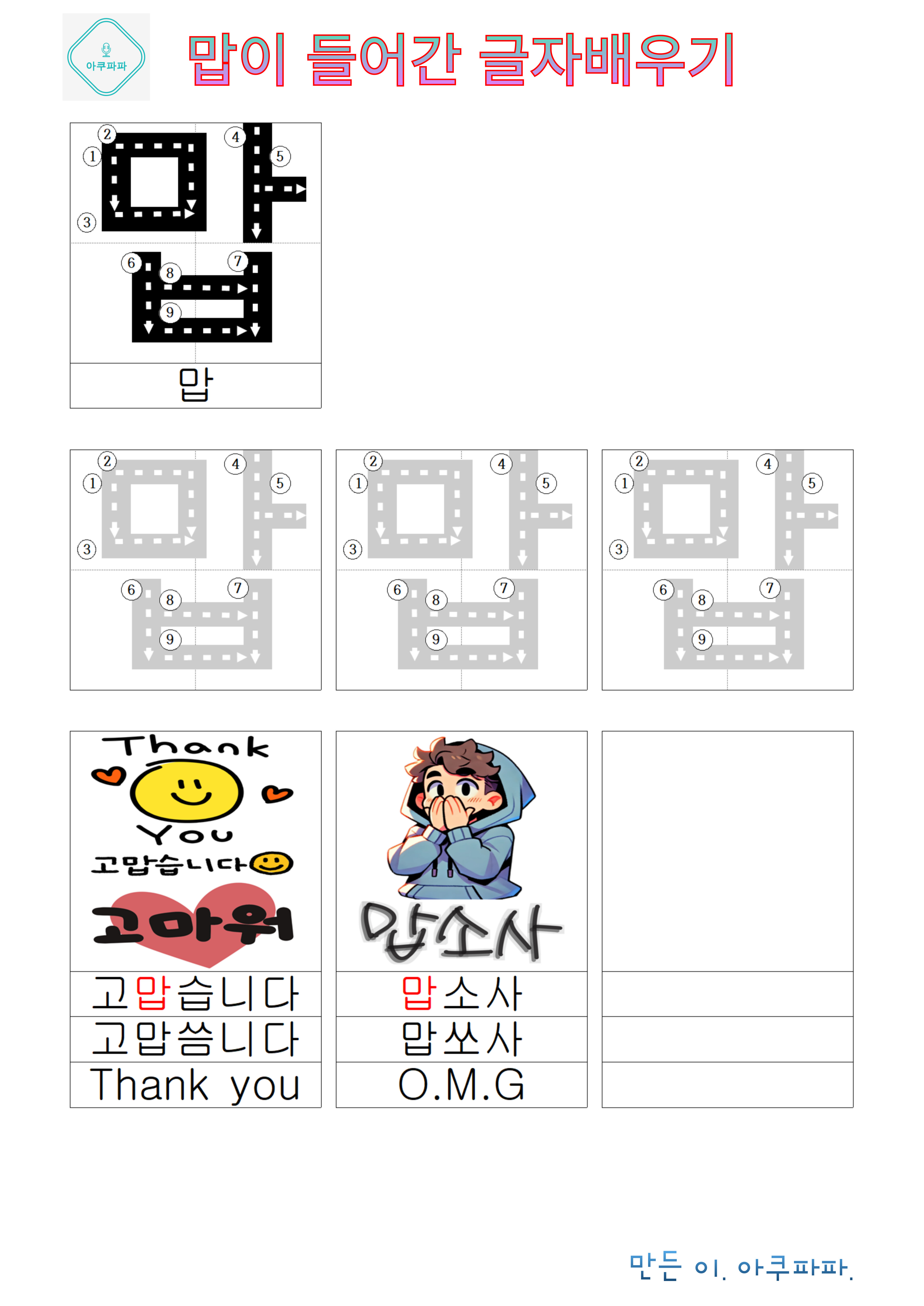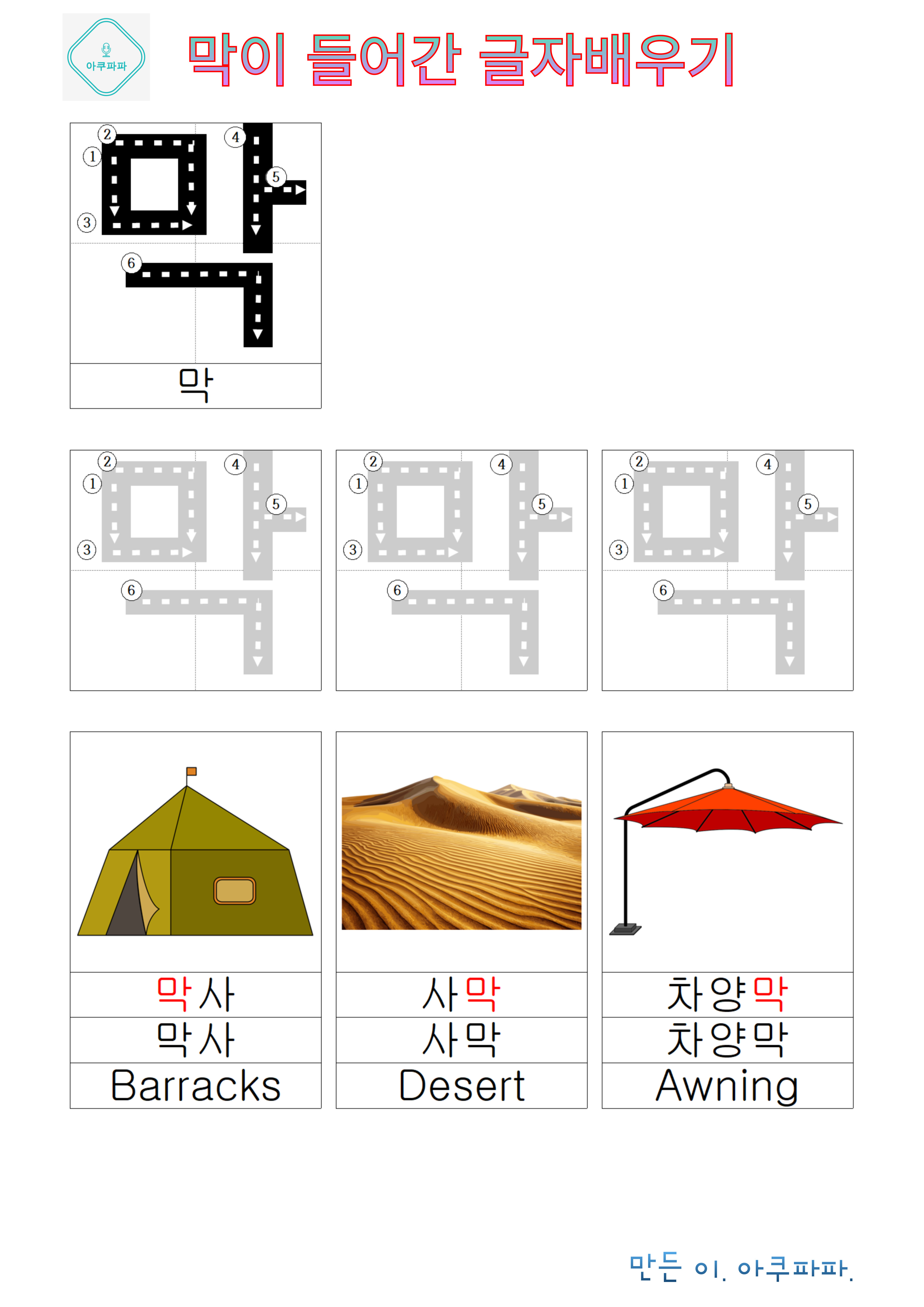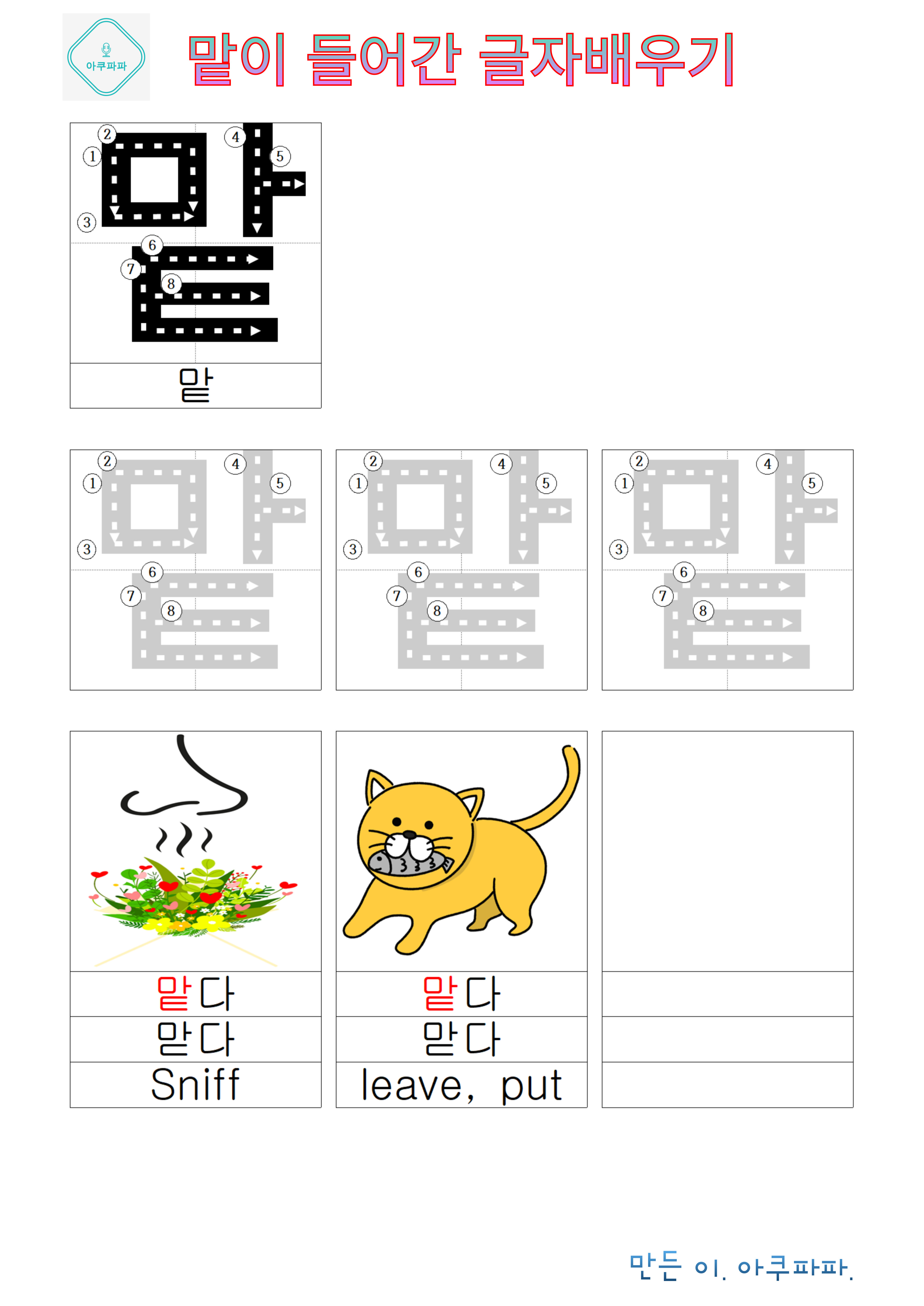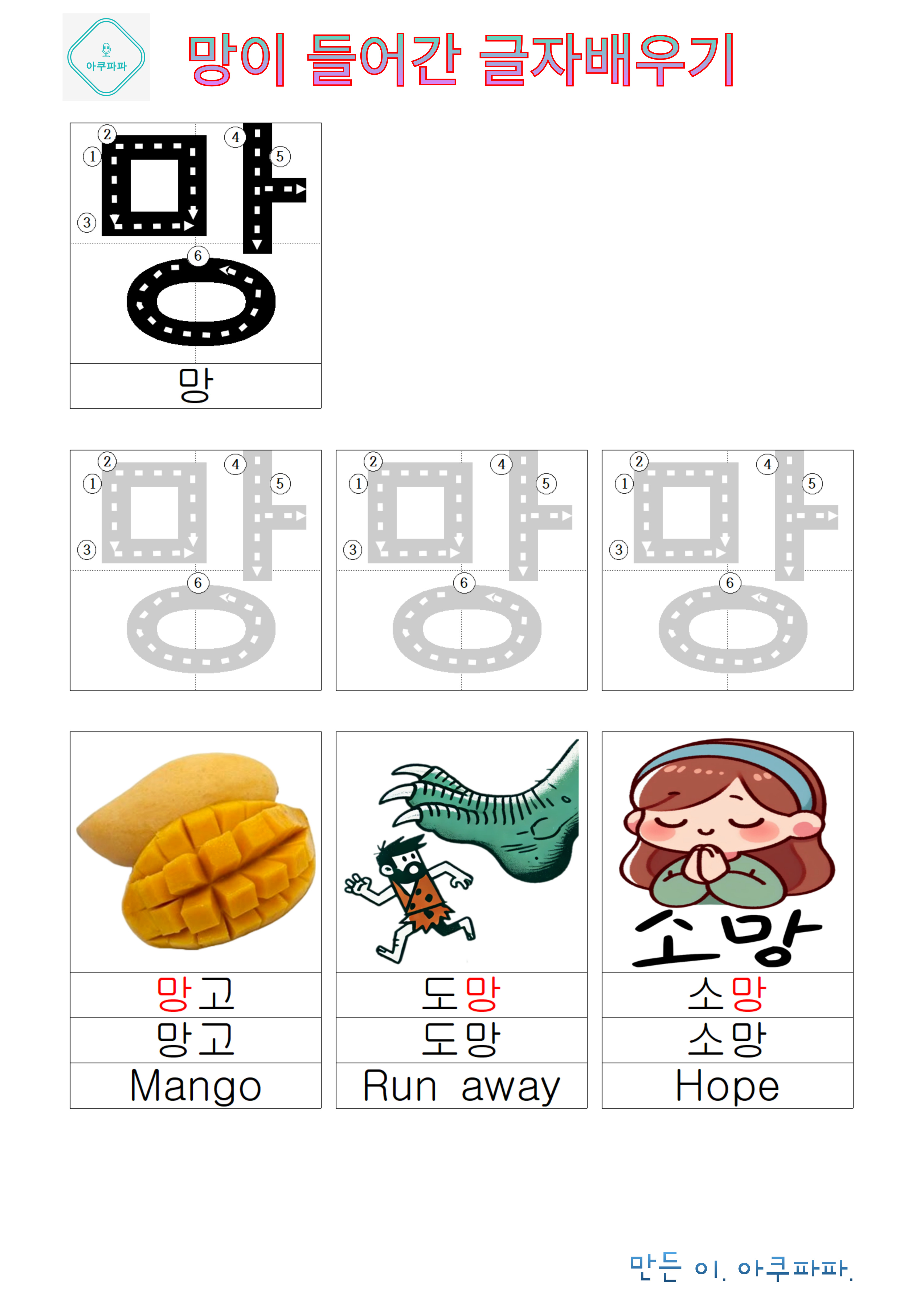 | 사 로 시작하는 받침 글자 배우기 (6) | 2024.09.11 |