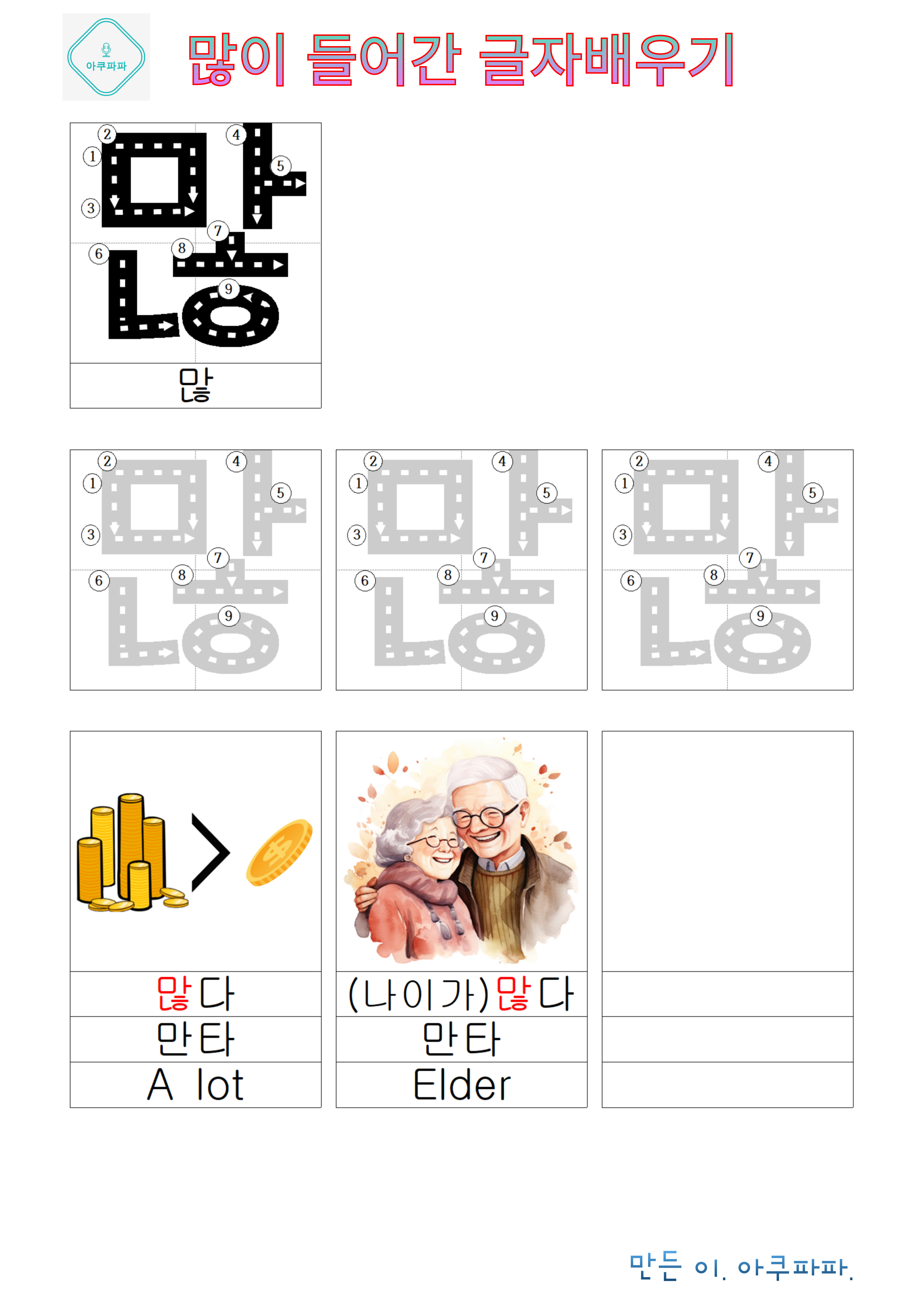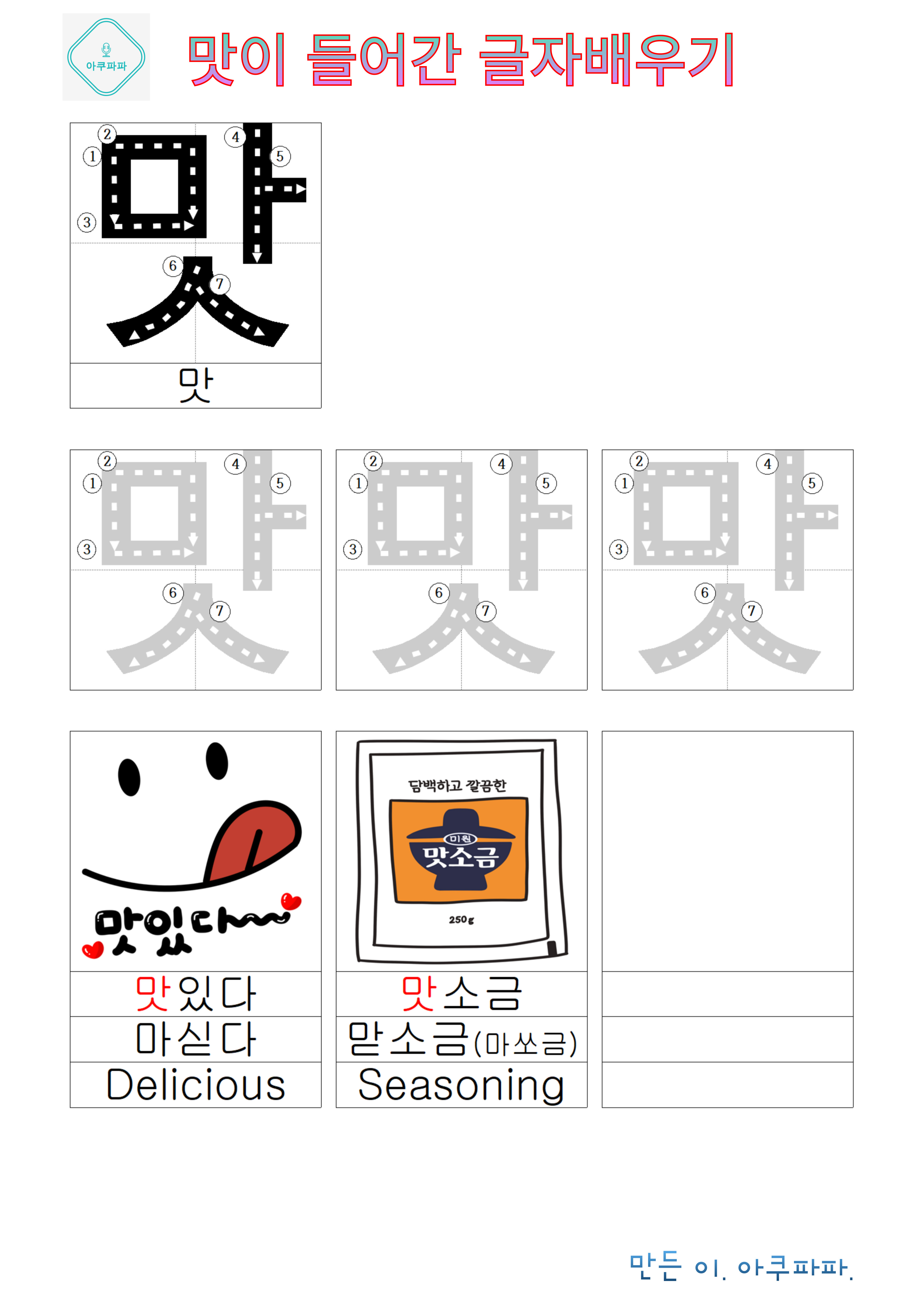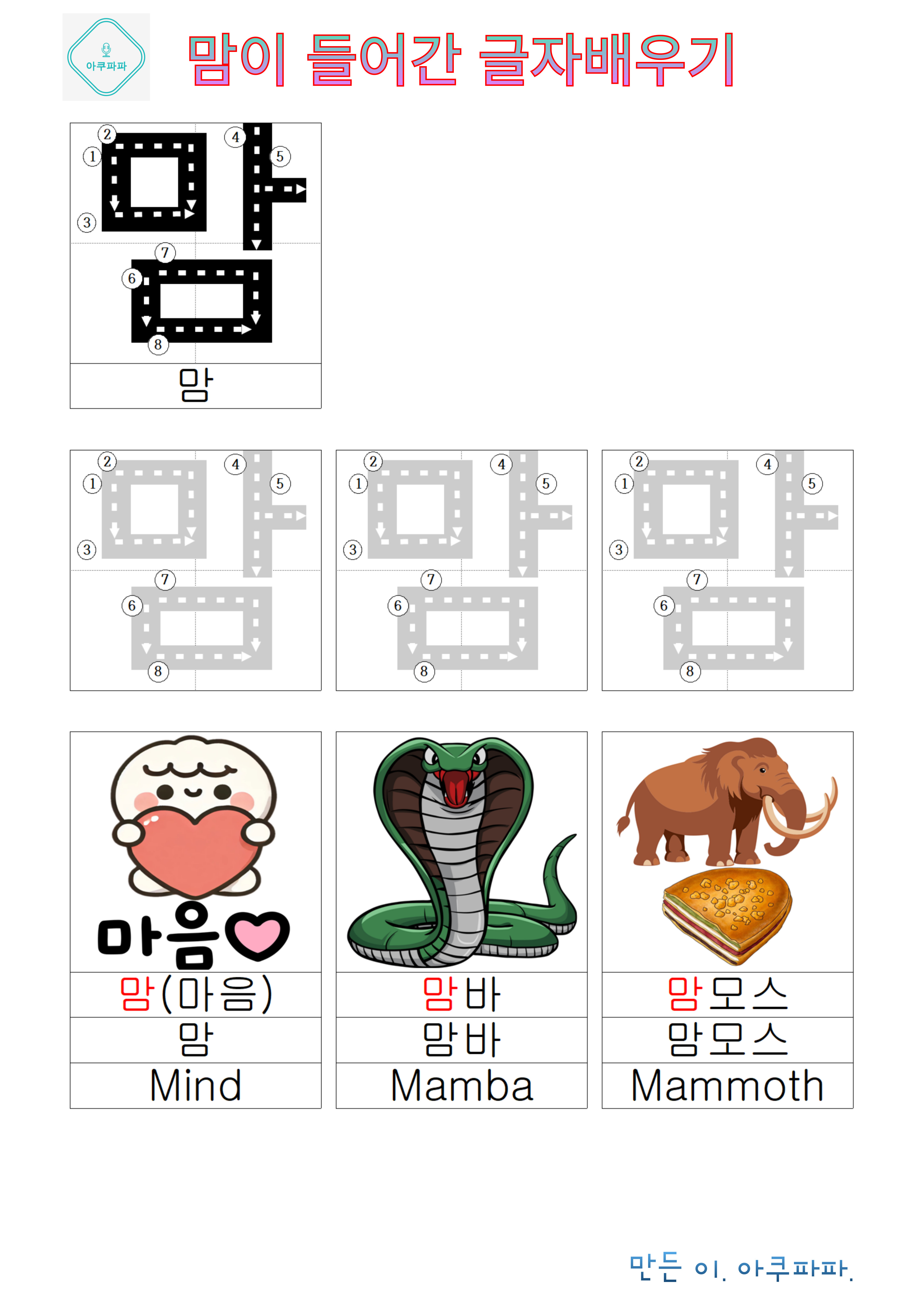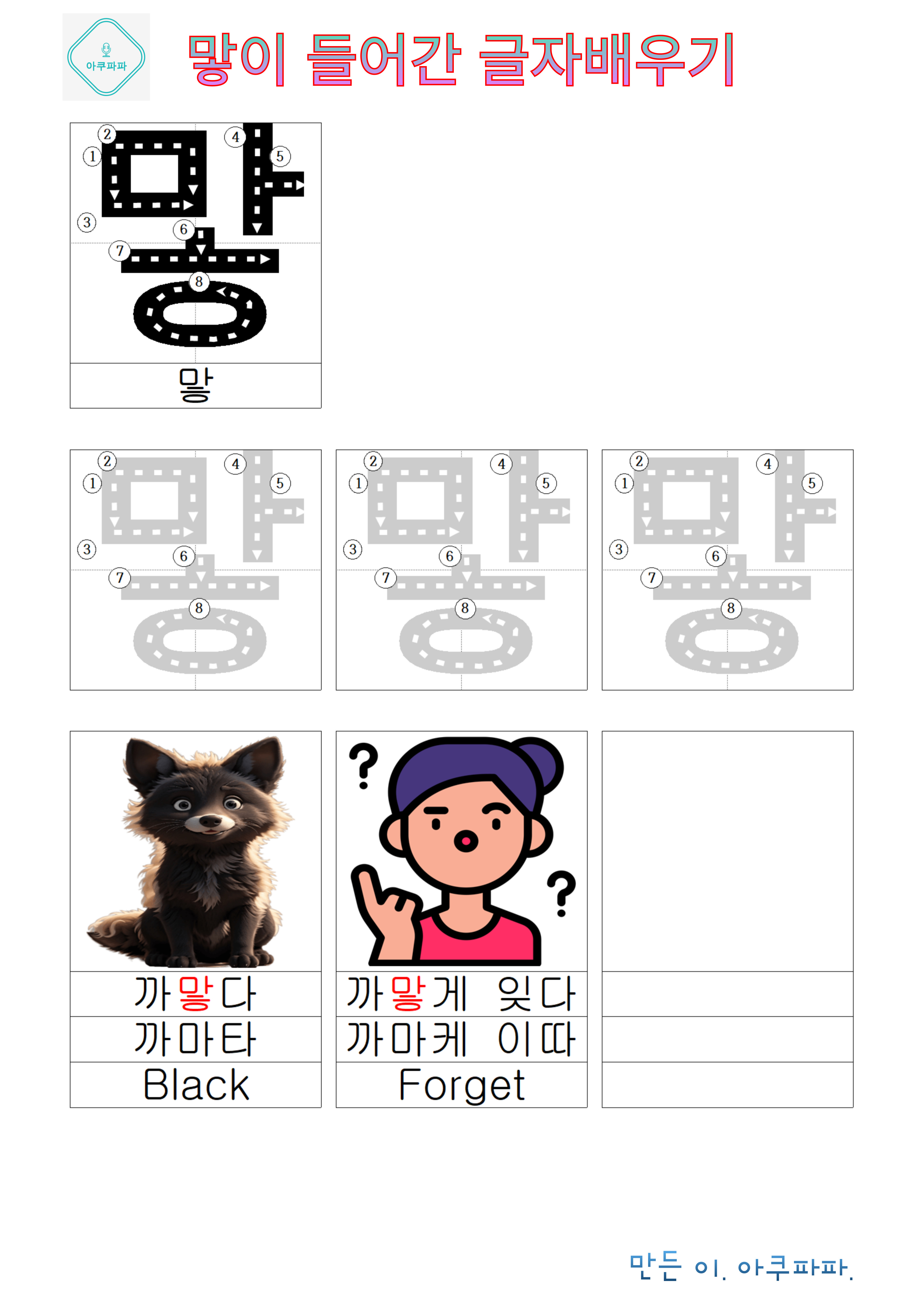 | 사 로 시작하는 받침 글자 배우기 (6) | 2024.09.11 |