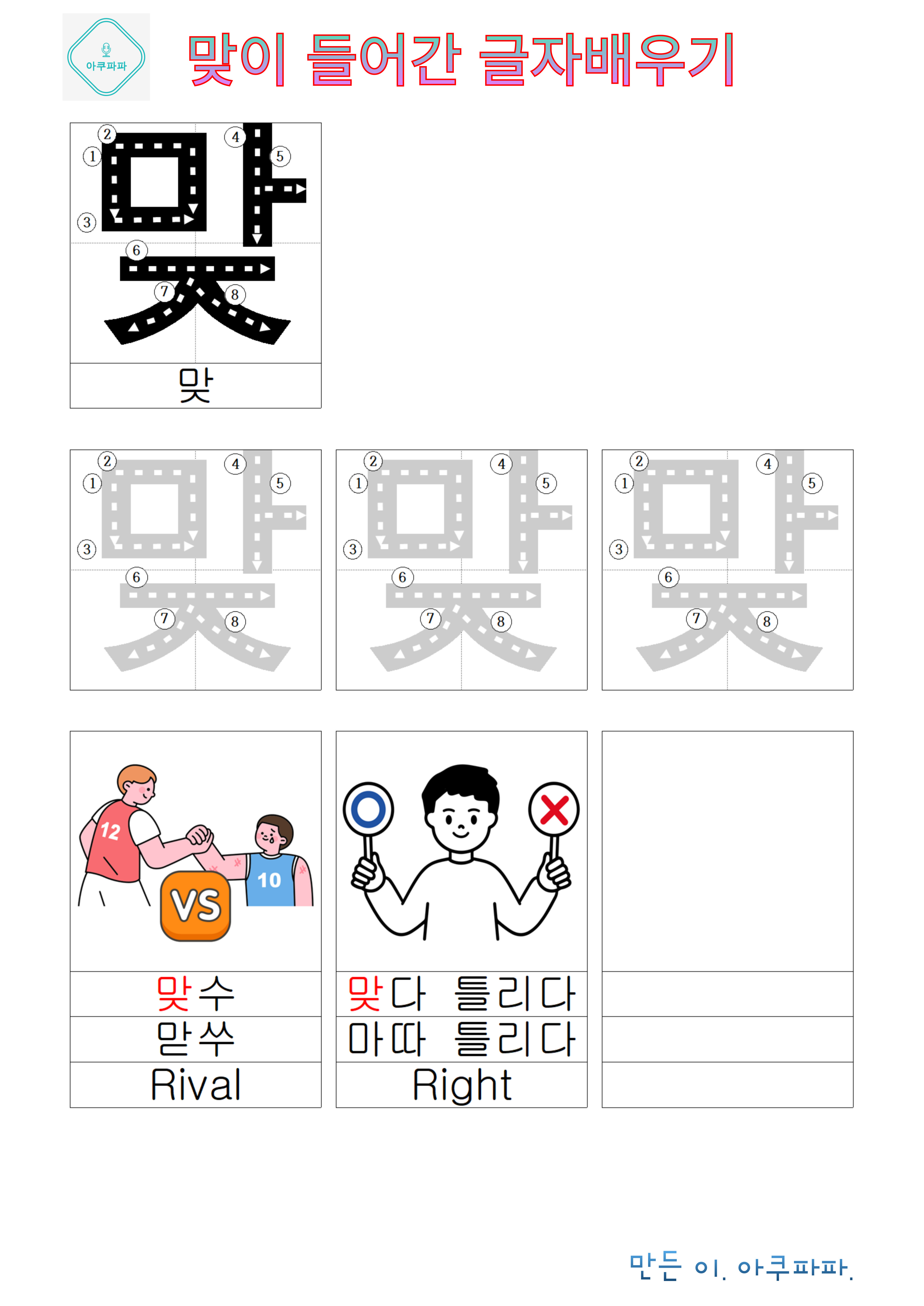 | 바 로 시작하는 받침 글자 배우기 (0) | 2024.09.10 |