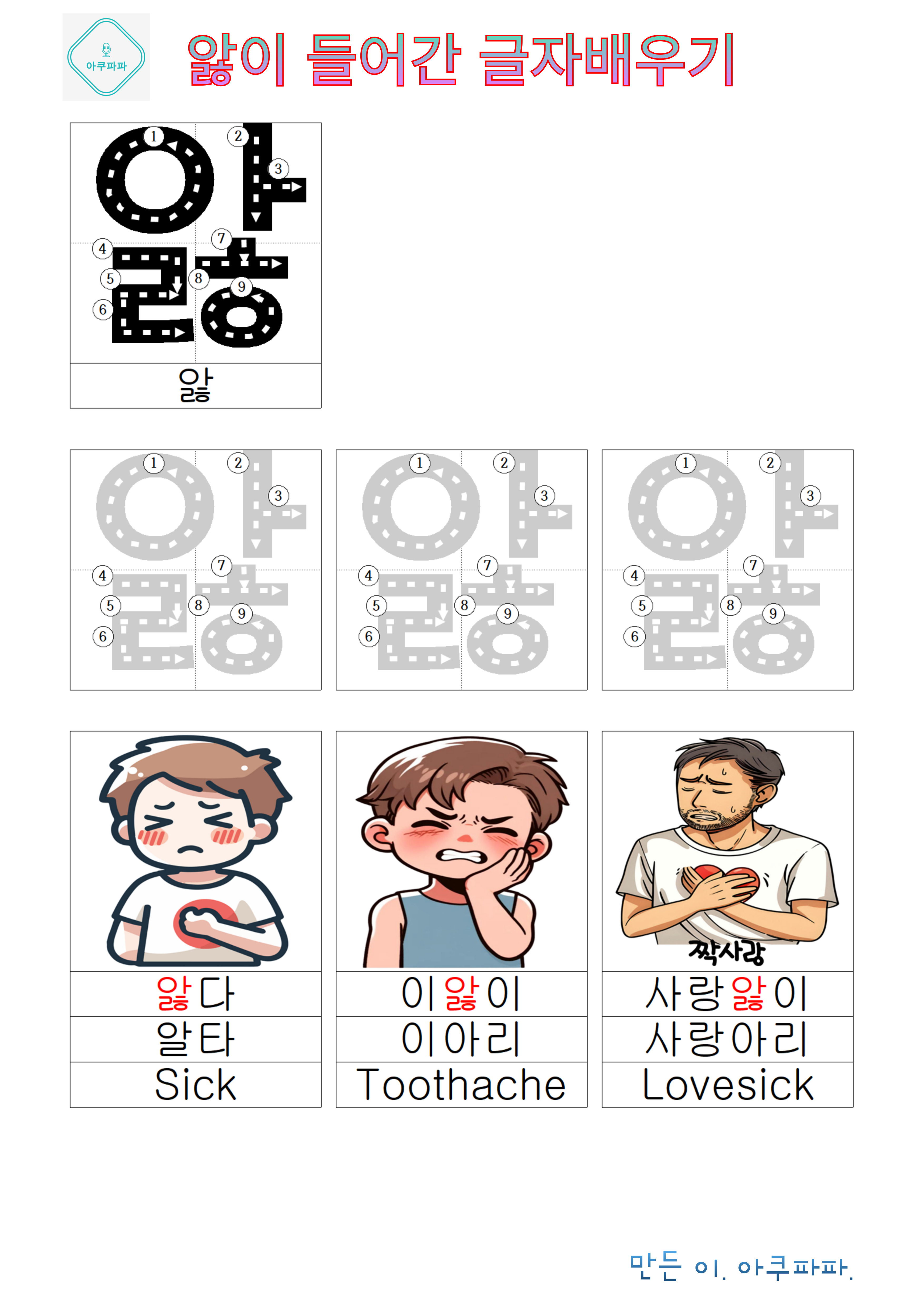 | 마 로 시작하는 받침 글자 배우기 (0) | 2024.09.09 |