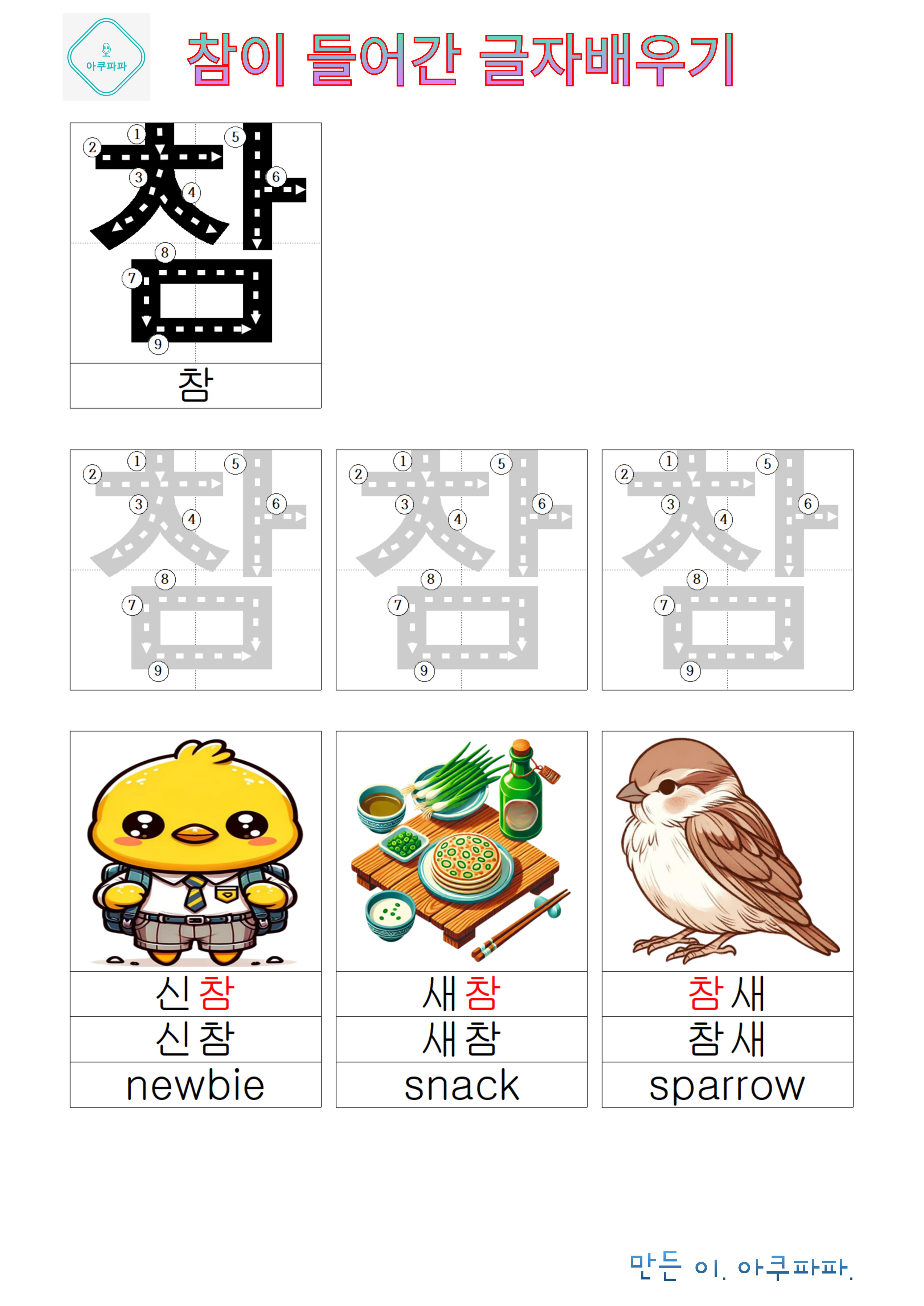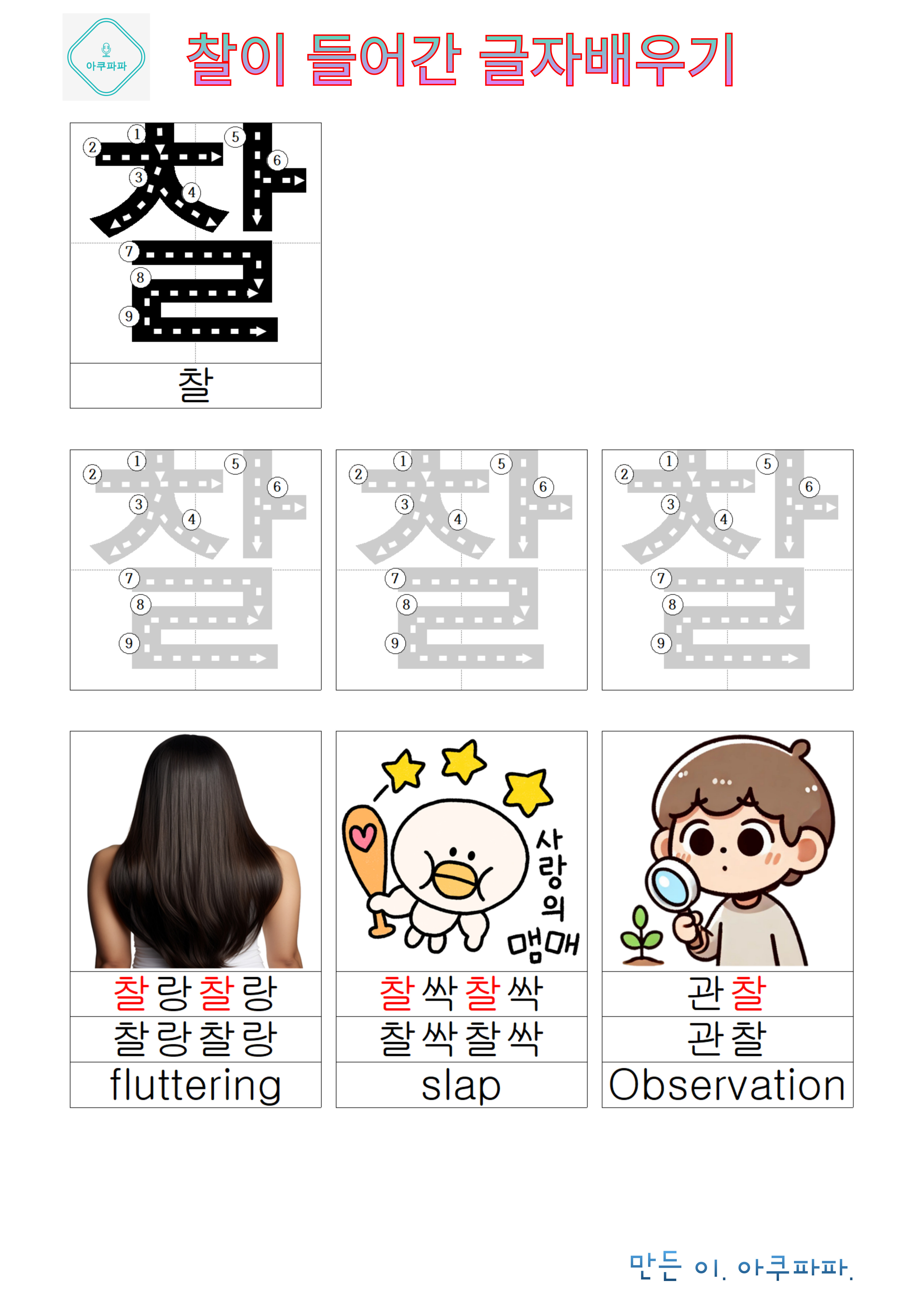 | 사 로 시작하는 받침 글자 배우기 (6) | 2024.09.11 |