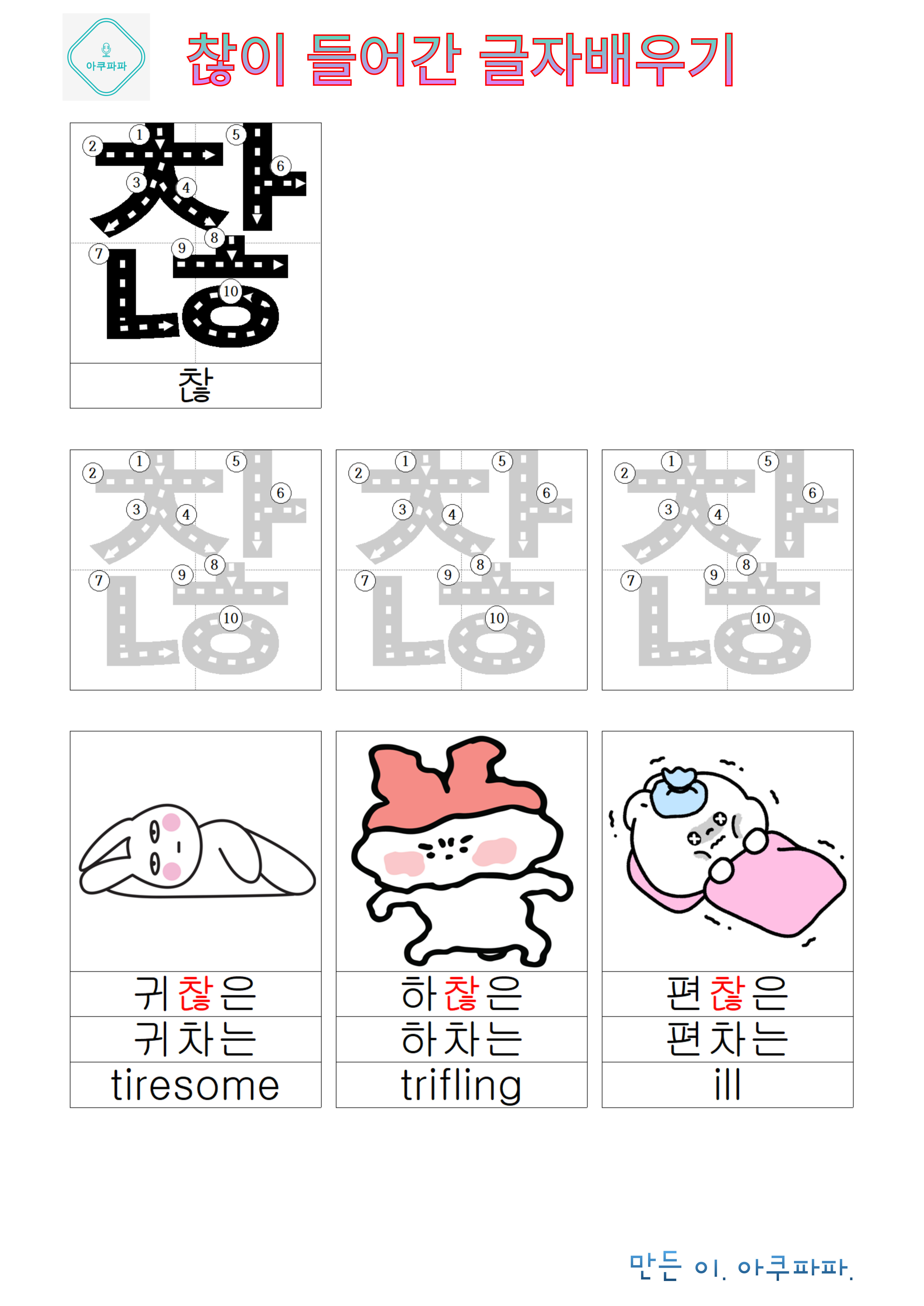 | 카 로 시작하는 받침 글자 배우기 (0) | 2024.09.13 |