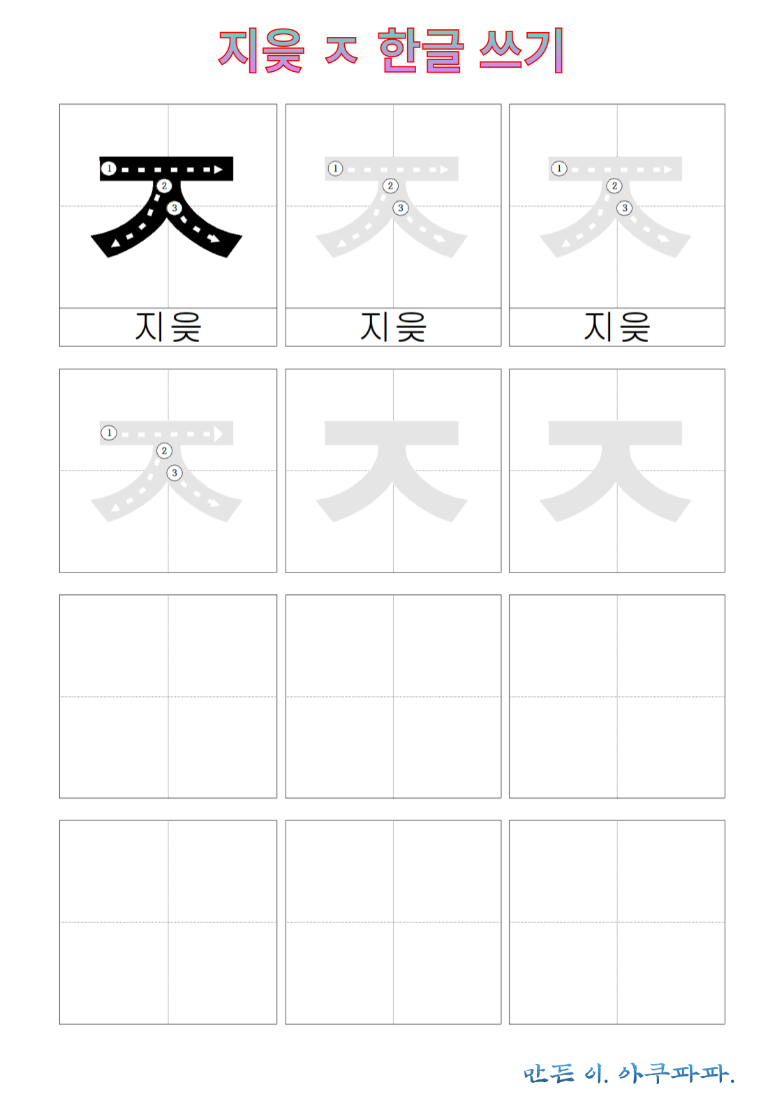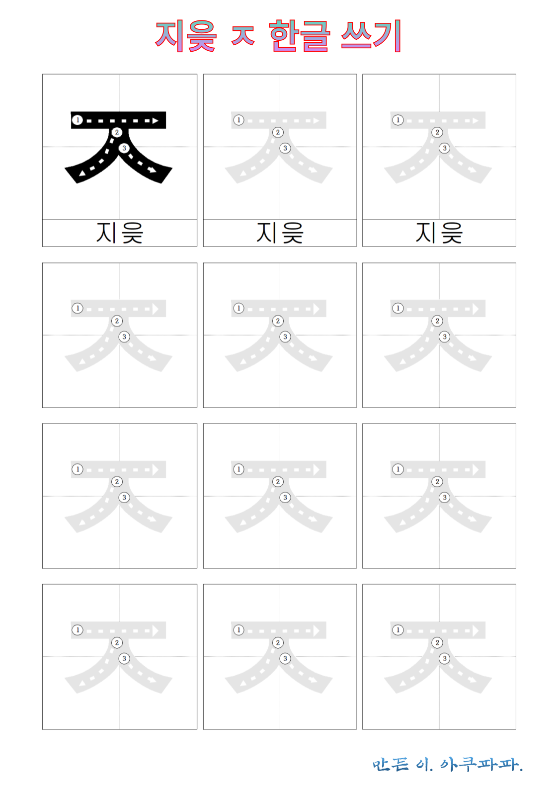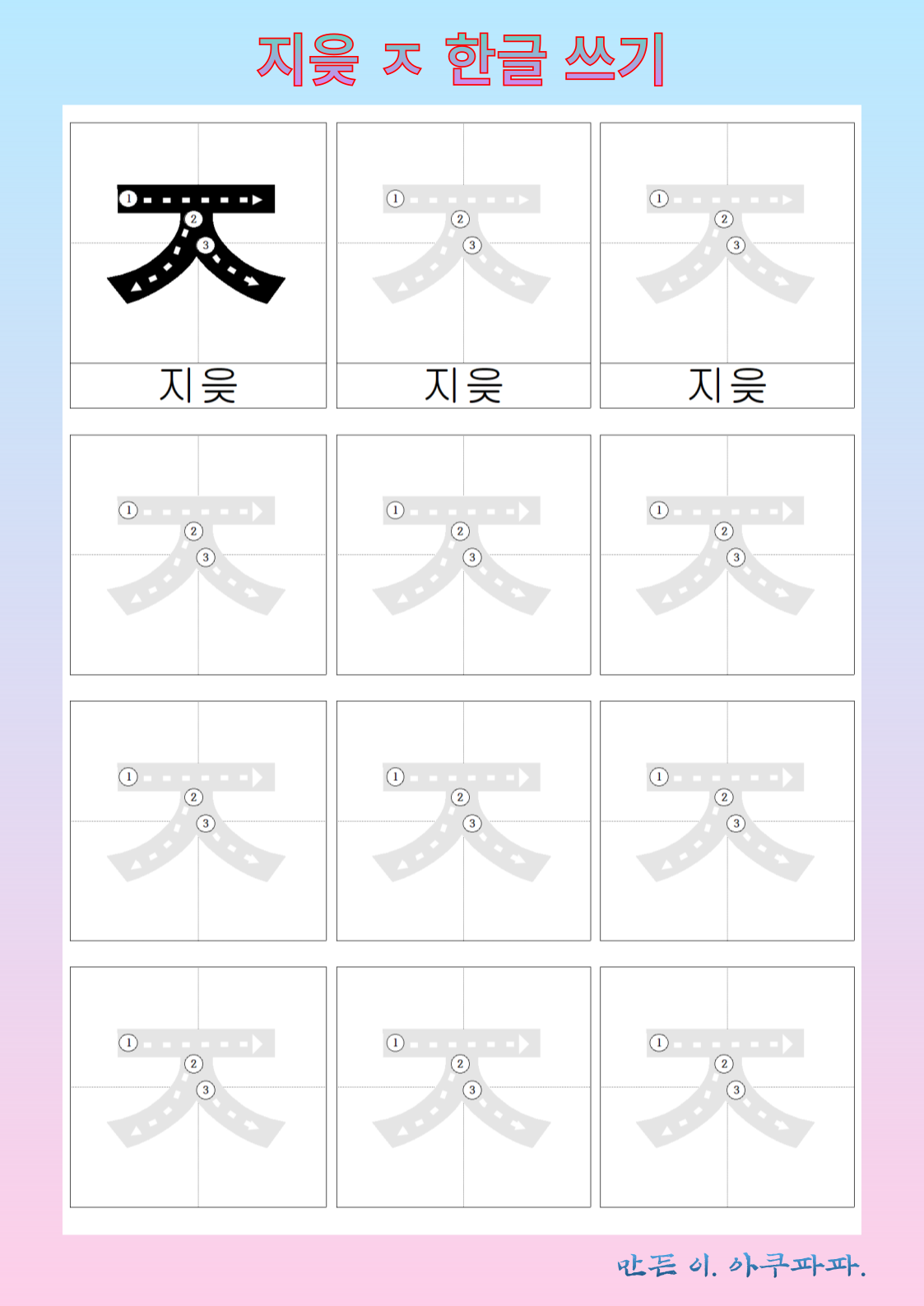 지읒 따라 쓰기