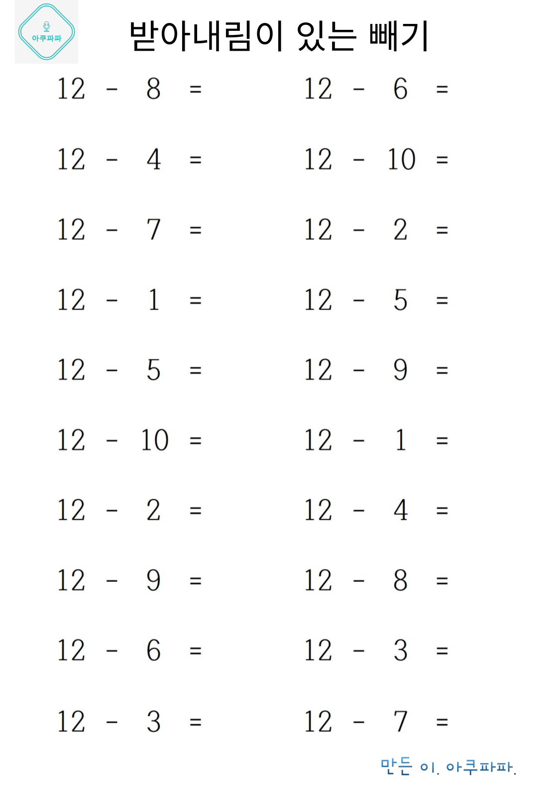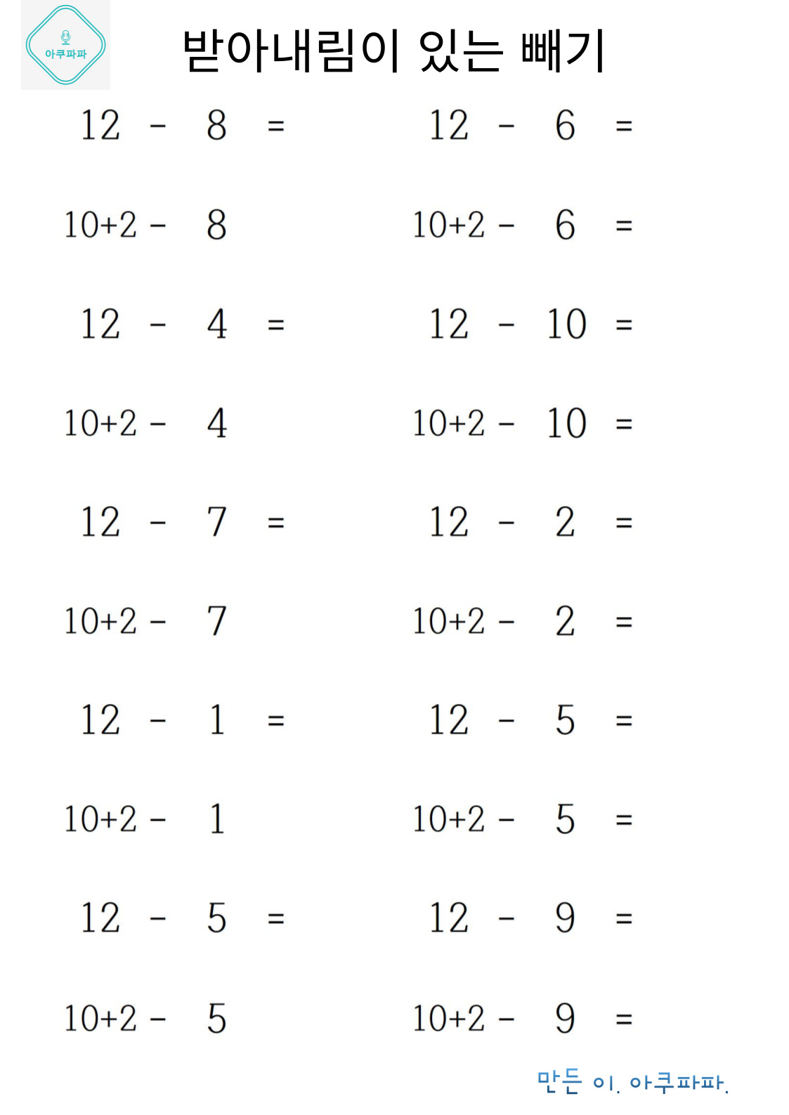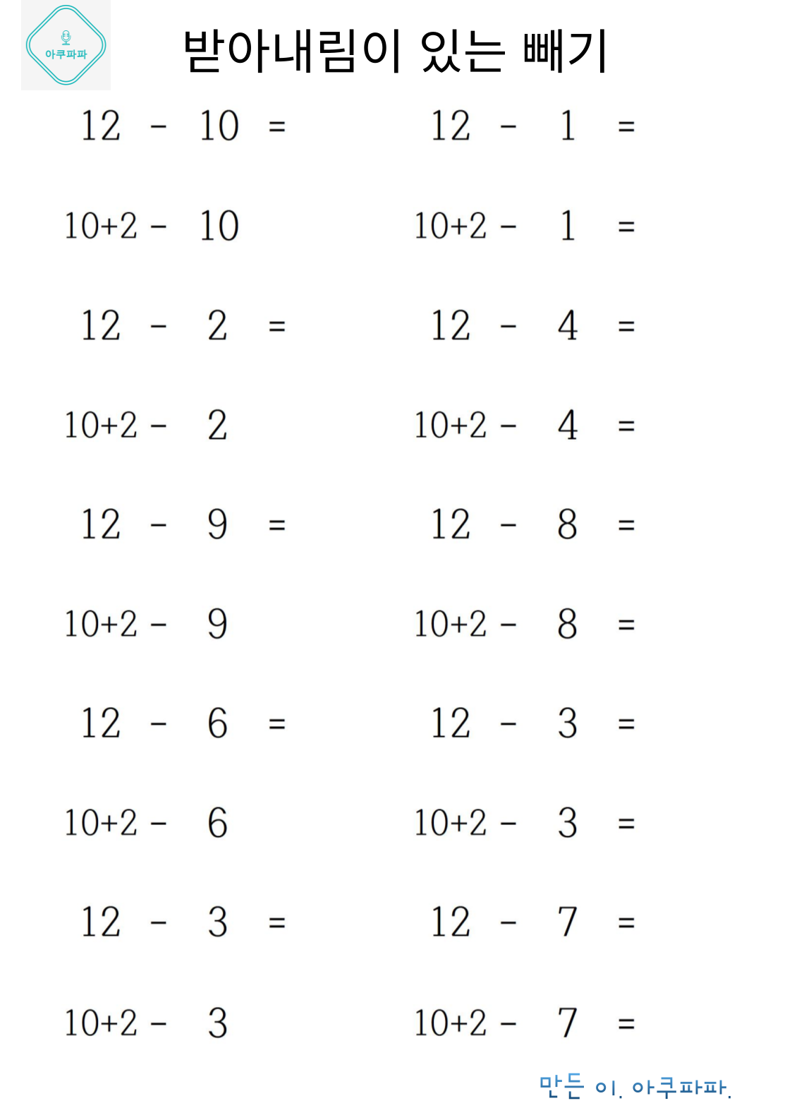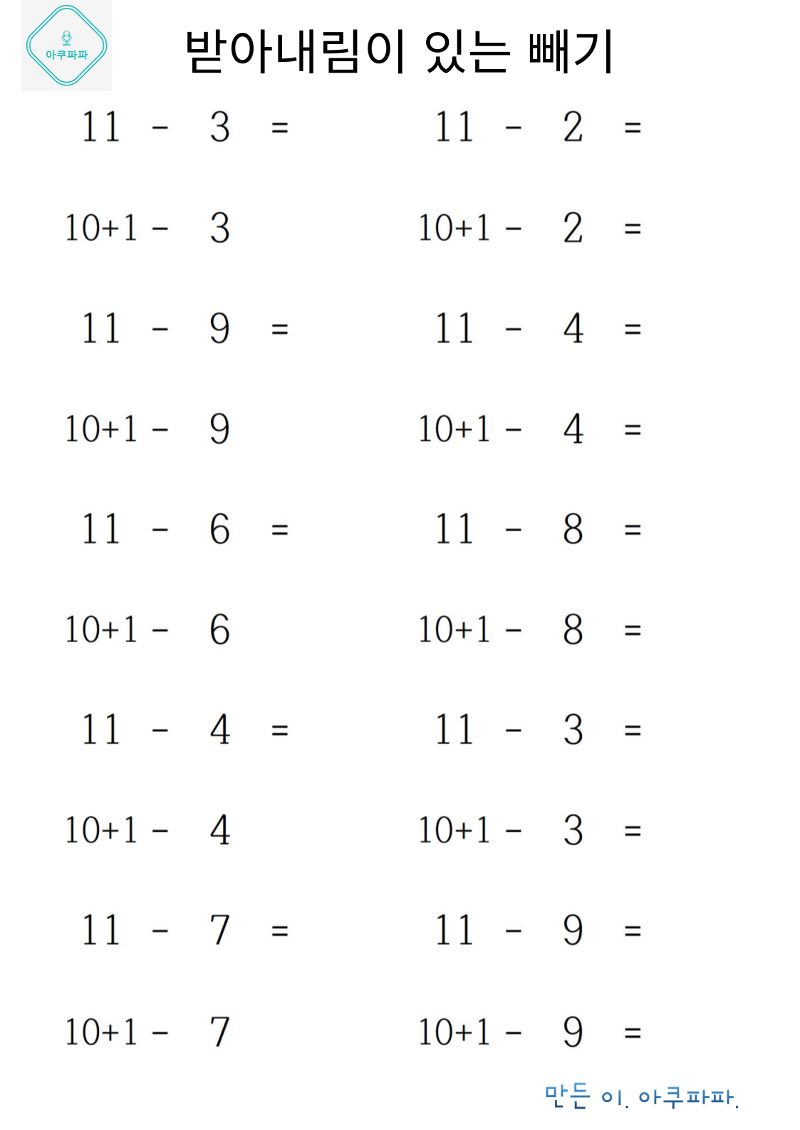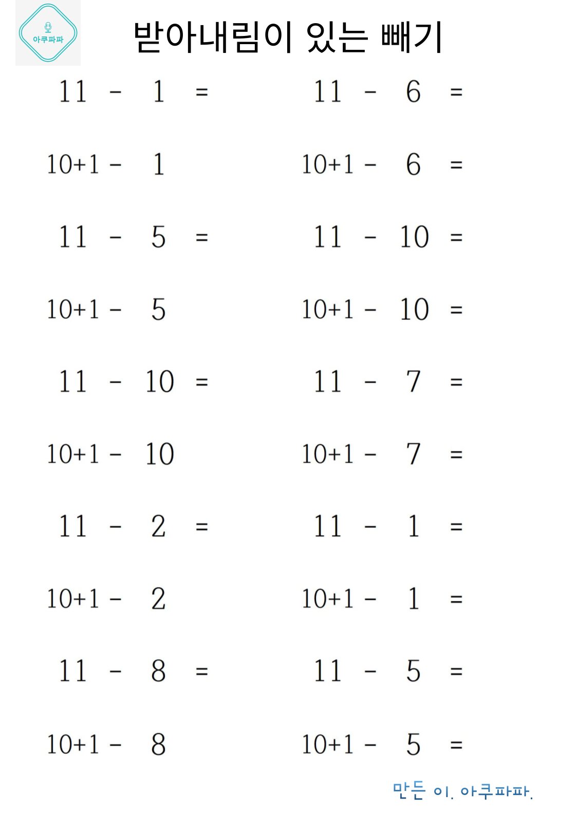 '초등수학 1학년 > 받아올림, 받아내림' 카테고리의 다른 글