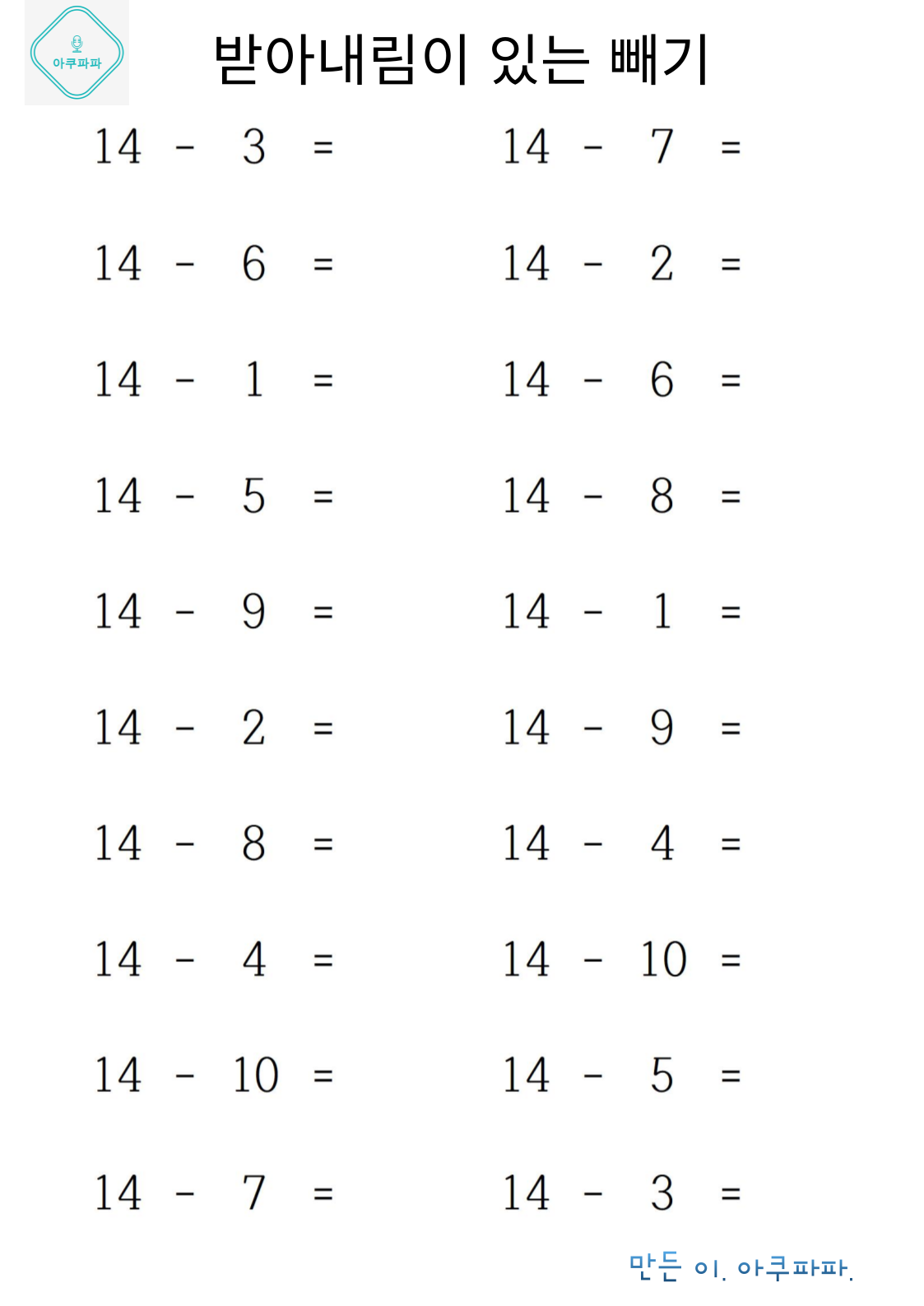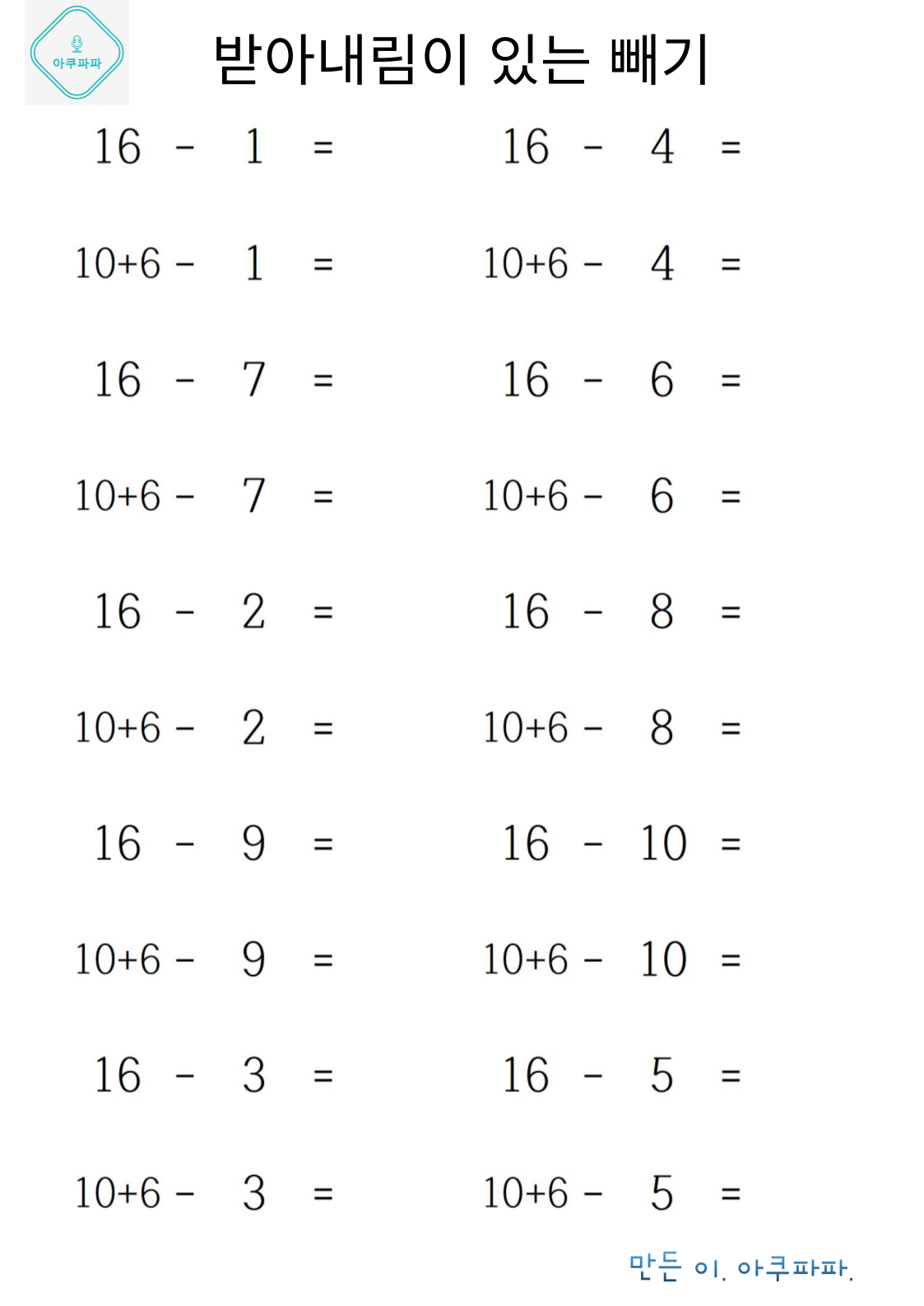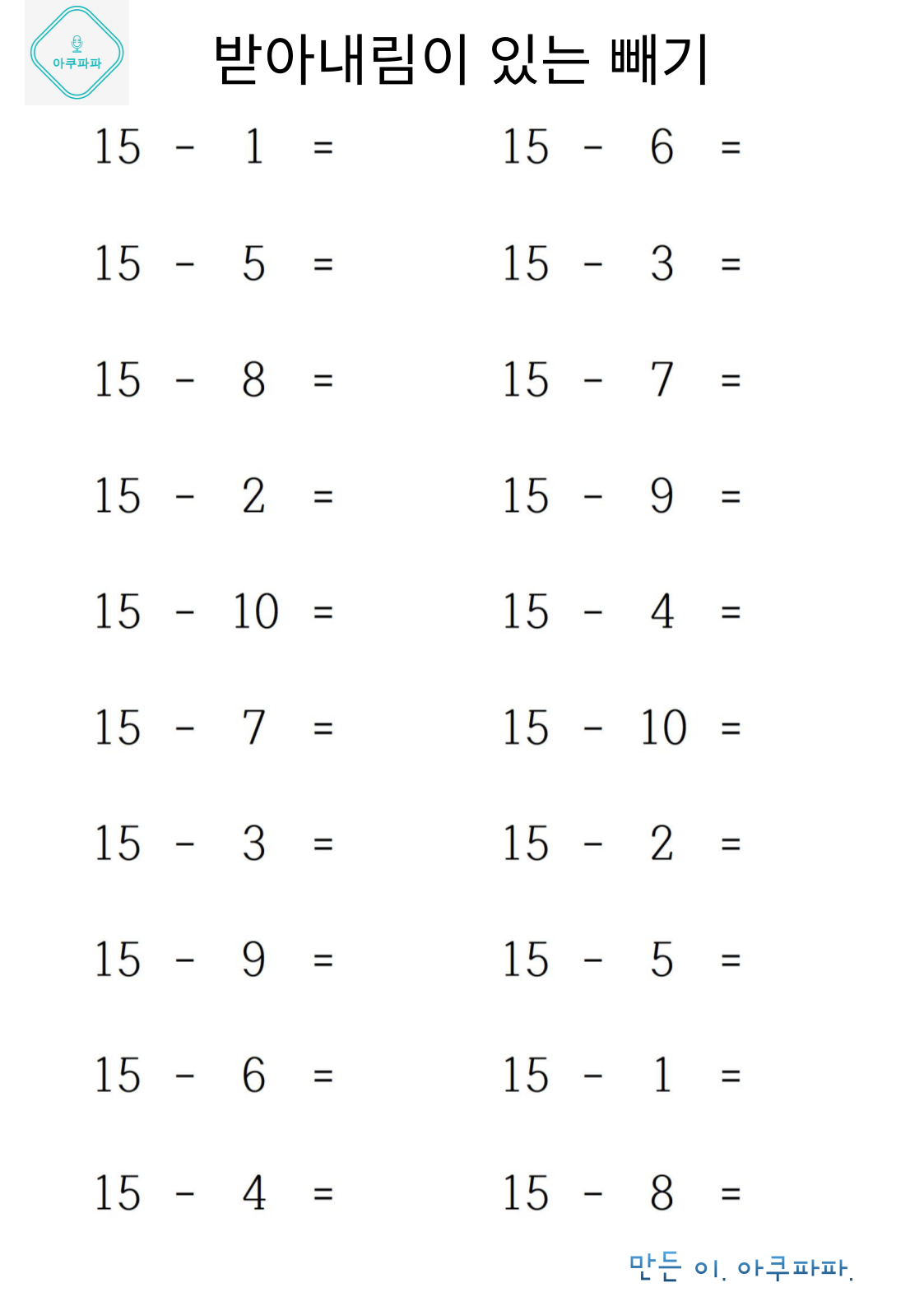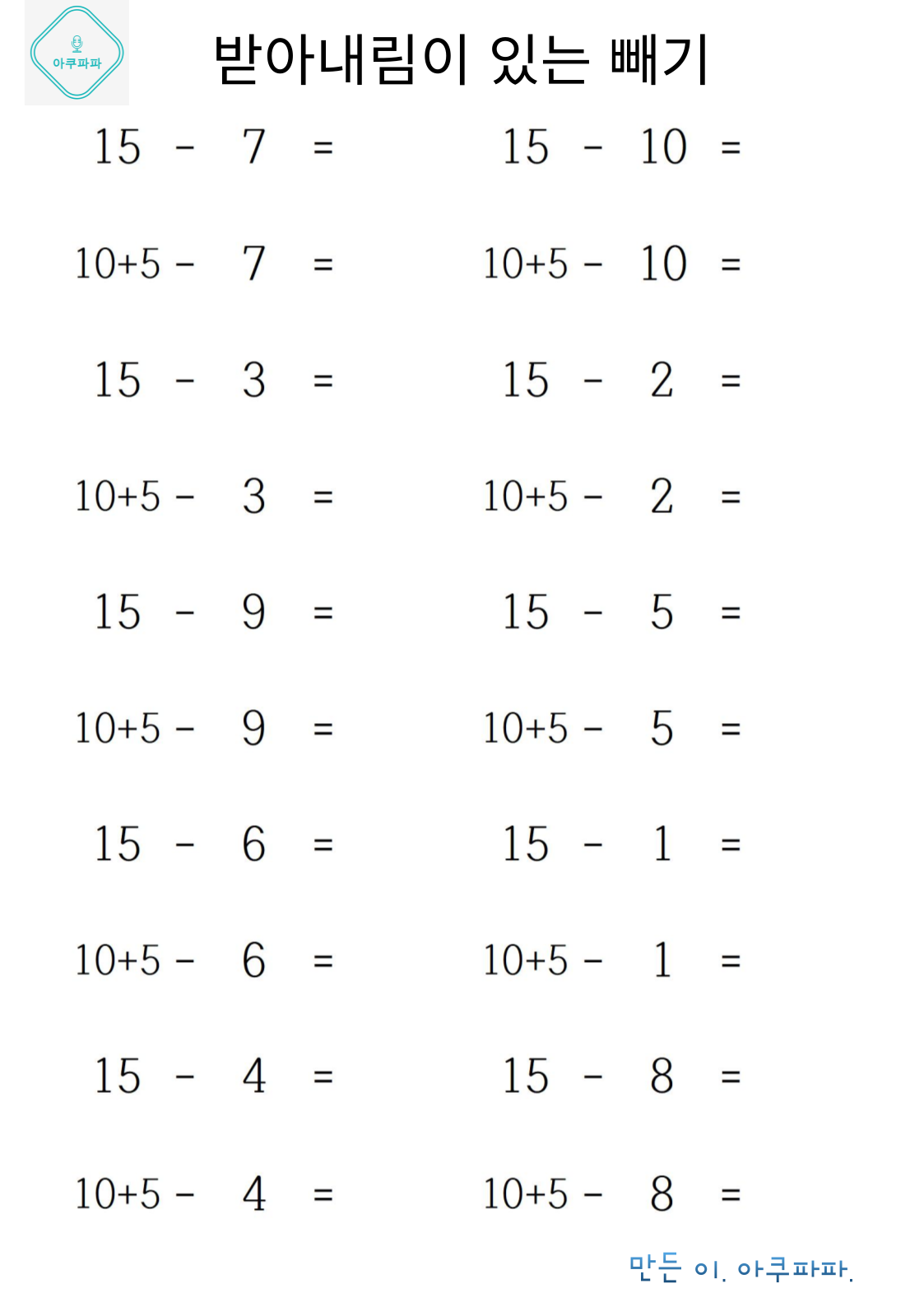 기본 개념을 익히는 차원에서 n=m, n>m 의 숫자도 포함 되어있으니 참고해 주세요. (ex: 15-5, 17-5 등)