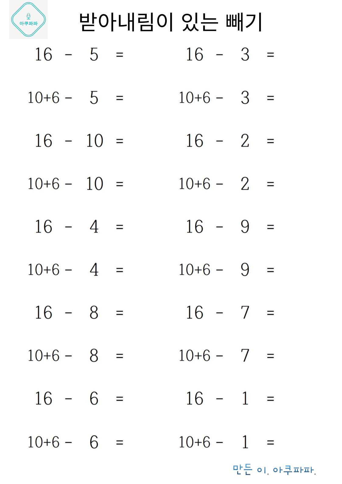 기본 개념을 익히는 차원에서 n=m, n>m 의 숫자도 포함 되어있으니 참고해 주세요. (ex: 15-5, 17-5 등)