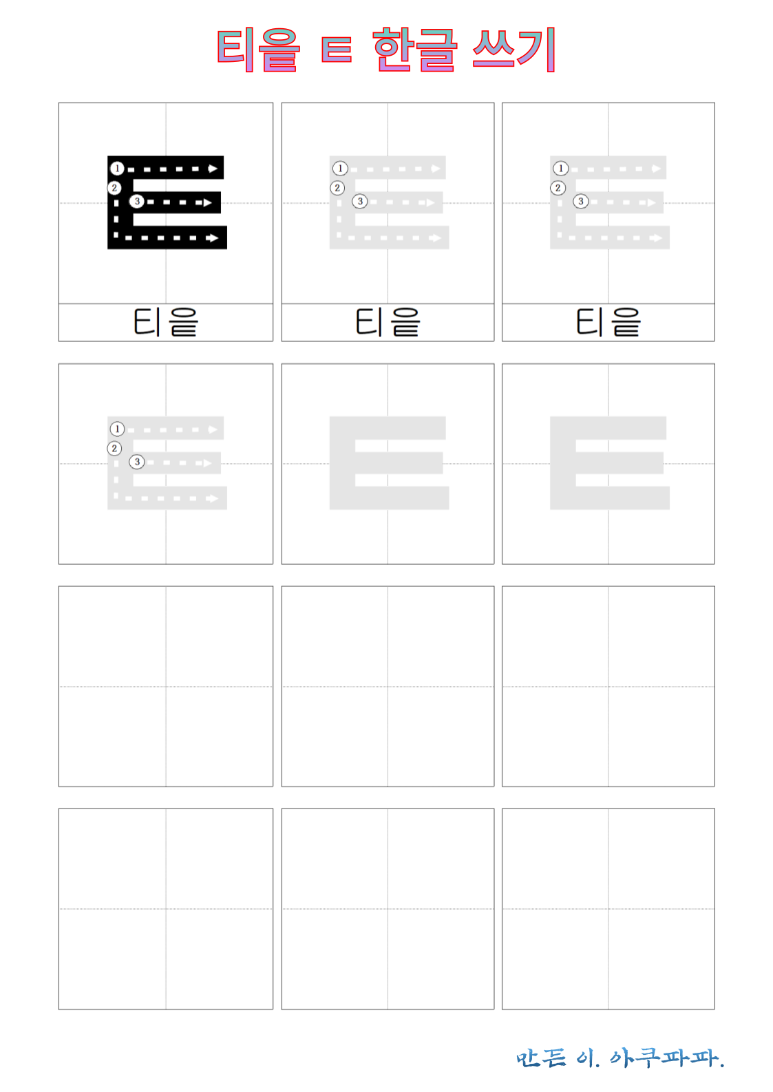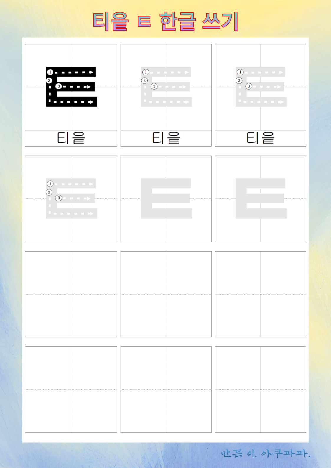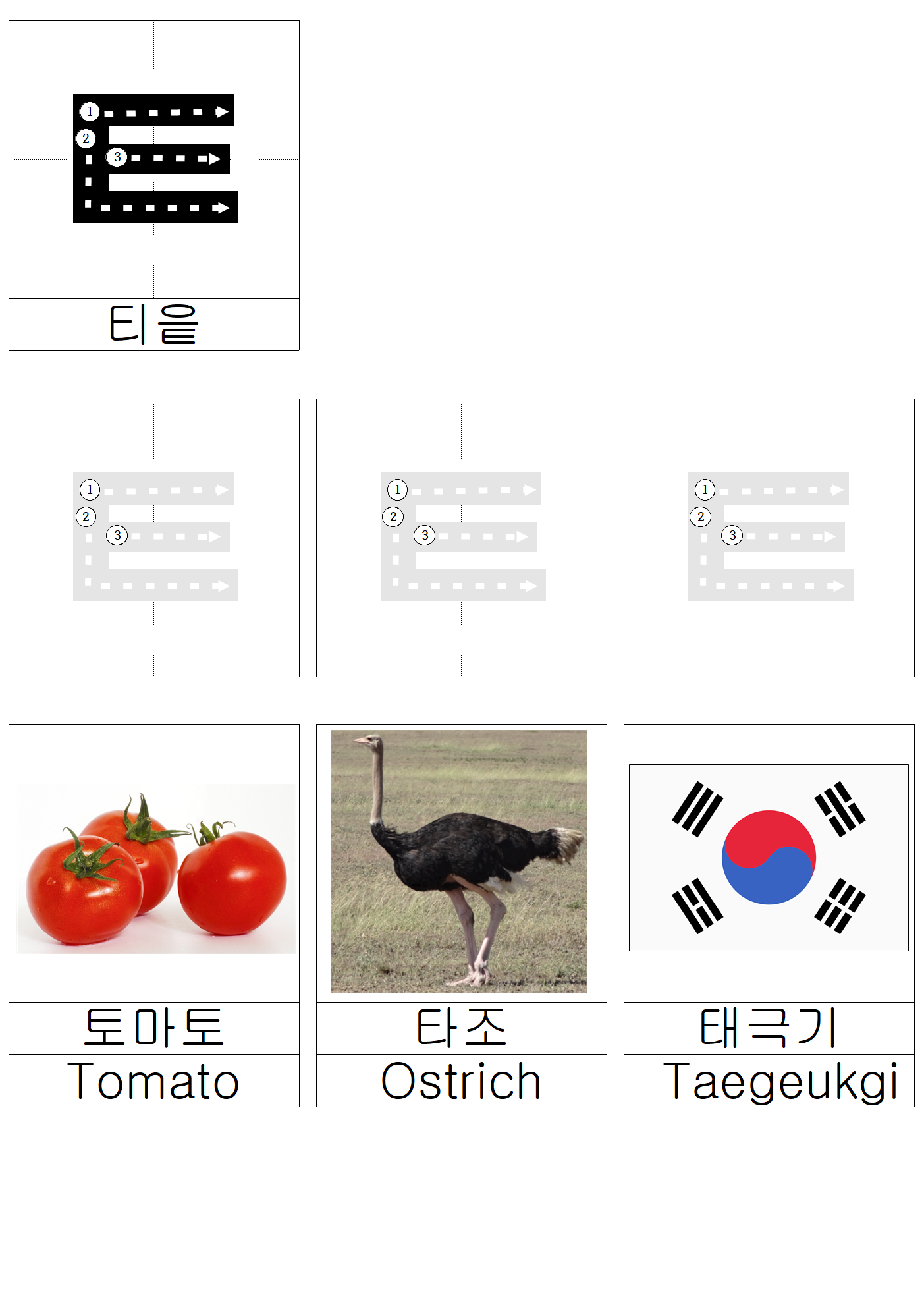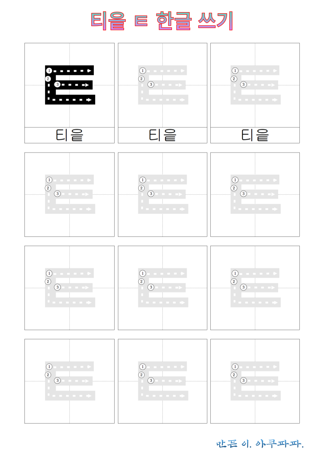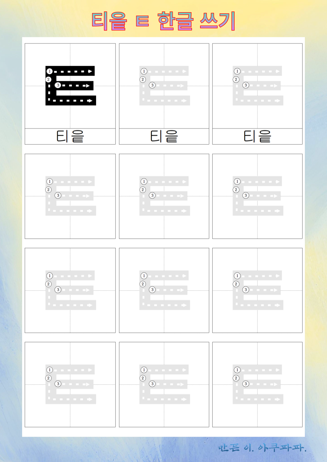 ㅌ 과 모음이 만난 글자 따라 쓰기