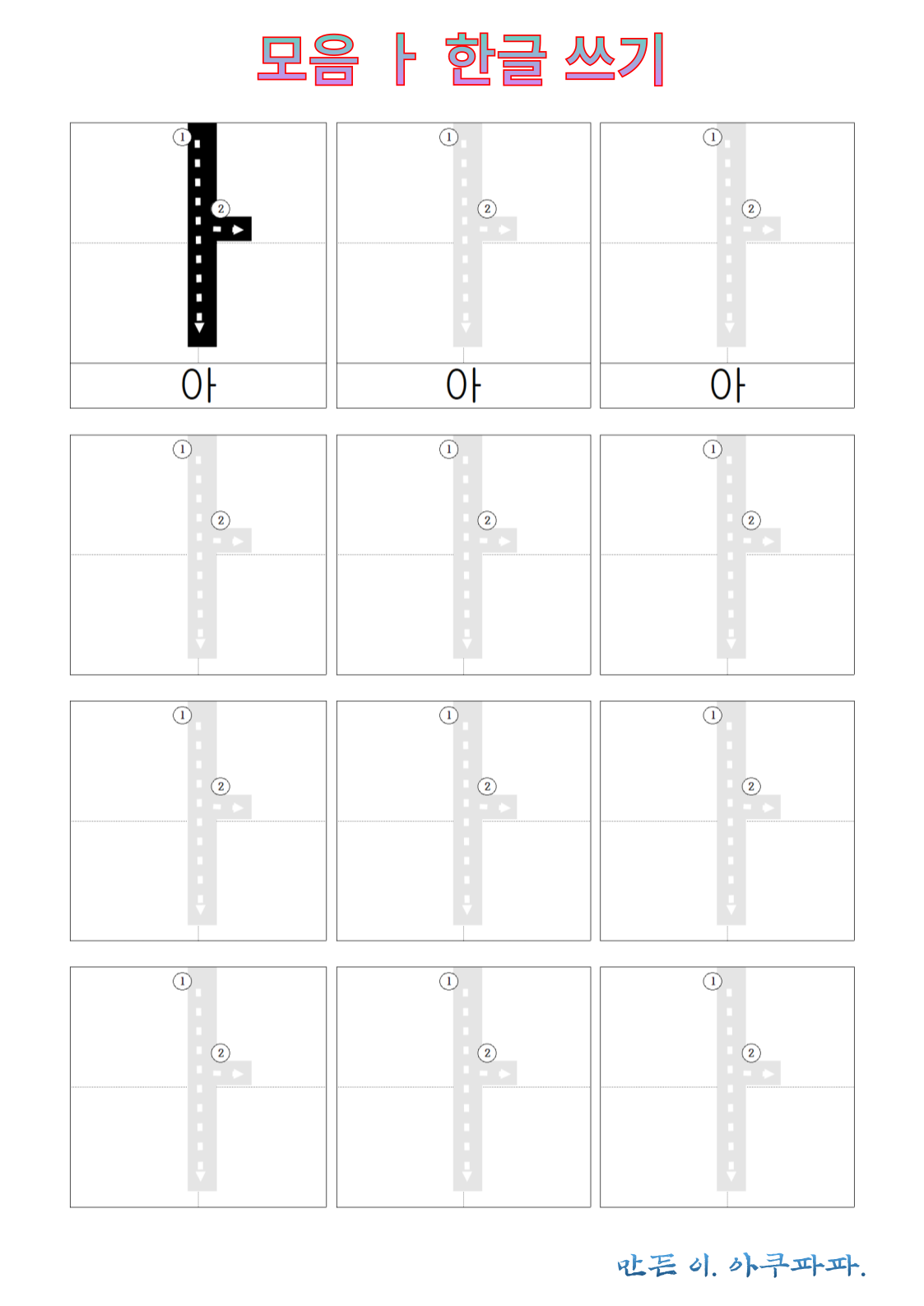 ㅏ 따라 쓰기