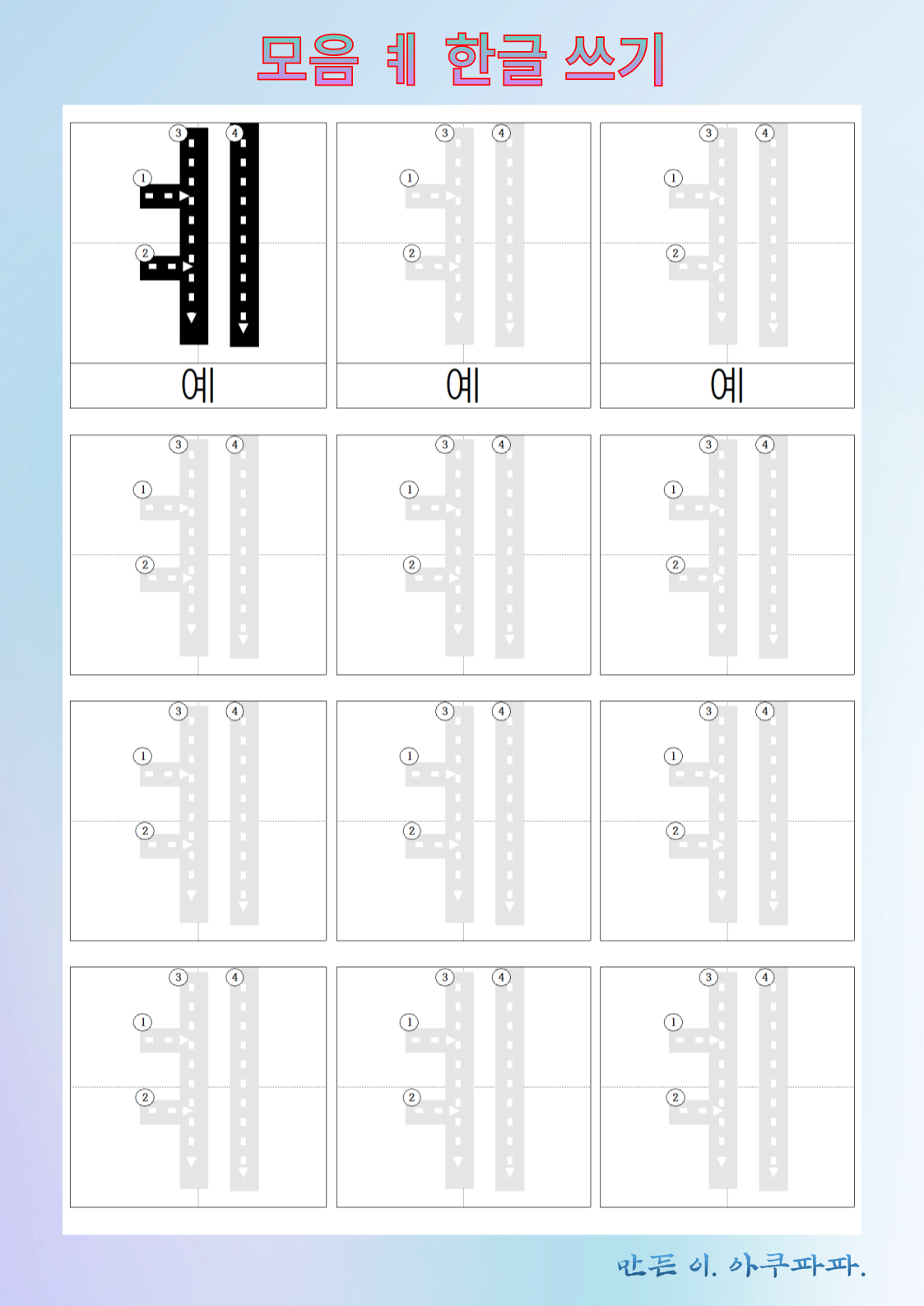 | ㅔ 따라 쓰기 (0) | 2024.04.26 |