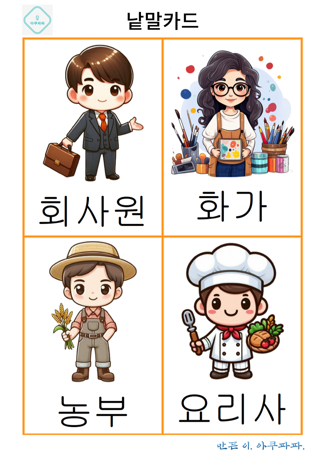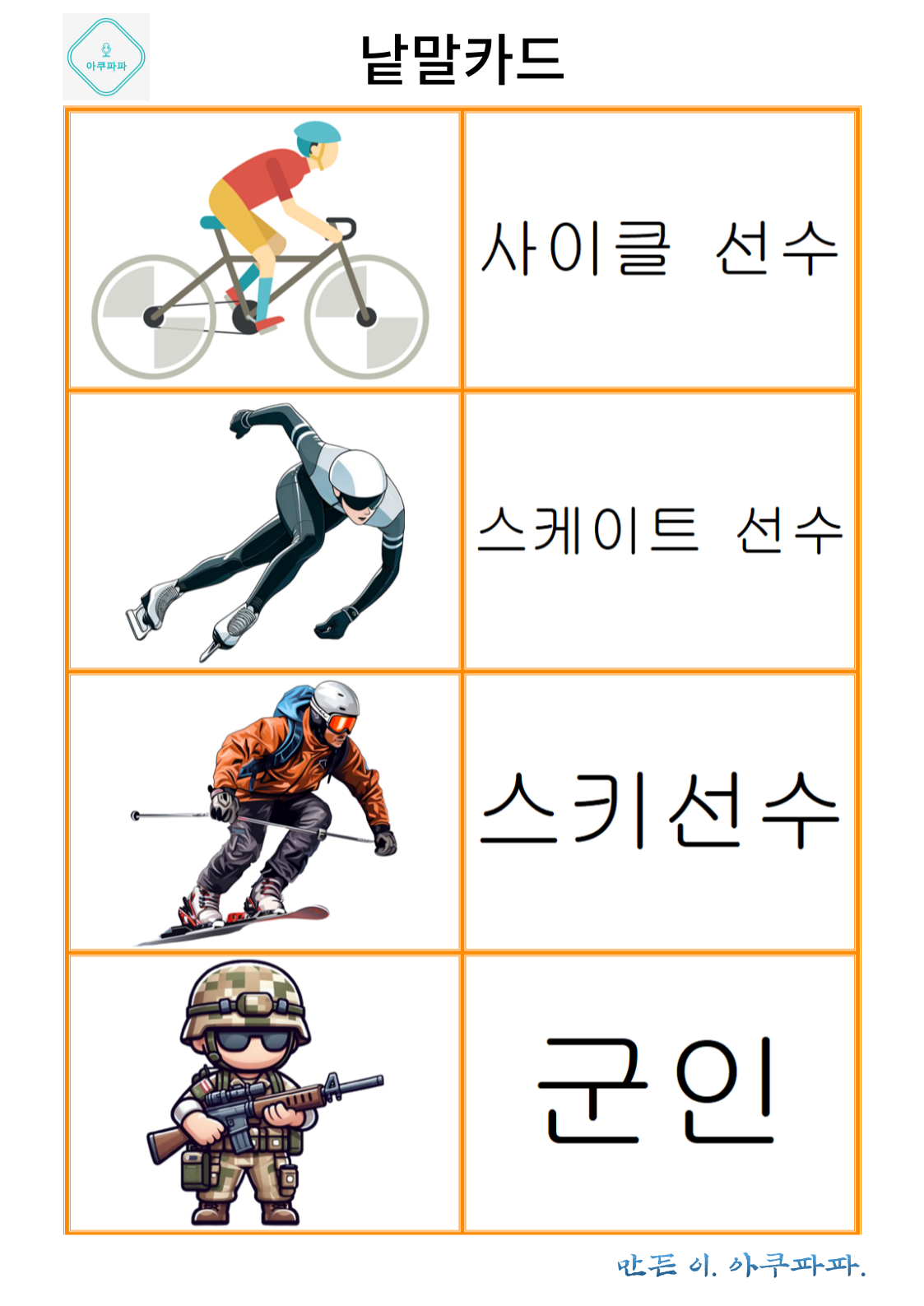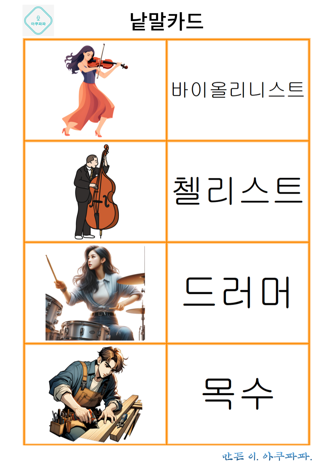 | 낱말 카드 놀이(word card game) - 사람들(People)1 (0) | 2024.04.27 |