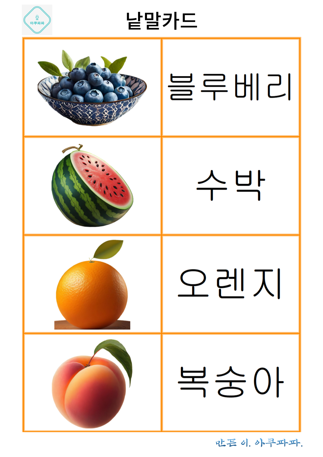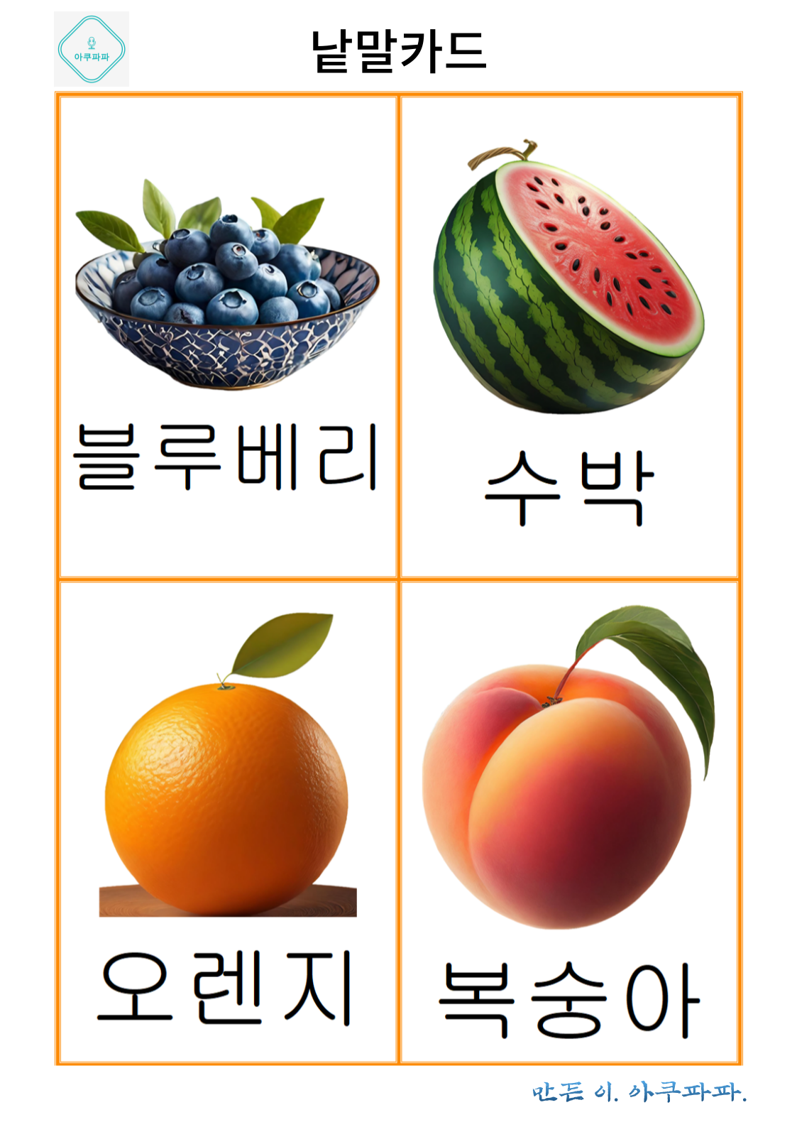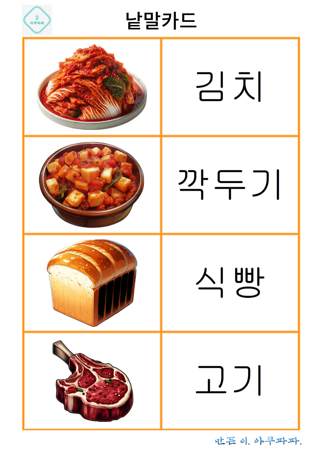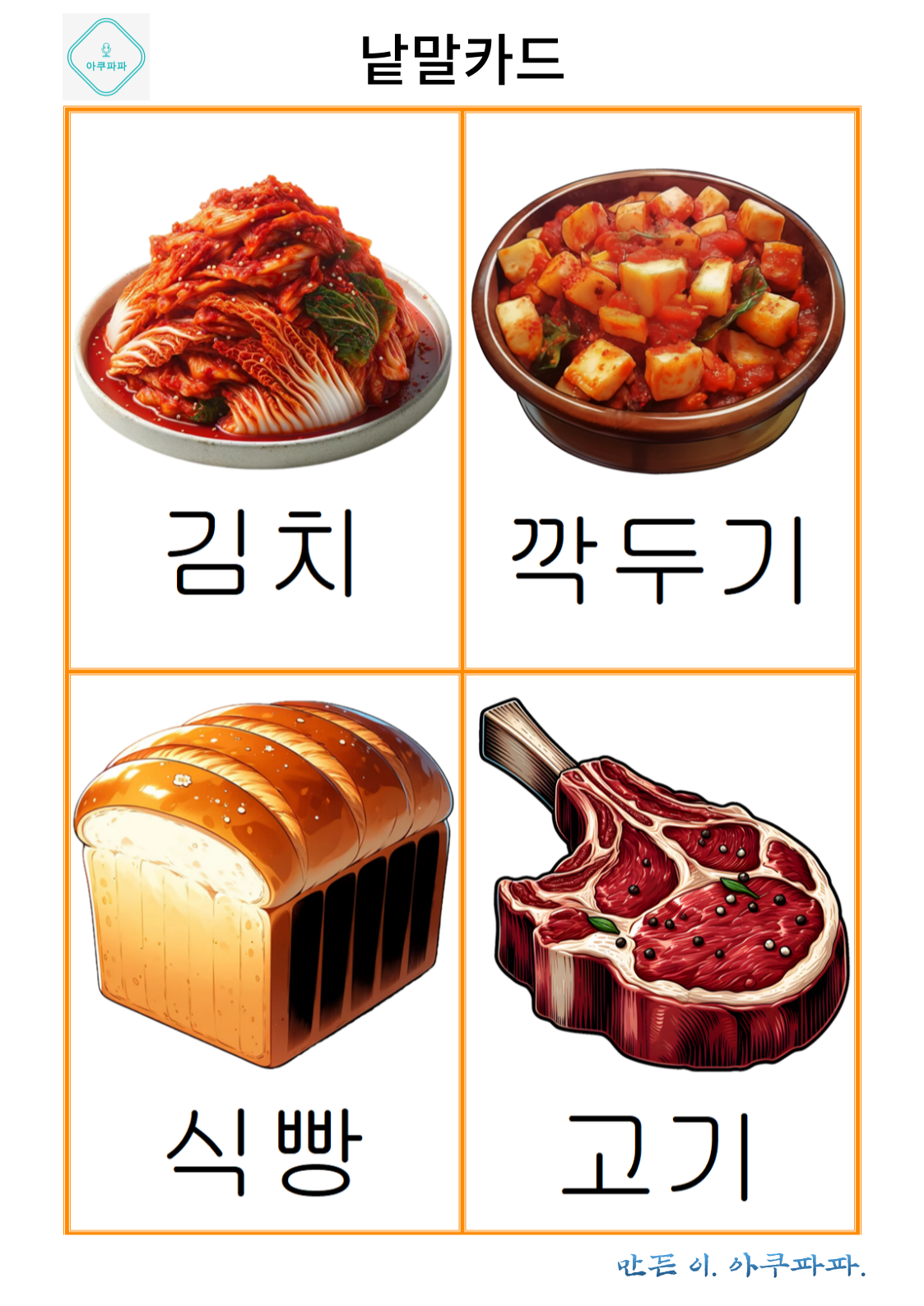 그림과 함께 적혀있는 낱말 카드를 이용해