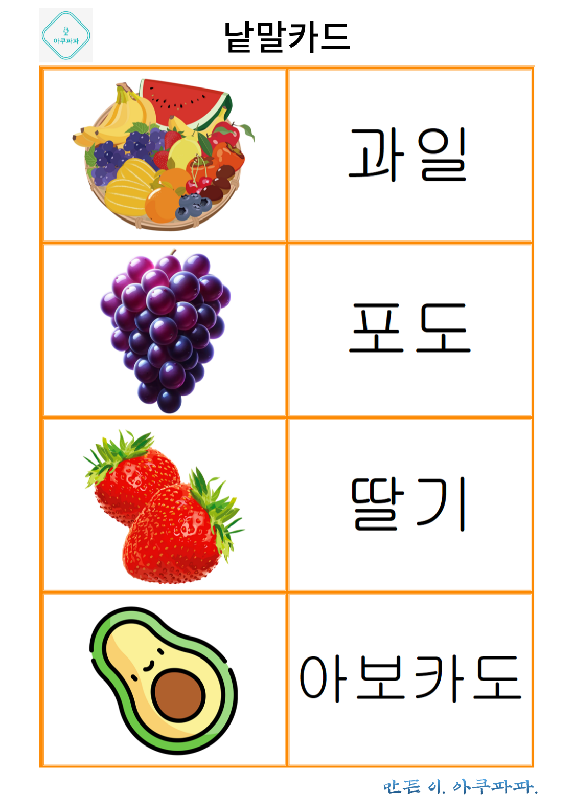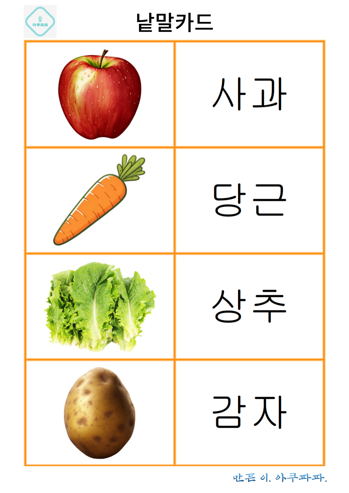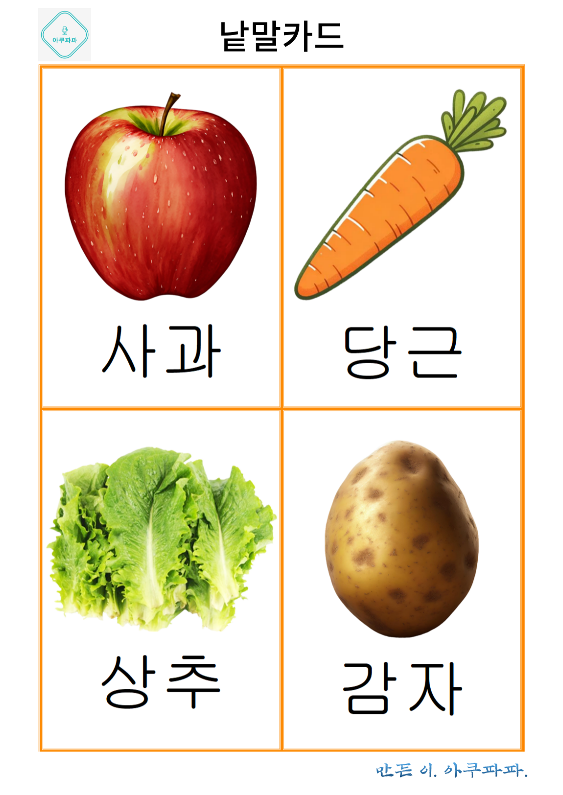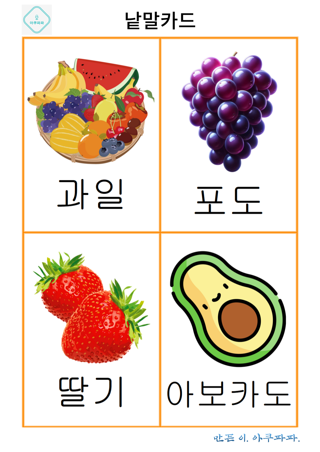 그림과 함께 적혀있는 낱말 카드를 이용해