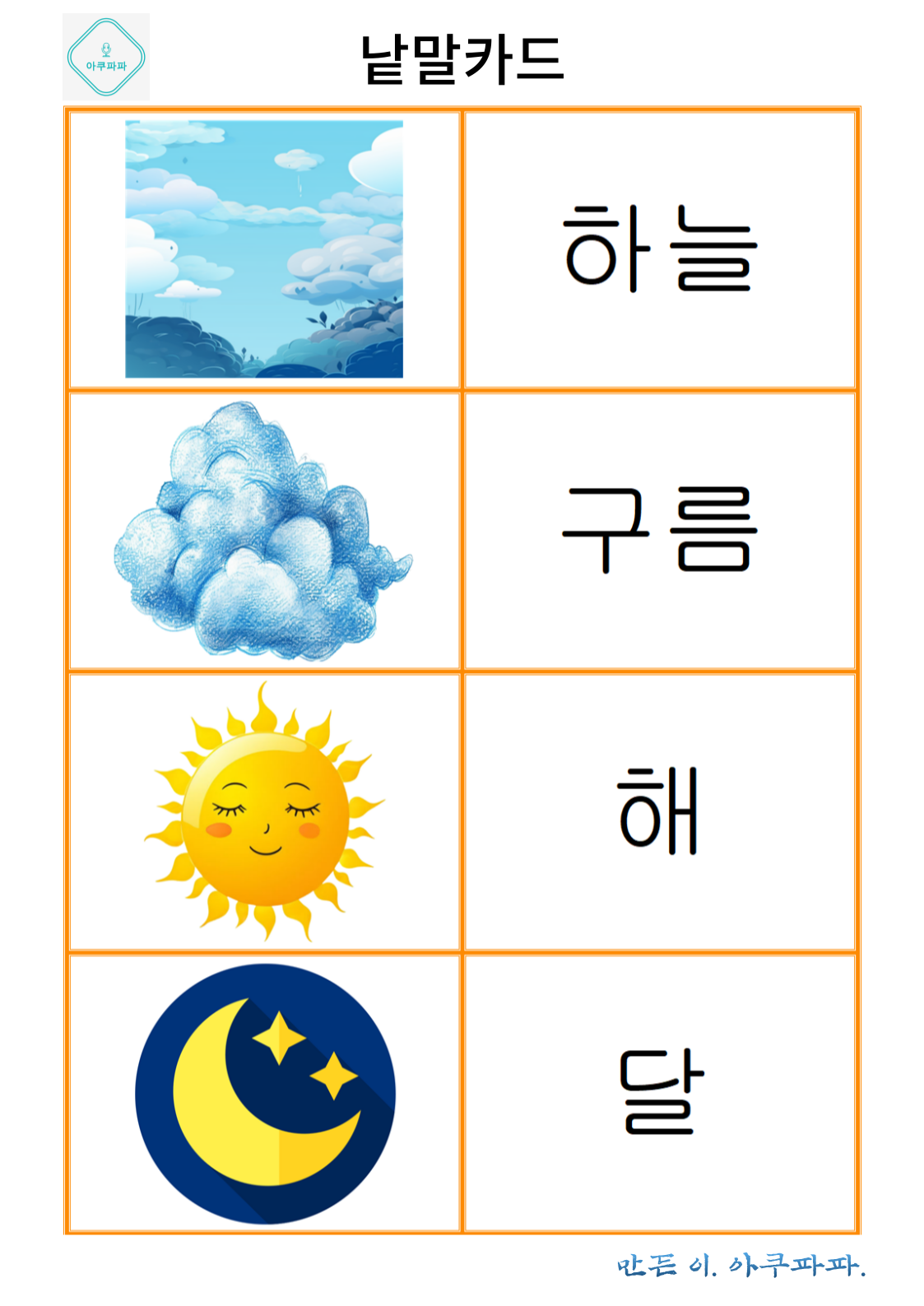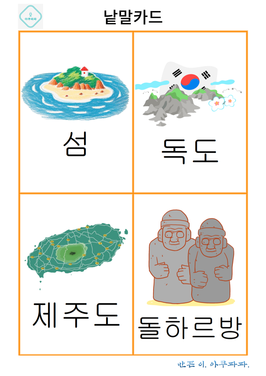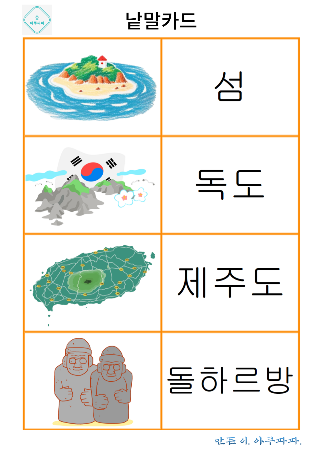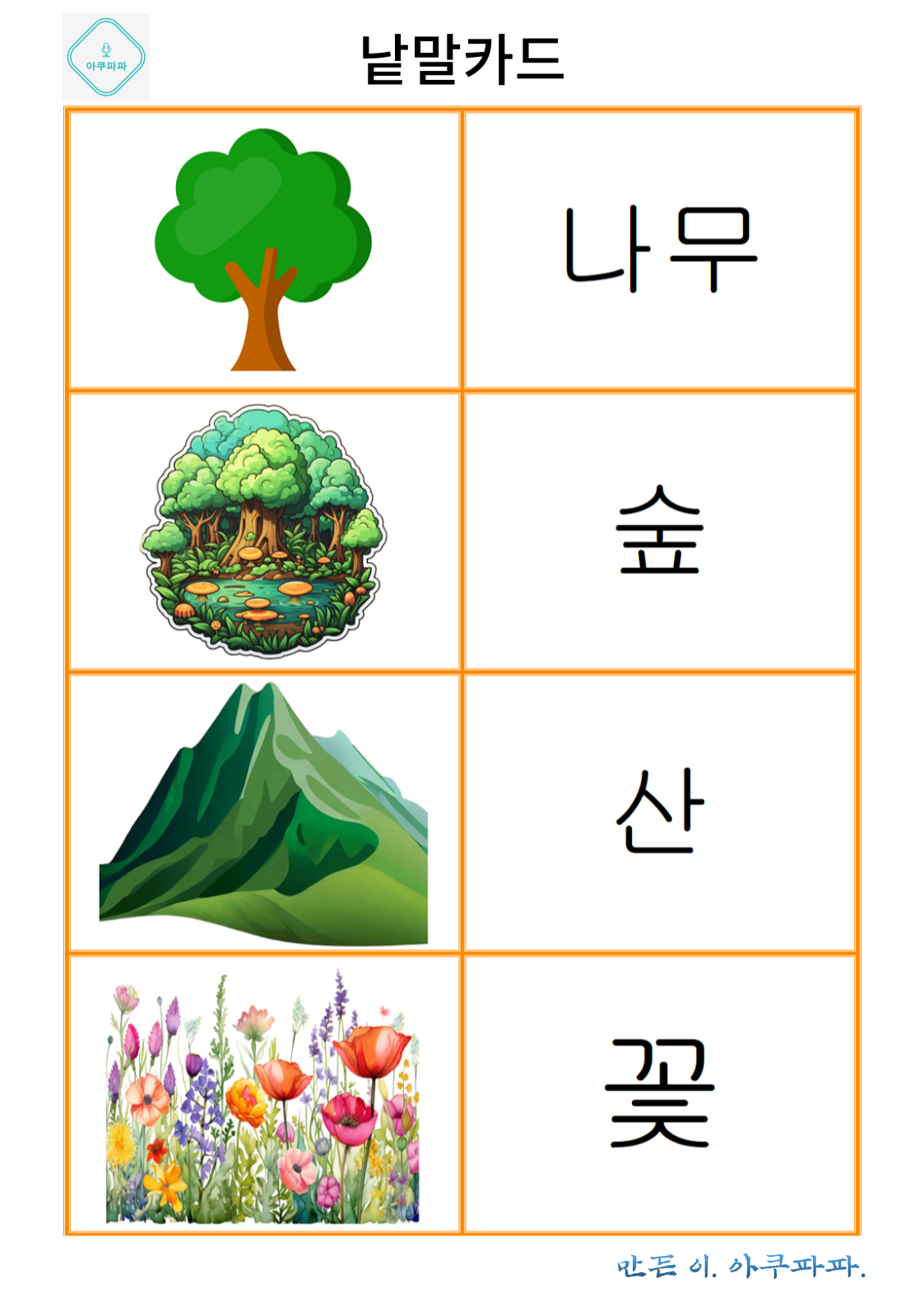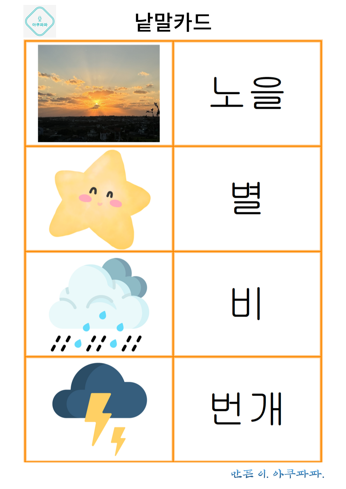 그림과 함께 적혀있는 낱말 카드를 이용해