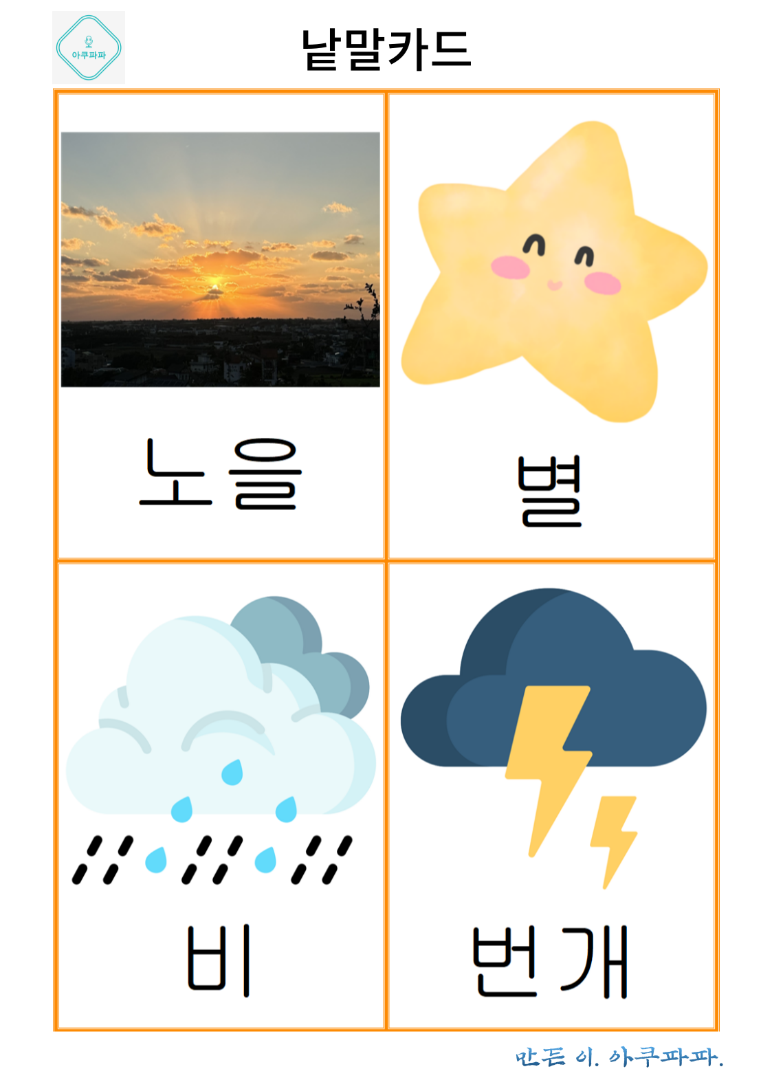| 낱말 카드 놀이(word card game) - 자연(Nature)2 (0) | 2024.04.27 |