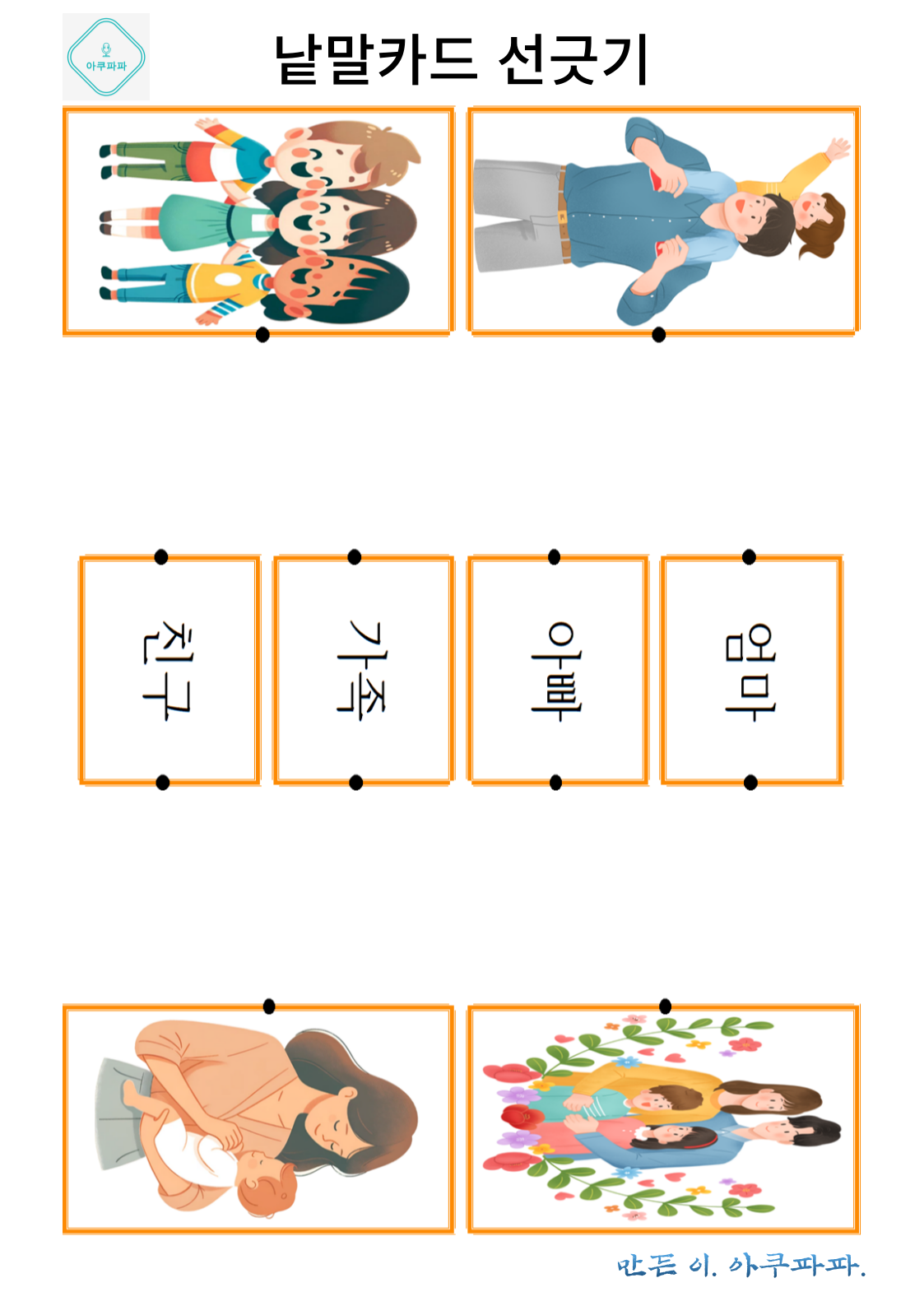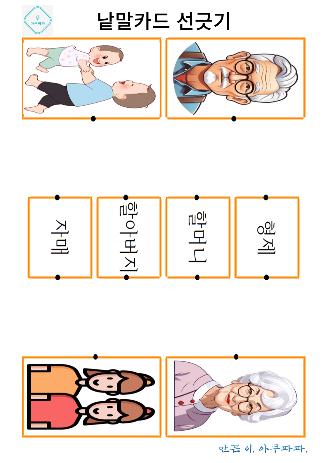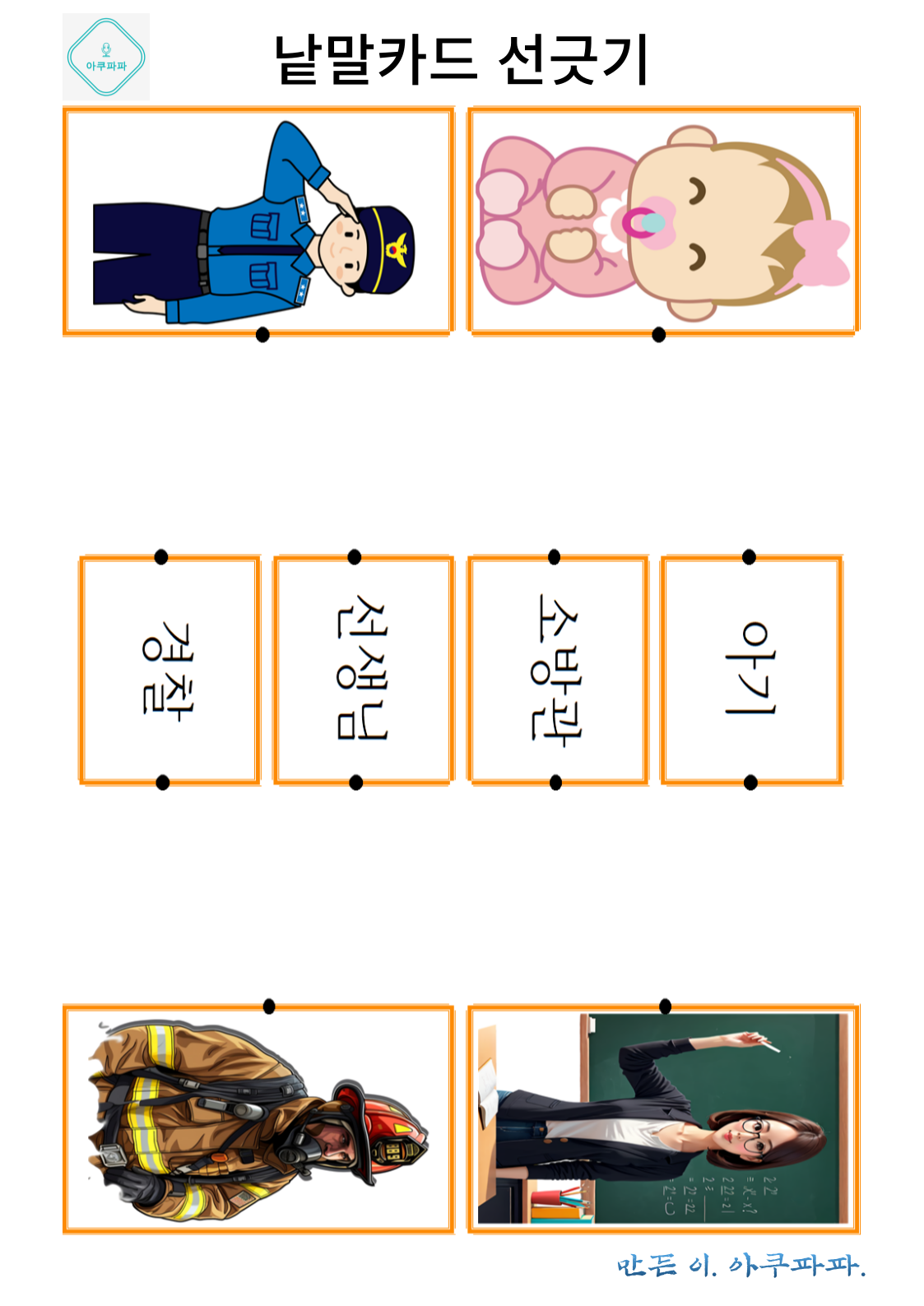 그림으로 배우는 낱말 카드 놀이a picture-learning word card game 안녕하세요. 아쿠파파 입니다. Hello, I'm Acupapa. 그림과 함께 적혀있는 낱말 카드를 이용해 Use the word card that's written with