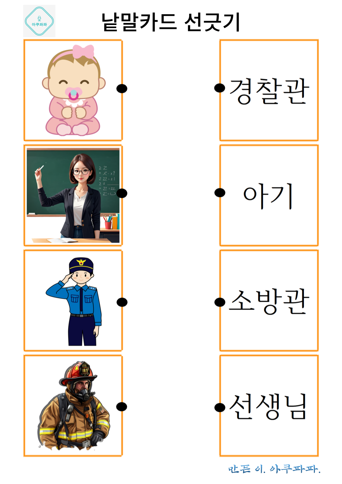 | 낱말카드 선긋기(Drawing a line of word cards) - 사람들(People) 2 (0) | 2024.05.03 |