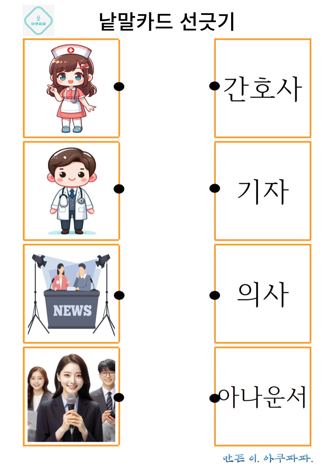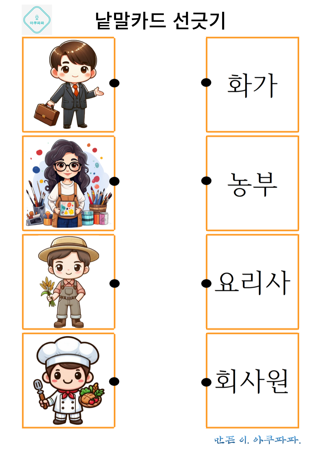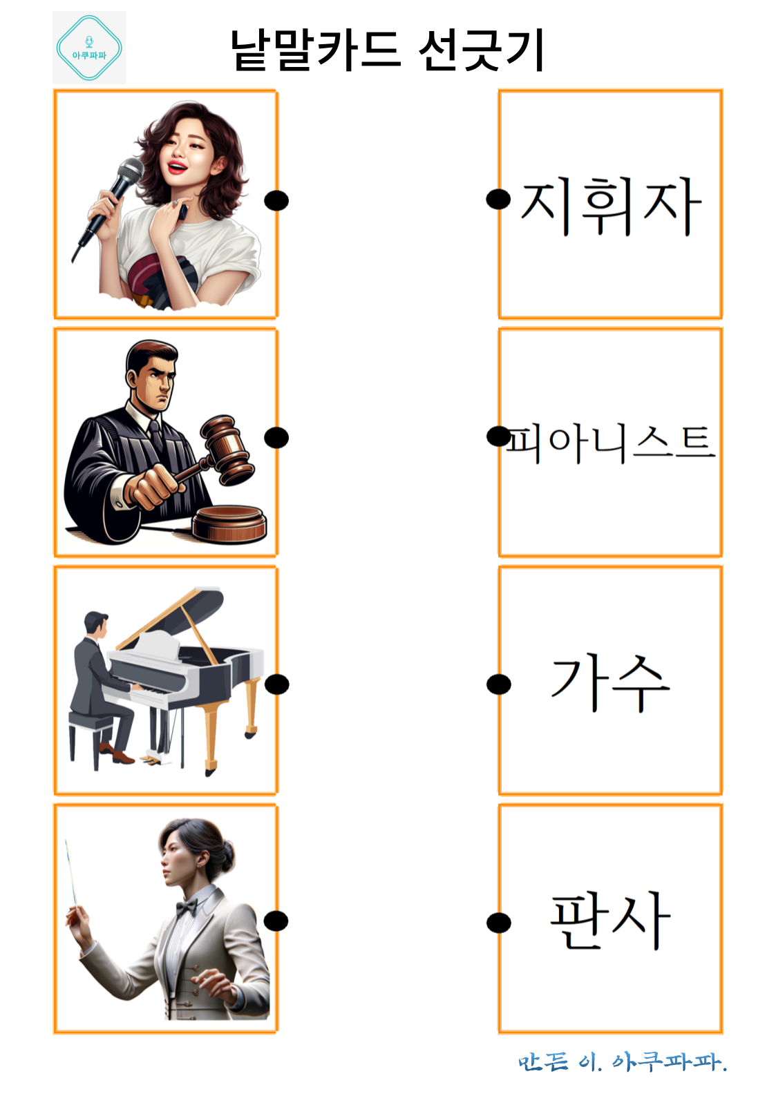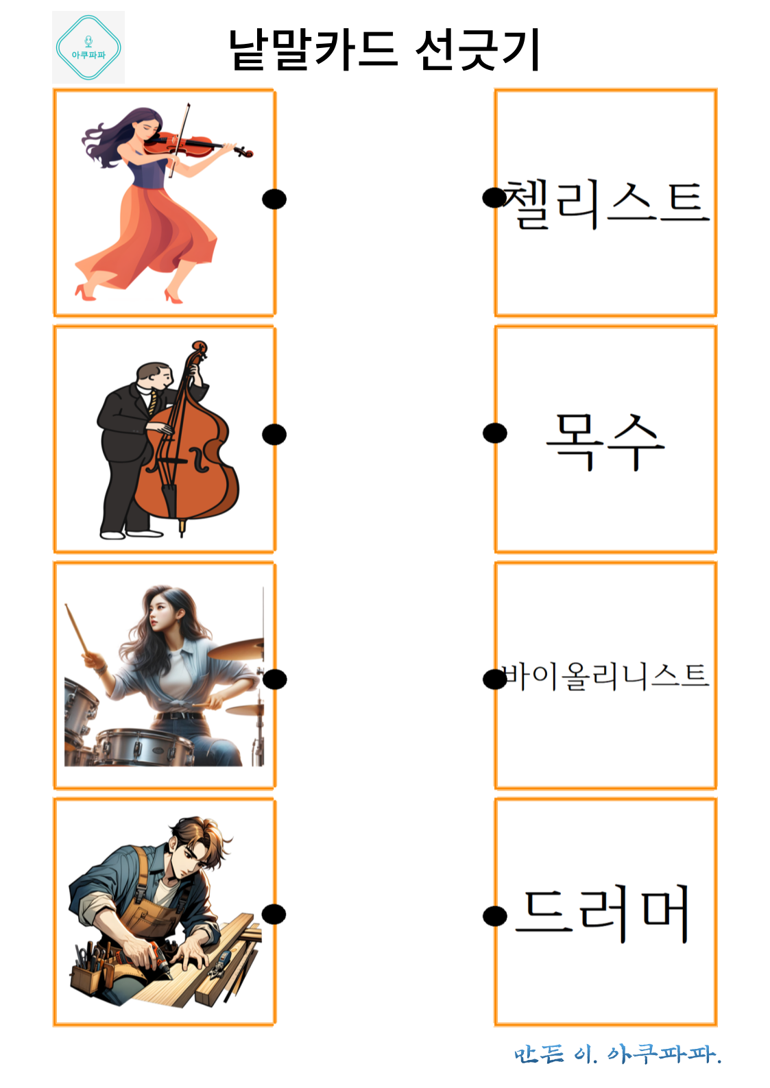 | 낱말카드 선긋기(Drawing a line of word cards) - 사람들(People) 1 (0) | 2024.05.03 |