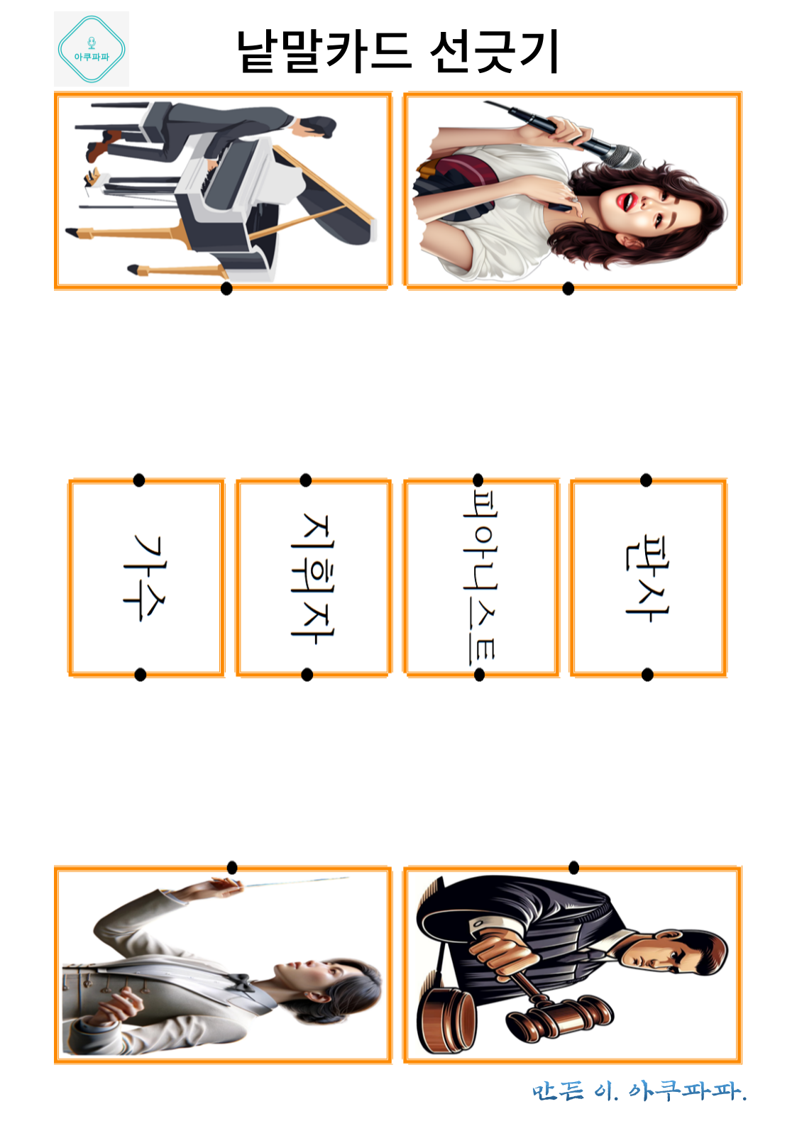 그림으로 배우는 낱말 카드 놀이a picture-learning word card game 안녕하세요. 아쿠파파 입니다. Hello, I'm Acupapa. 그림과 함께 적혀있는 낱말 카드를 이용해 Use the word card that's written with