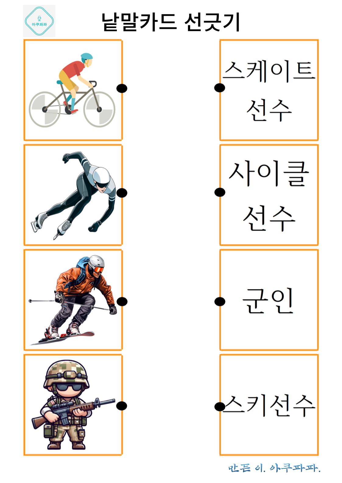 | 낱말카드 선긋기(Drawing a line of word cards) - 사람들(People) 1 (0) | 2024.05.03 |