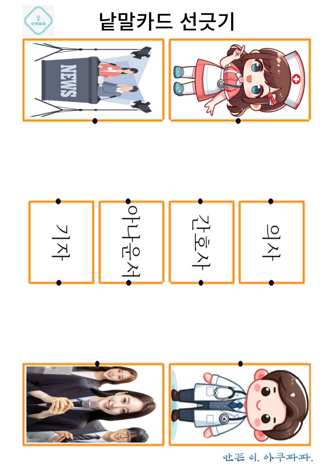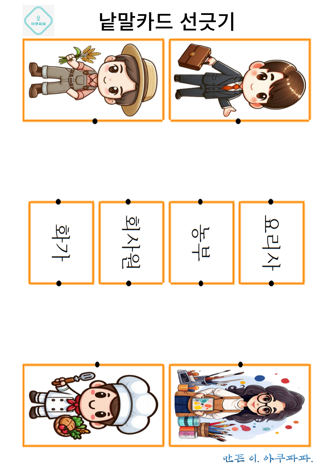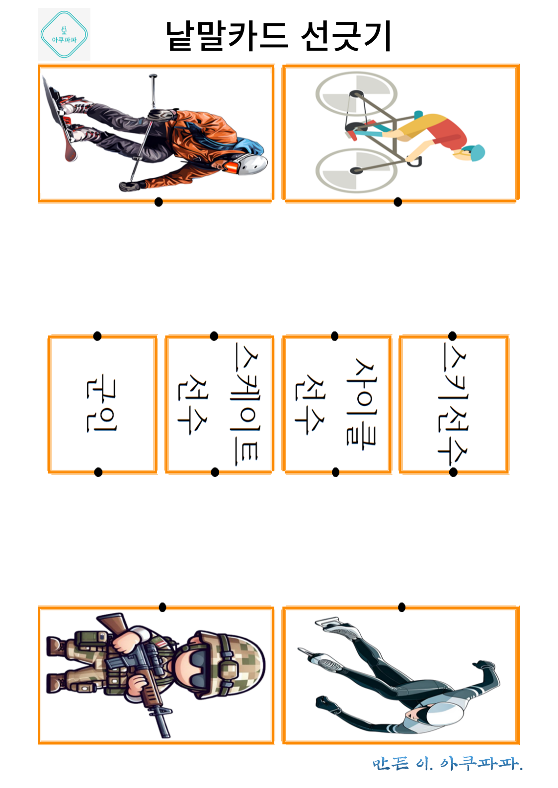 그림으로 배우는 낱말 카드 놀이a picture-learning word card game 안녕하세요. 아쿠파파 입니다. Hello, I'm Acupapa. 그림과 함께 적혀있는 낱말 카드를 이용해 Use the word card that's written with