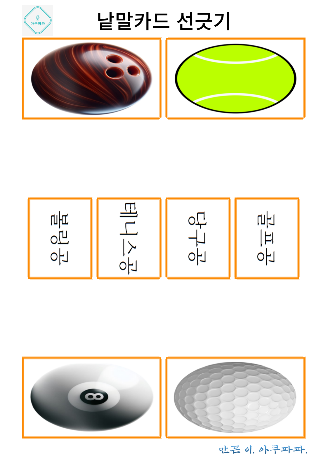 그림으로 배우는 낱말 카드 놀이 a picture-learning word card game 안녕하세요. 아쿠파파 입니다. Hello, I'm Acupapa. 그림과 함께 적혀있는 낱말 카드를 이용해 Use the word card that's written wi