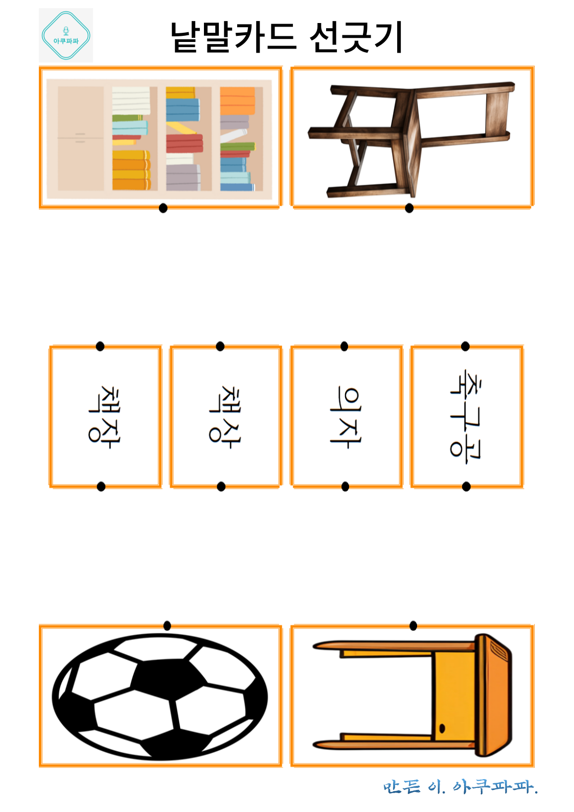 이번엔 지난번 배웠던 낱말카드의 그림과 단어를 서로 알맞은 것끼리