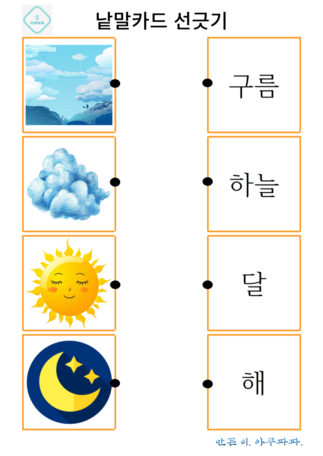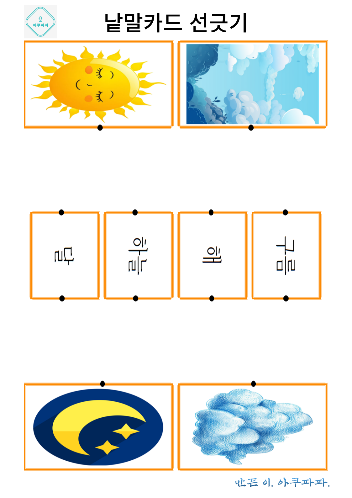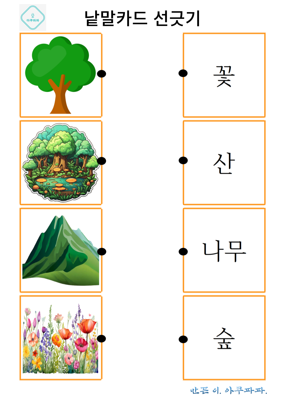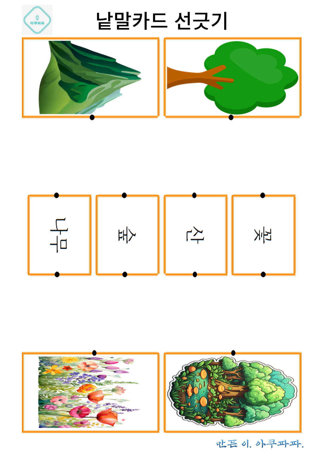 그림으로 배우는 낱말 카드 놀이 a picture-learning word card game안녕하세요. 아쿠파파 입니다. Hello, I'm Acupapa. 그림과 함께 적혀있는 낱말 카드를 이용해 Use the word card that's written wi