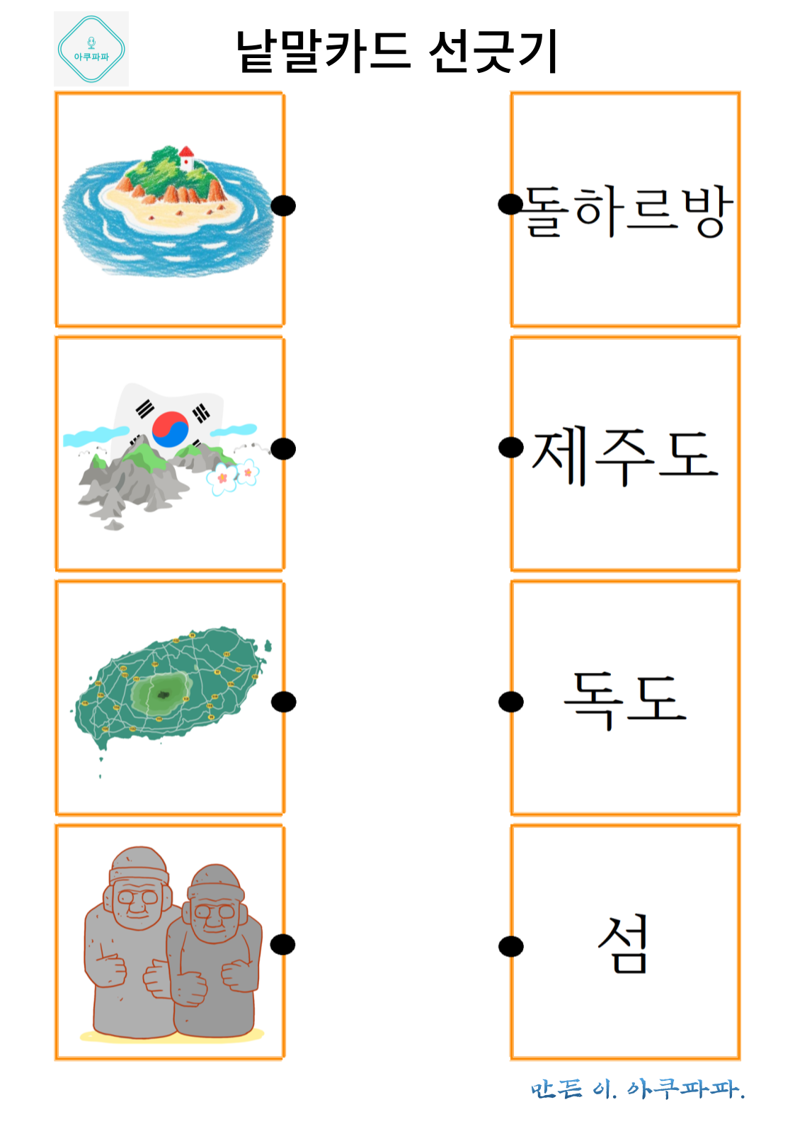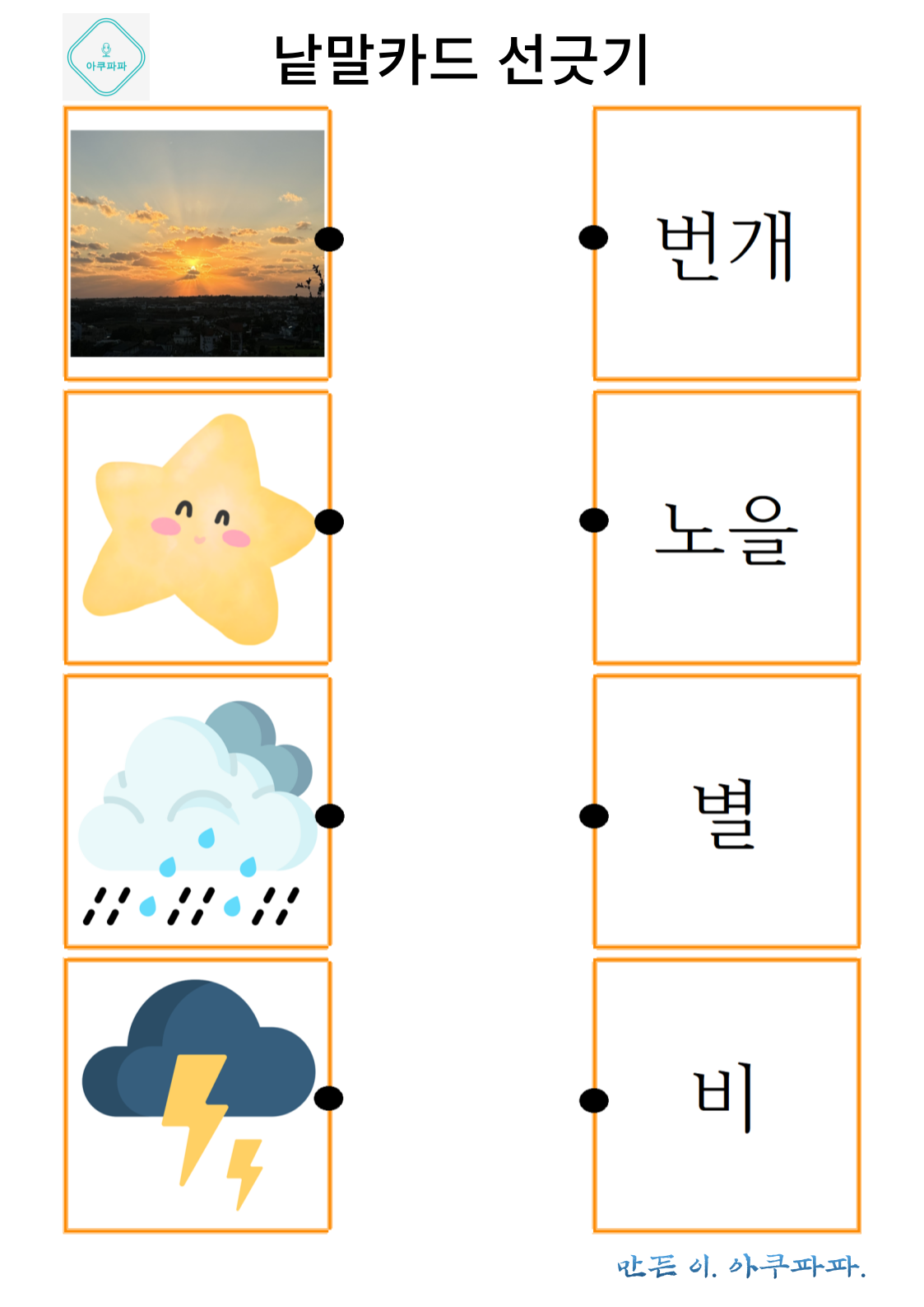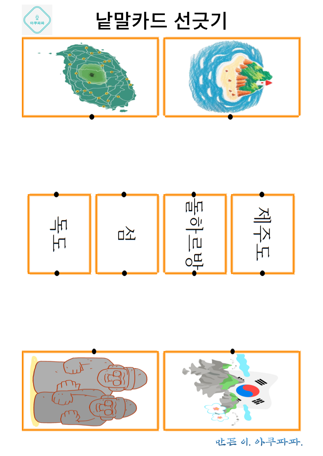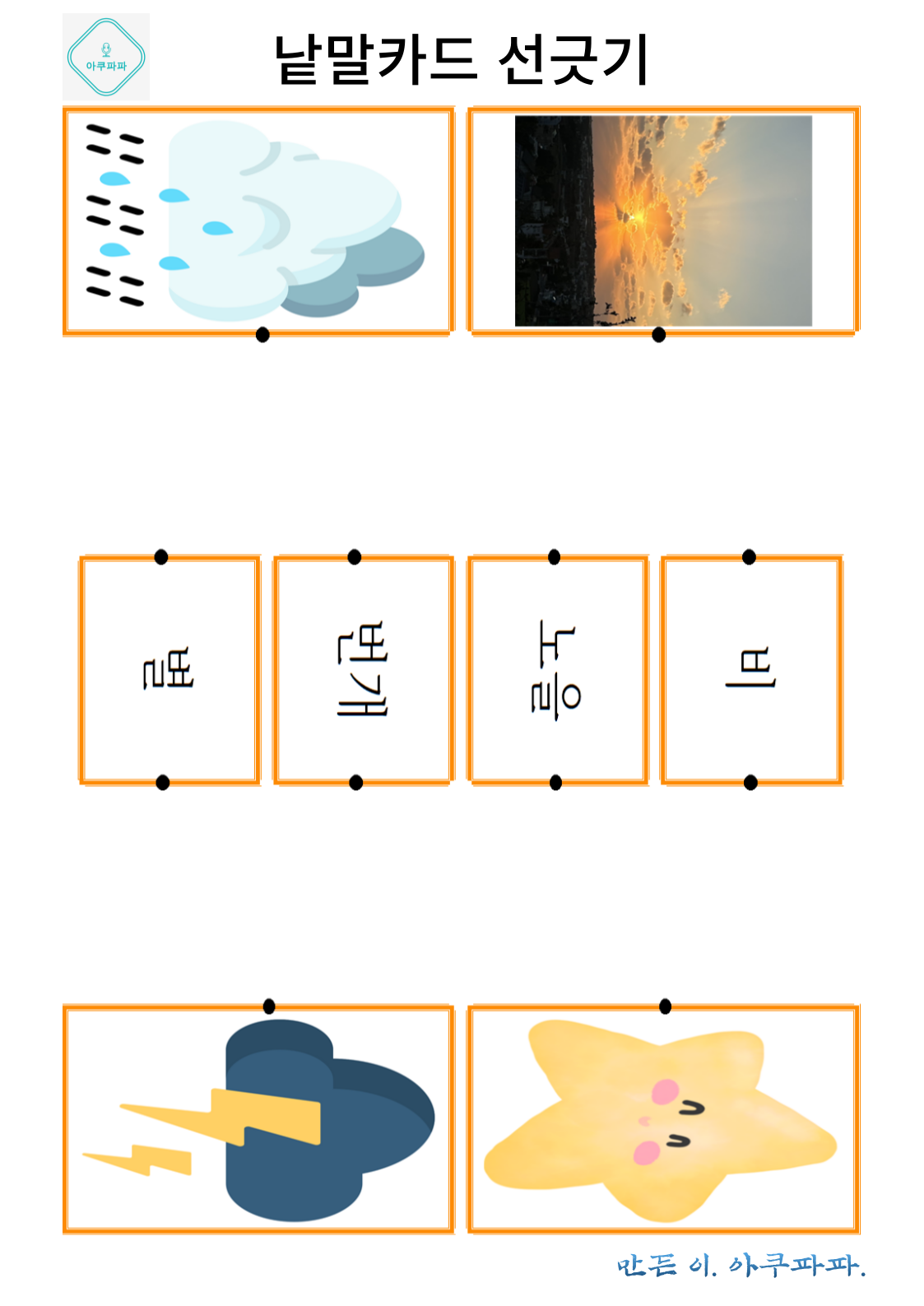그림으로 배우는 낱말 카드 놀이 a picture-learning word card game안녕하세요. 아쿠파파 입니다. Hello, I'm Acupapa. 그림과 함께 적혀있는 낱말 카드를 이용해 Use the word card that's written wi
