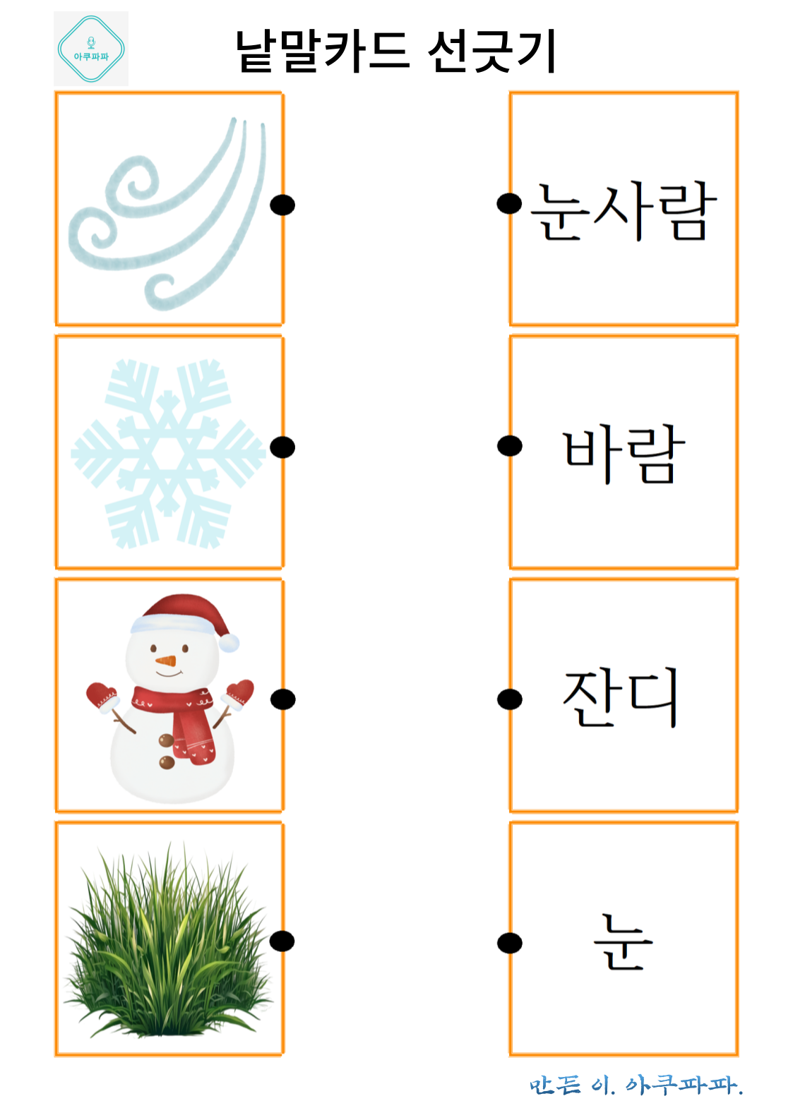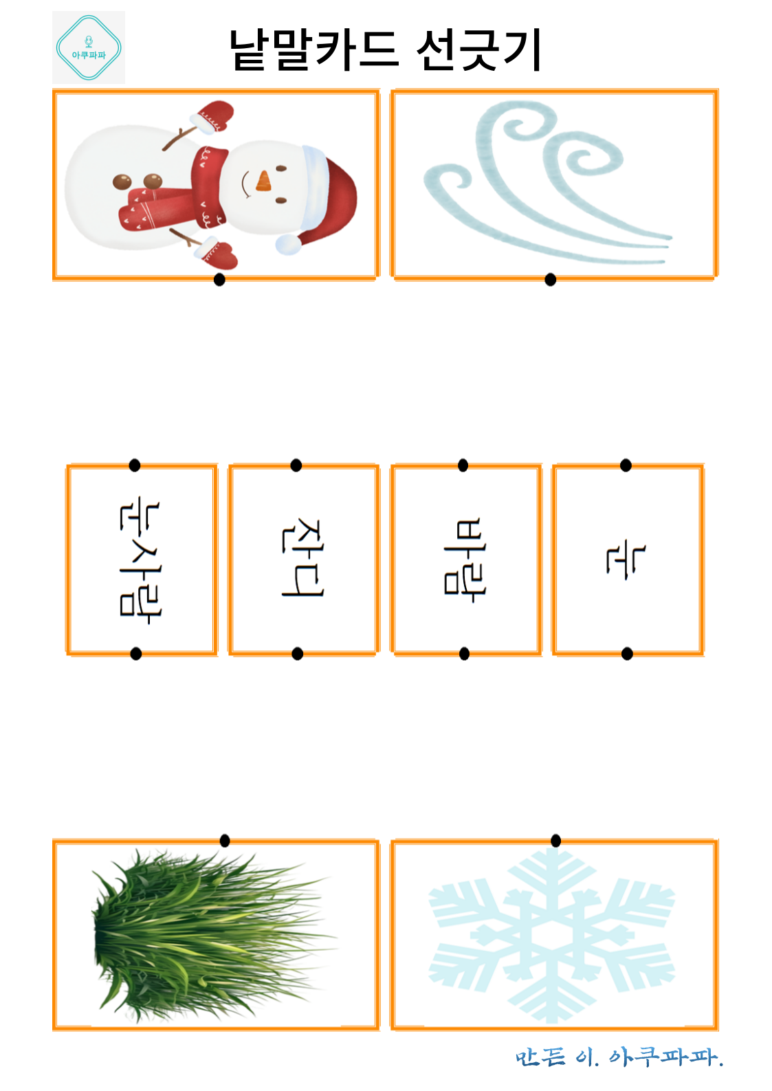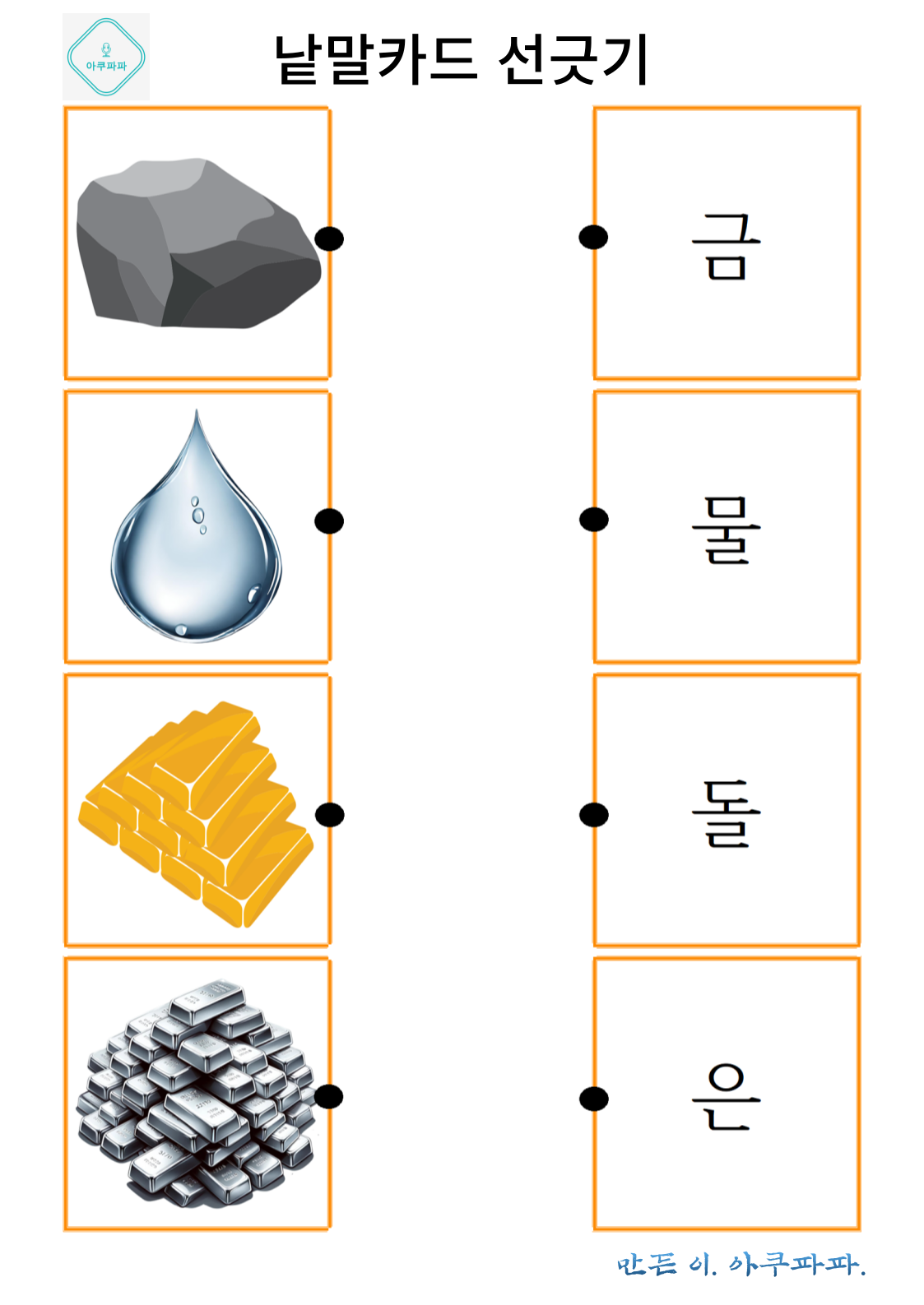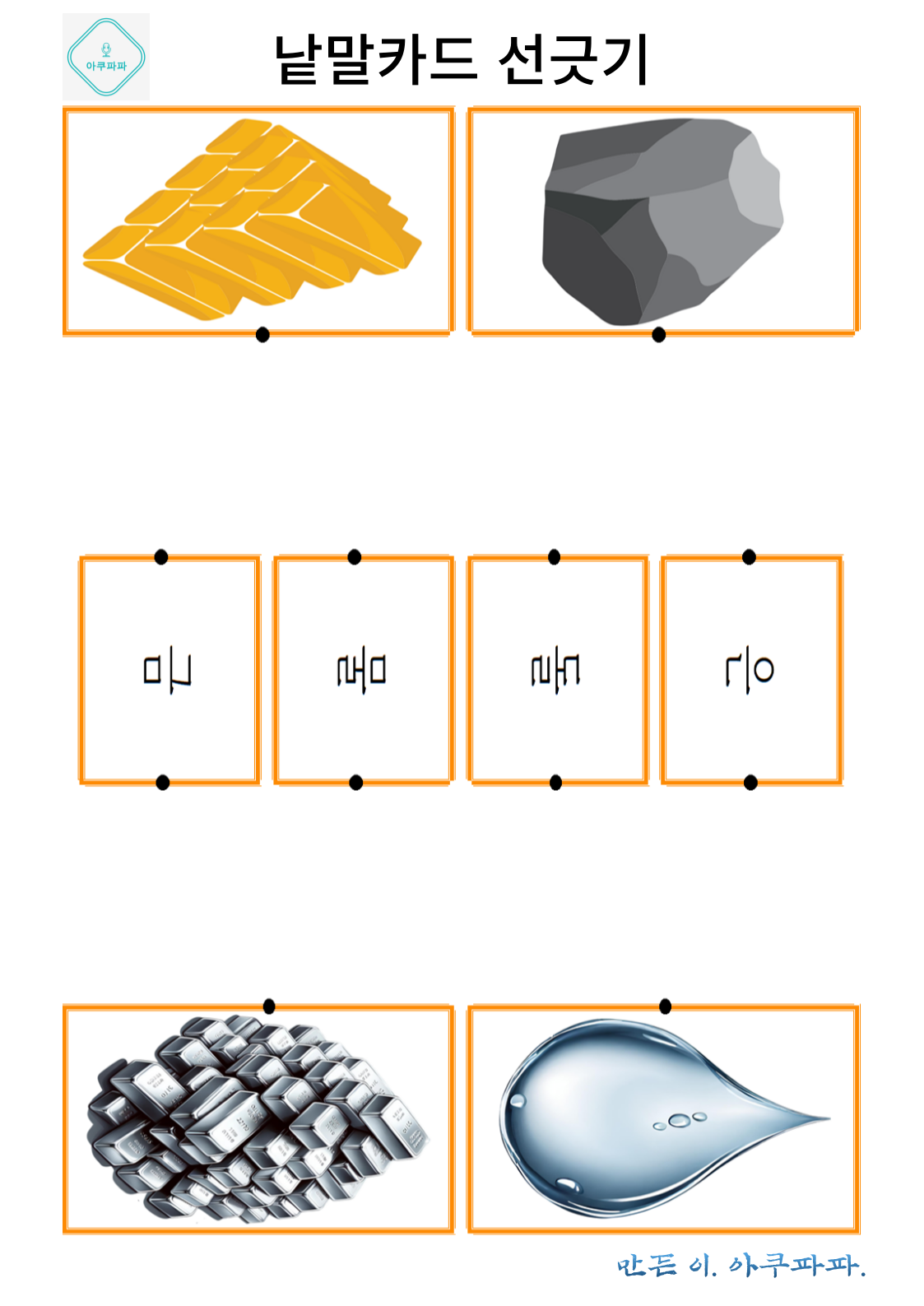 그림으로 배우는 낱말 카드 놀이 a picture-learning word card game안녕하세요. 아쿠파파 입니다. Hello, I'm Acupapa. 그림과 함께 적혀있는 낱말 카드를 이용해 Use the word card that's written wi