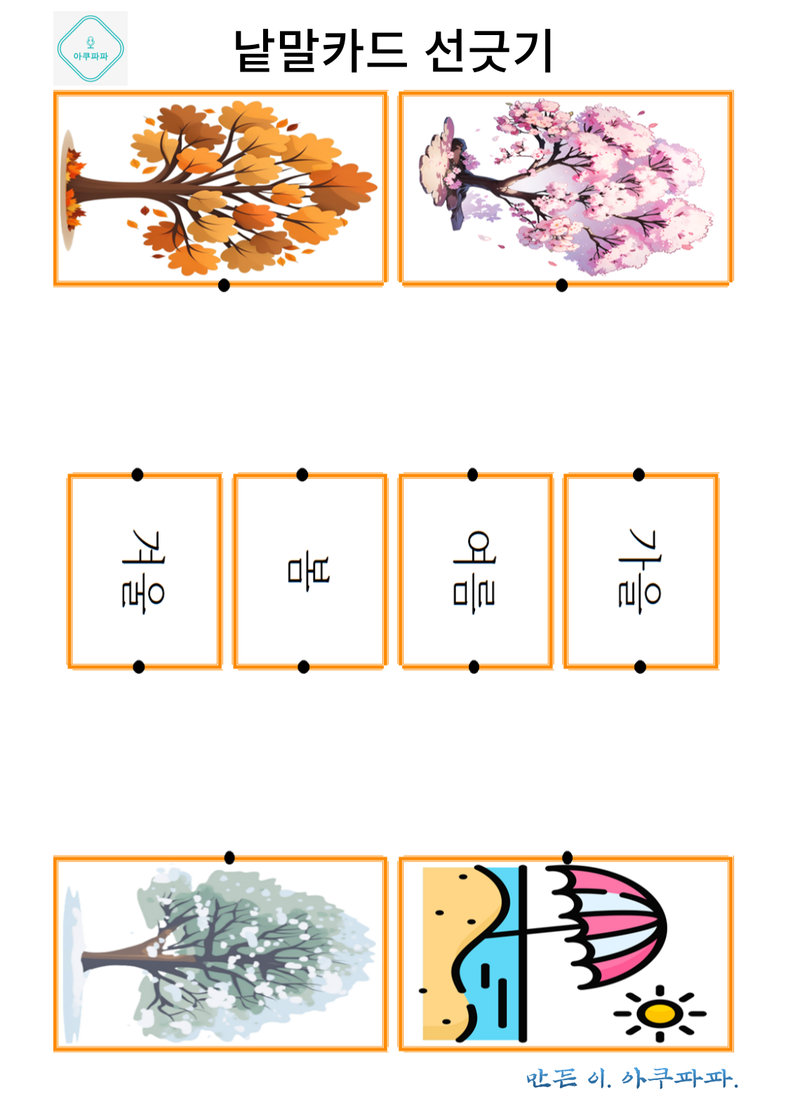 그림으로 배우는 낱말 카드 놀이 a picture-learning word card game안녕하세요. 아쿠파파 입니다. Hello, I'm Acupapa. 그림과 함께 적혀있는 낱말 카드를 이용해 Use the word card that's written wi