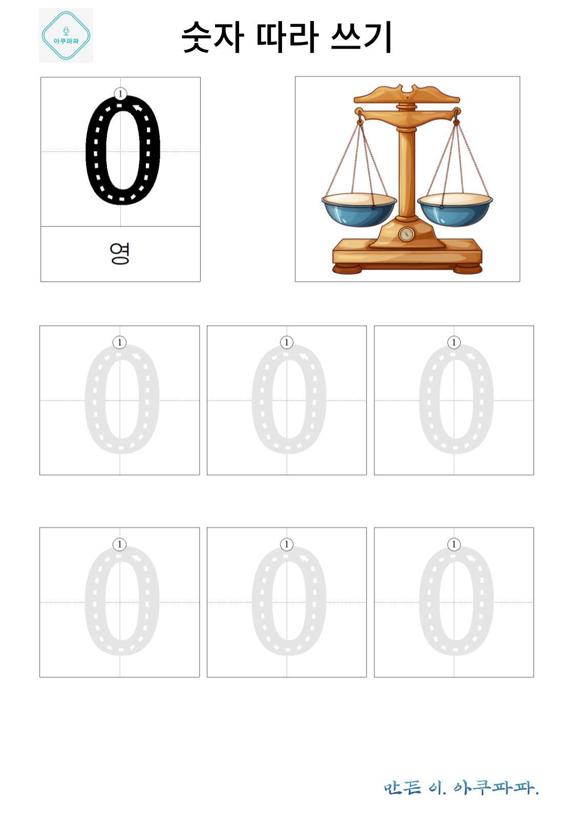 숫자 0과 관련된 이미지는 저울을 넣었습니다.
